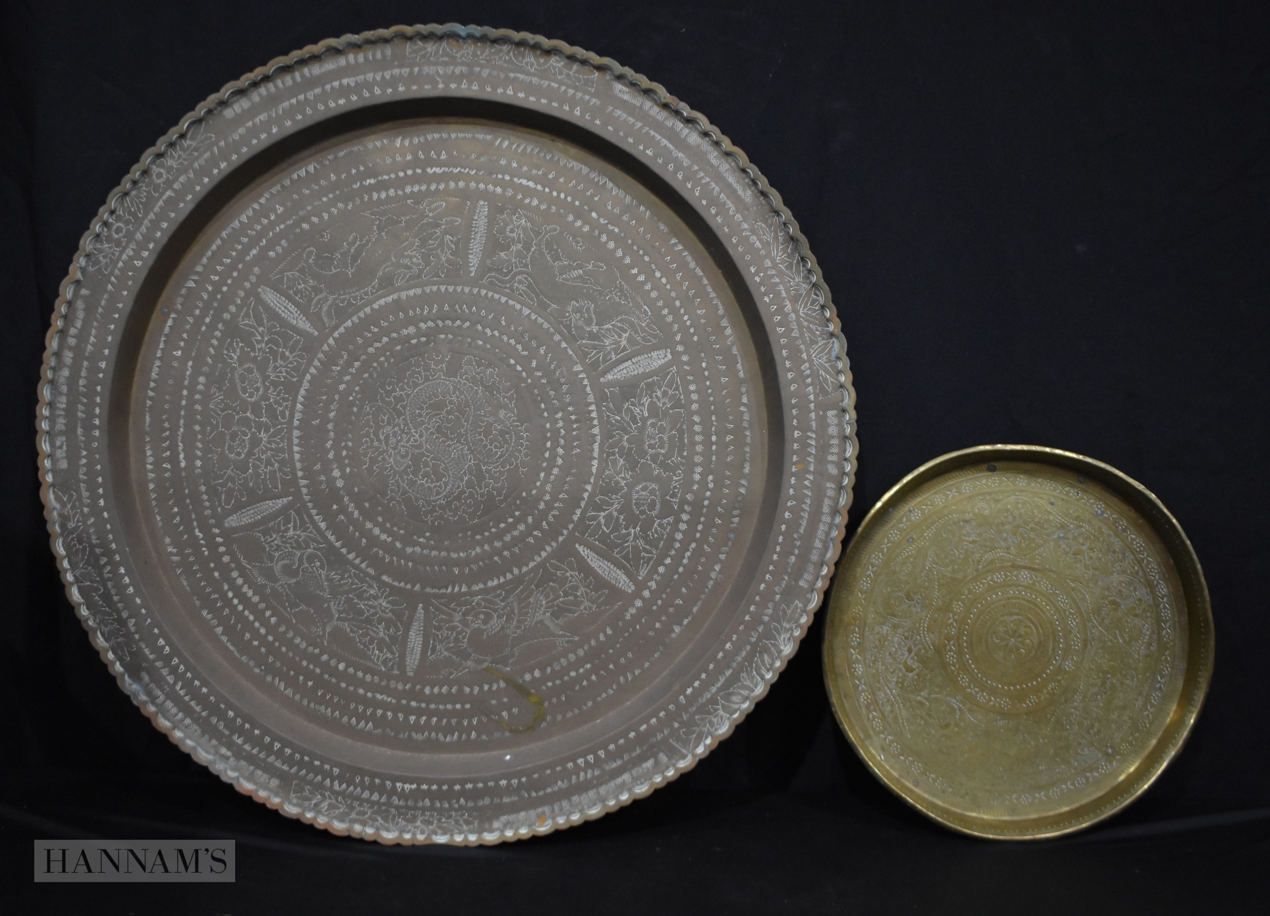 A large Chinese brass tray together with a Central Asian brass tray 75cm (2)