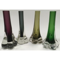 Whitefriars pair of bark effect candle holders designed by Geoffrey Baxter in "Ruby Red" each 6cm tall, 8cm diameter.