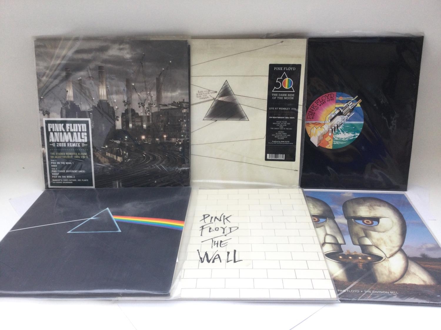 Six Pink Floyd LPs comprising 180g pressings of 'Dark Side Of The Moon', 'Animals 2018 remix', 'Wish You Were Here' and others.