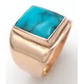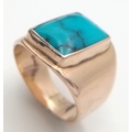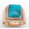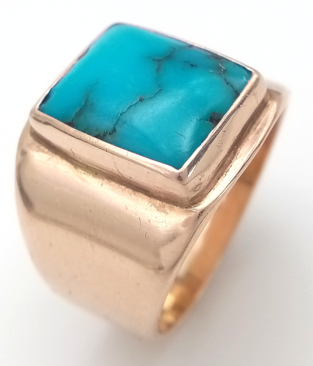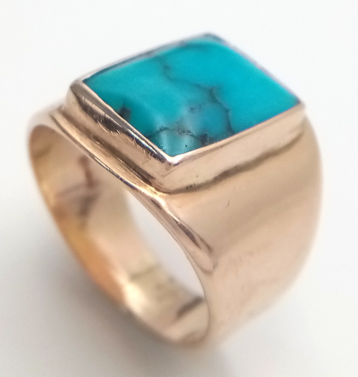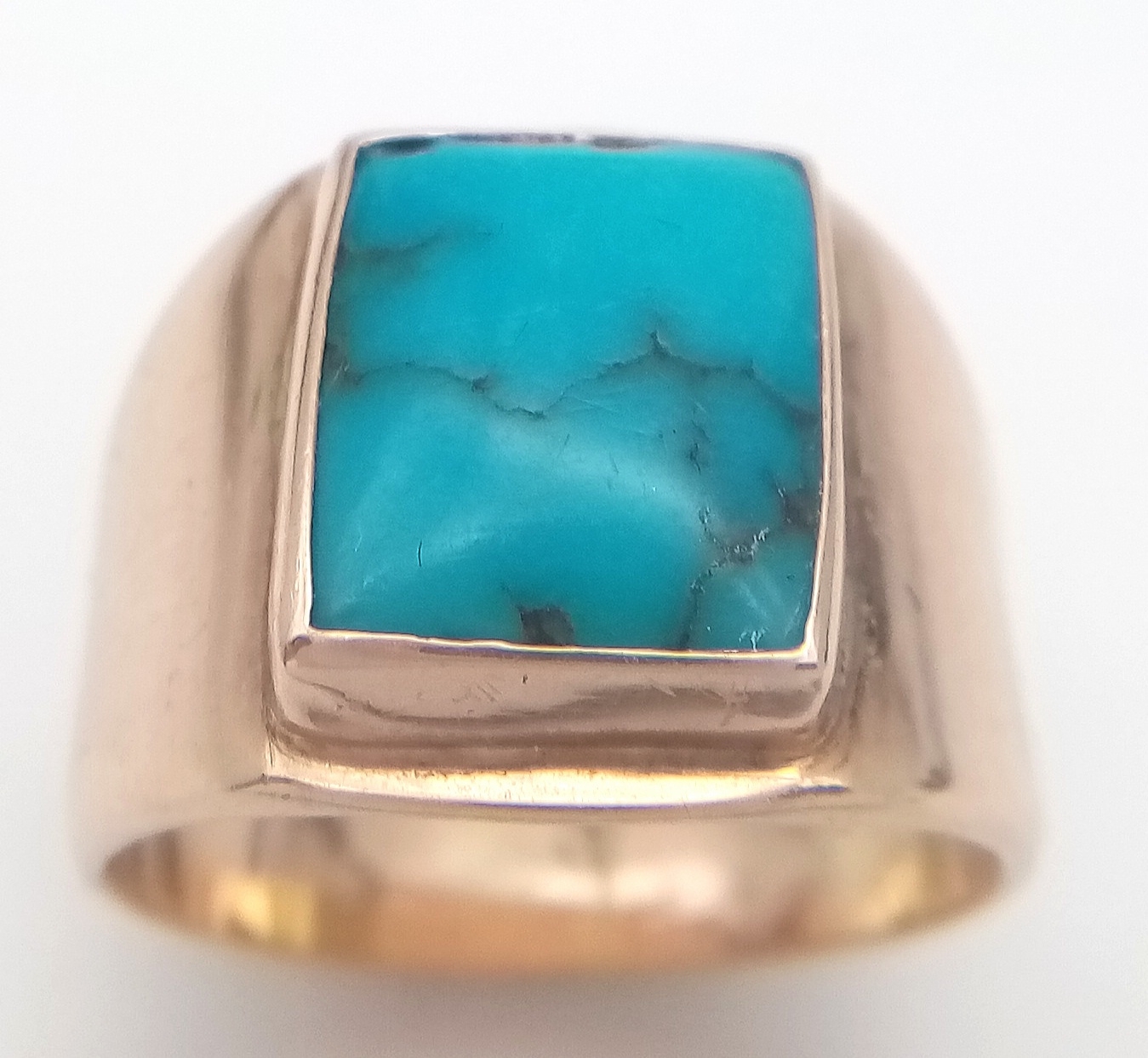Rare and unusual ‘made to order’ Polished TURQUOISE GEMSTONE set in a HEAVY WIDE 9 CARAT GOLD RING. Fully hallmarked. 12.3 Grams. Size T - T 1/2.