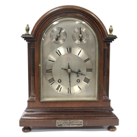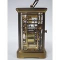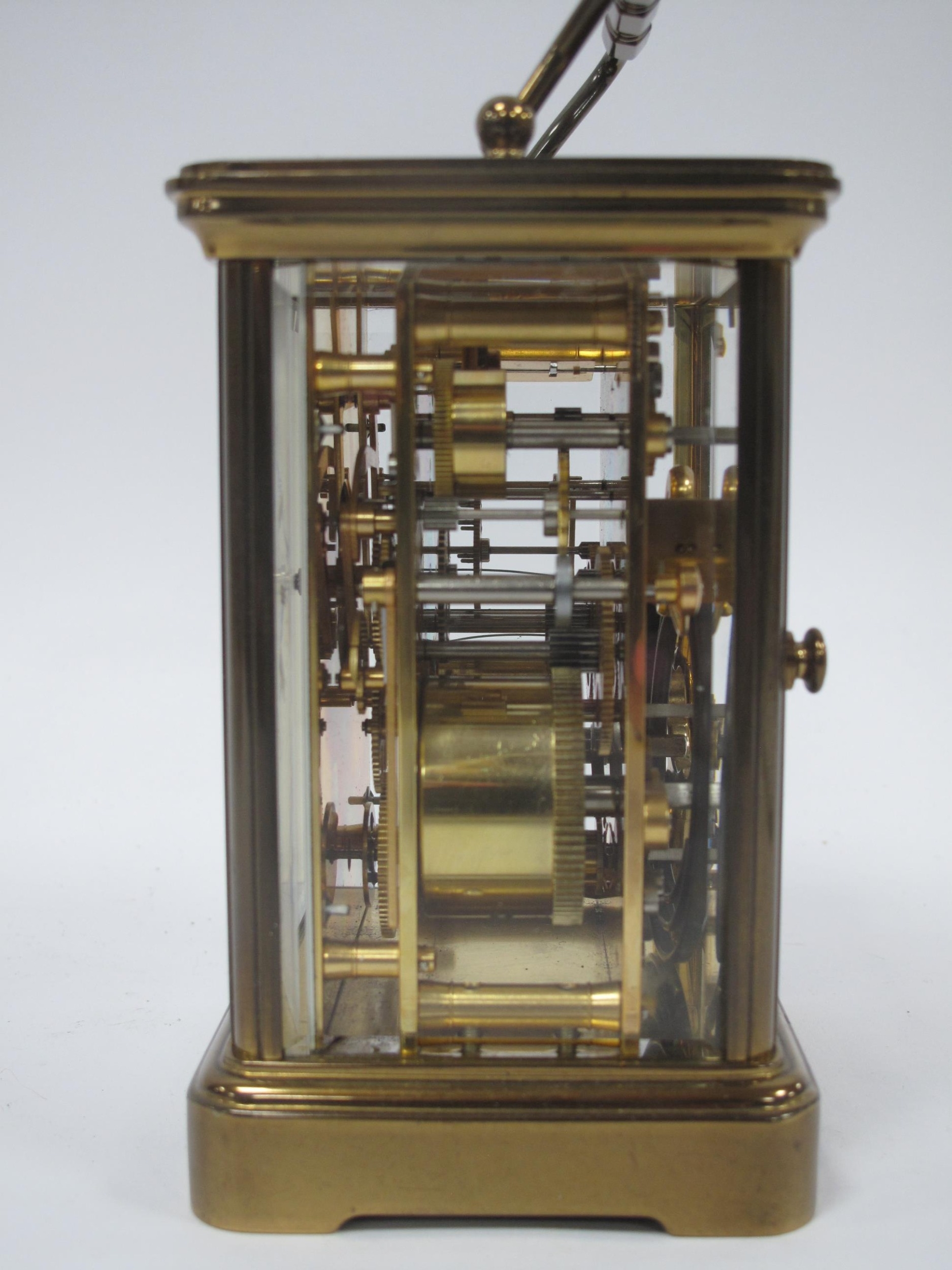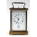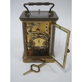 A Modern Matthew Norman Brass Carriage Clock, the white enamel dial with black Roman numerals and smaller subsidiary dial below numbered 1-12, numbered 1751, 17.5cm high (handle up), with key.