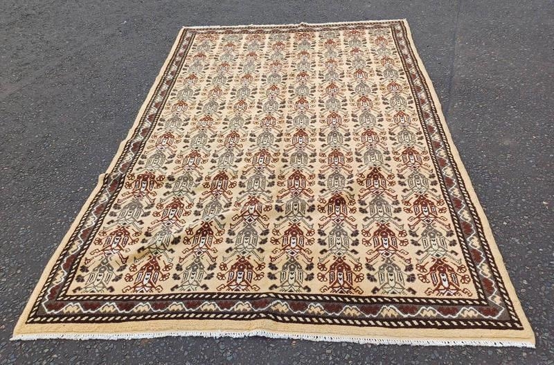 FULL WOOL PILE CREAM GROUND HAND WOVEN MOROCCAN CARPET 290 X 195CM