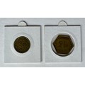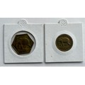 Two Belgian Congo coins - 2 Franc 1947 and 2 Franc 1943 in collector’s covers.
