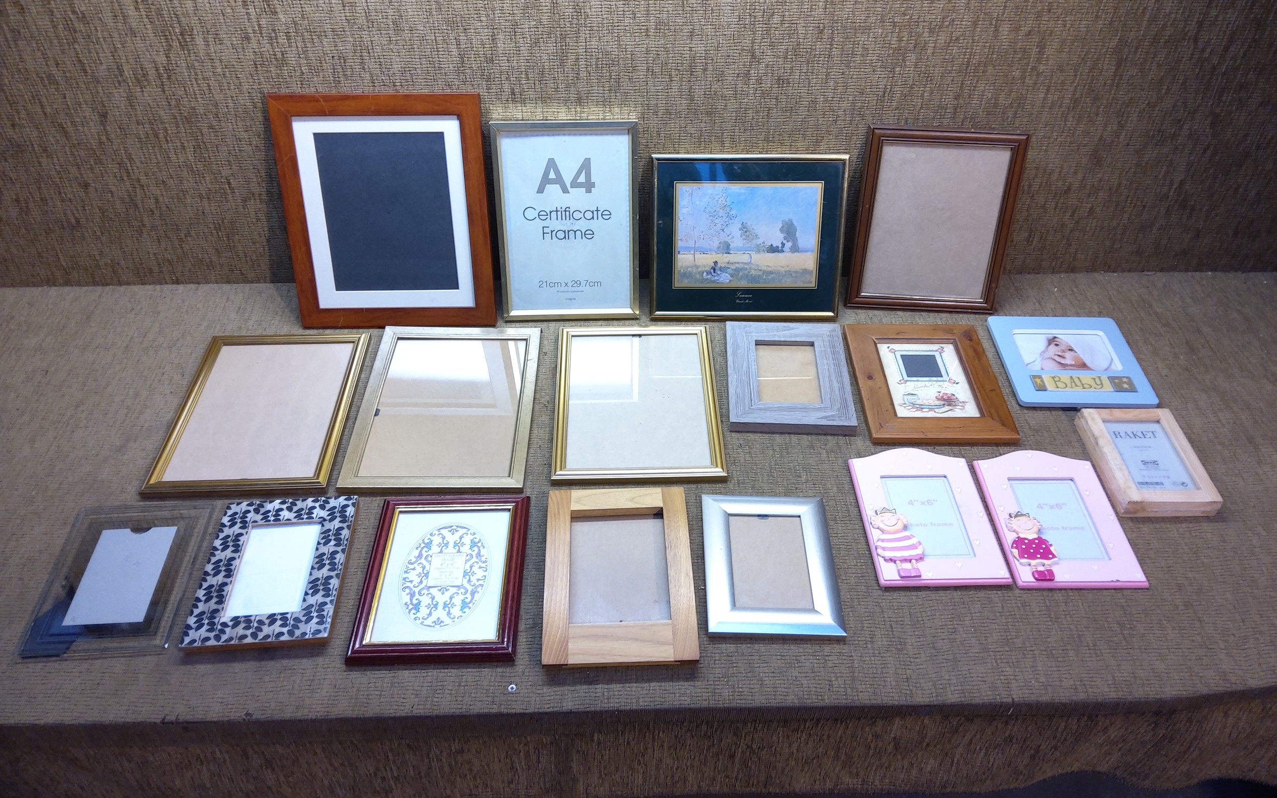 Large collection of photo and picture frames.