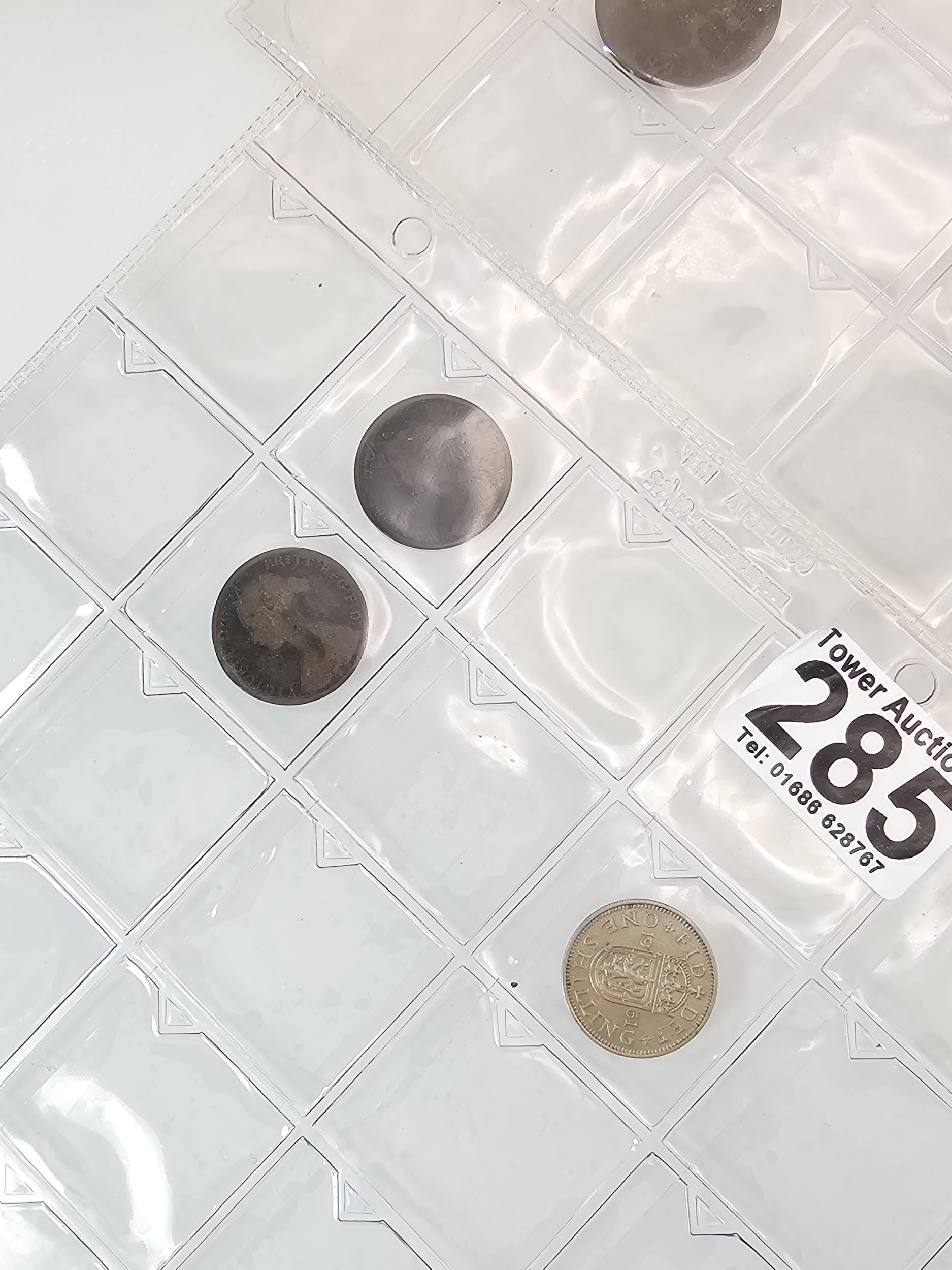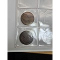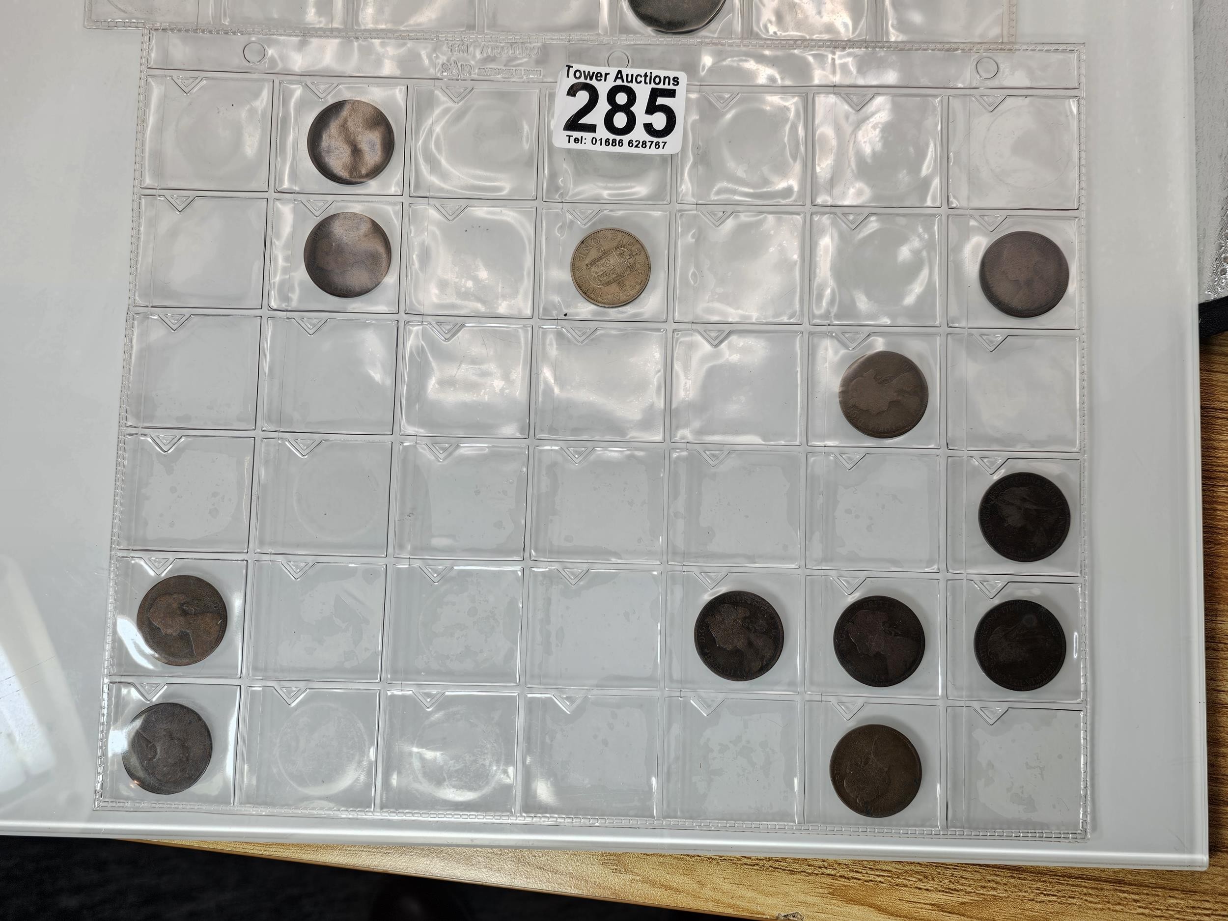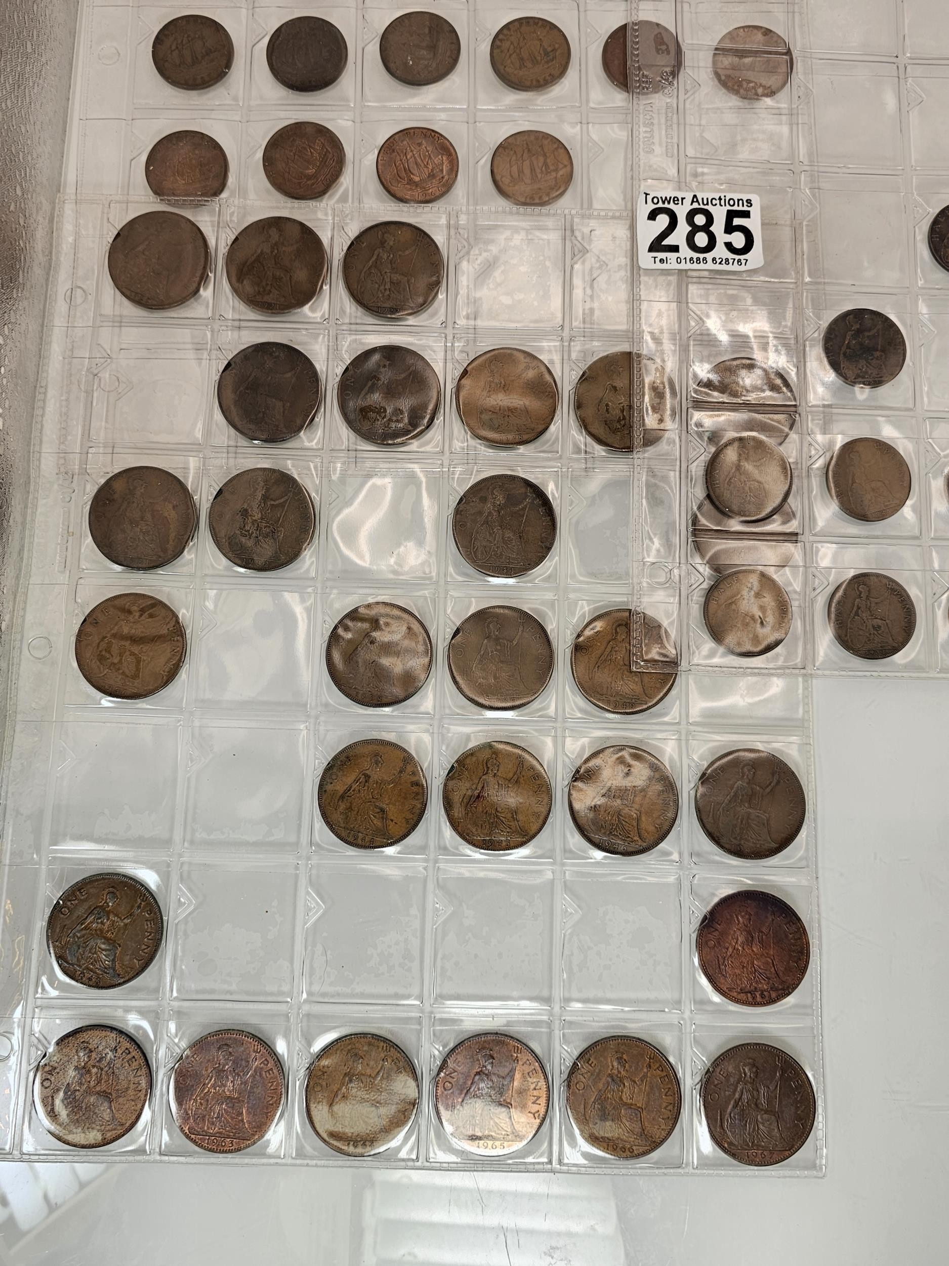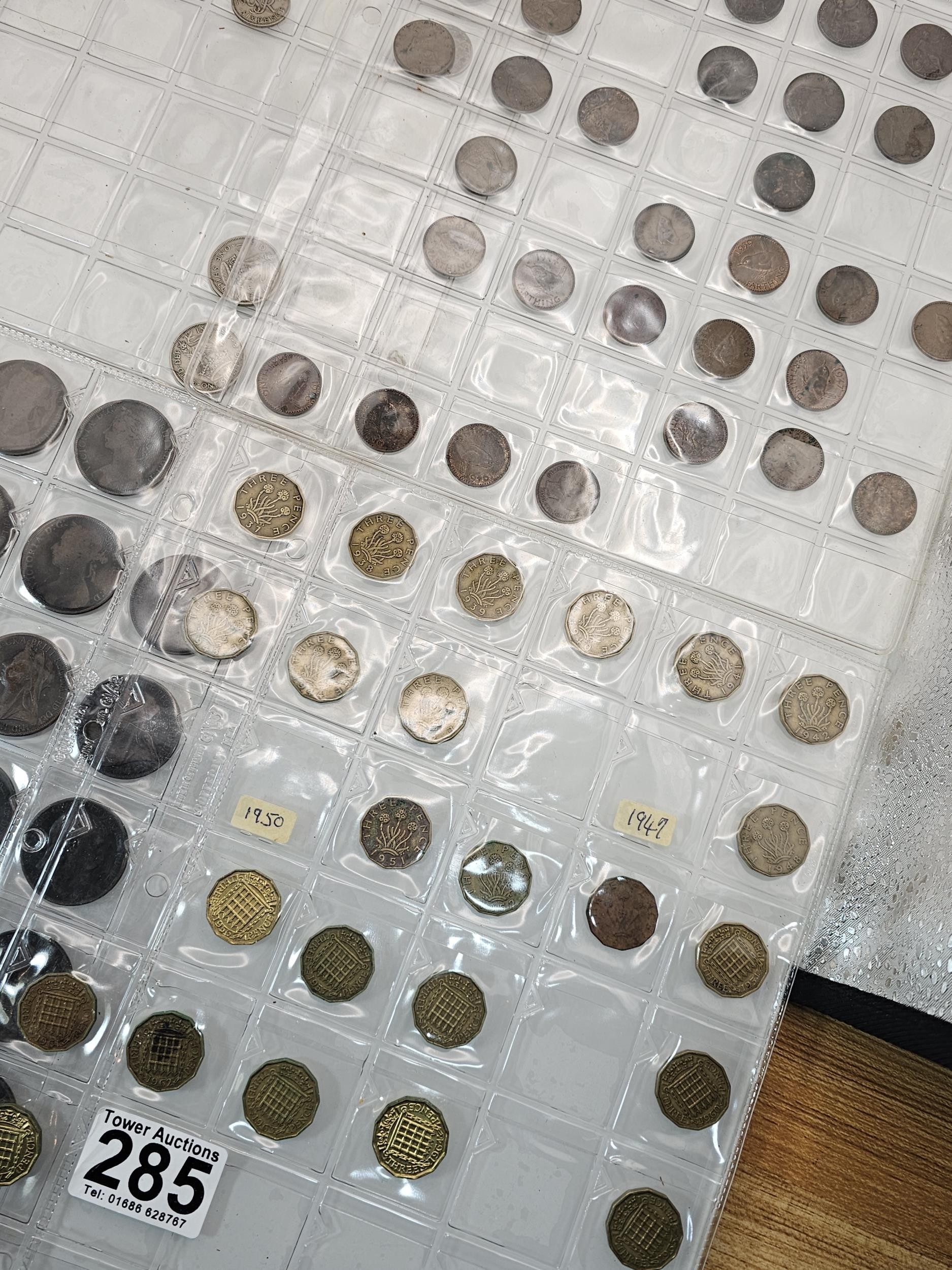 A coin album containing a large quantity of Victorian and later copper one penny coins and half penny coins, three pence coins and size pence coins. A large quantity is included, please study the photos.