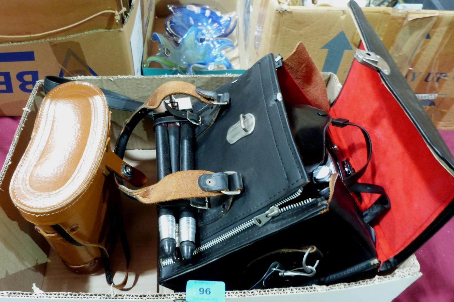 A pair of Ajax 10x50 binoculars and a Minolta SRT-101 camera with case and accessories