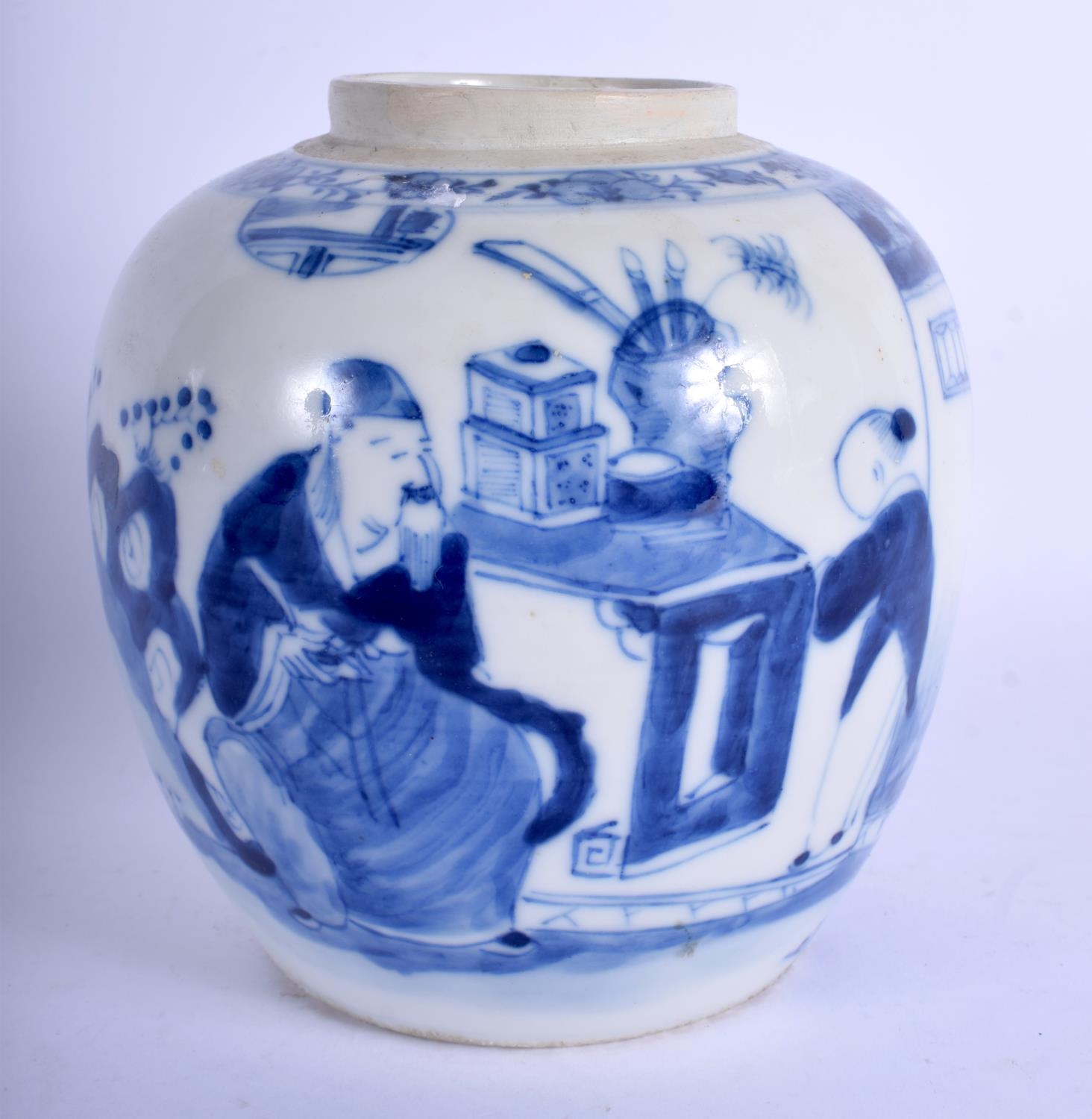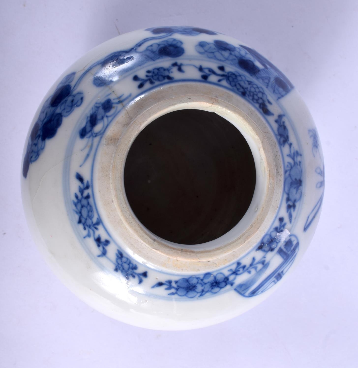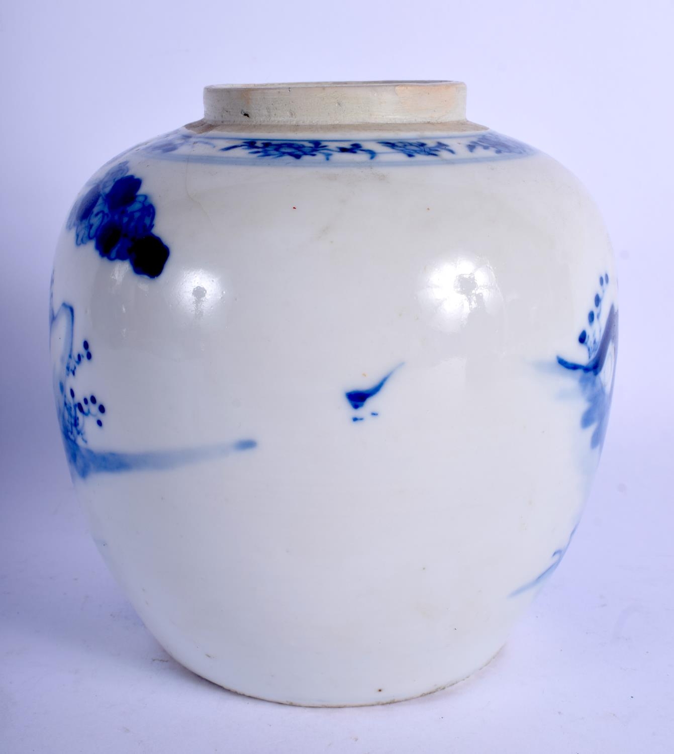 AN 18TH/19TH CENTURY CHINESE BLUE AND WHITE PORCELAIN GINGER JAR Qing, painted with flowers. 15 cm x 11 cm.