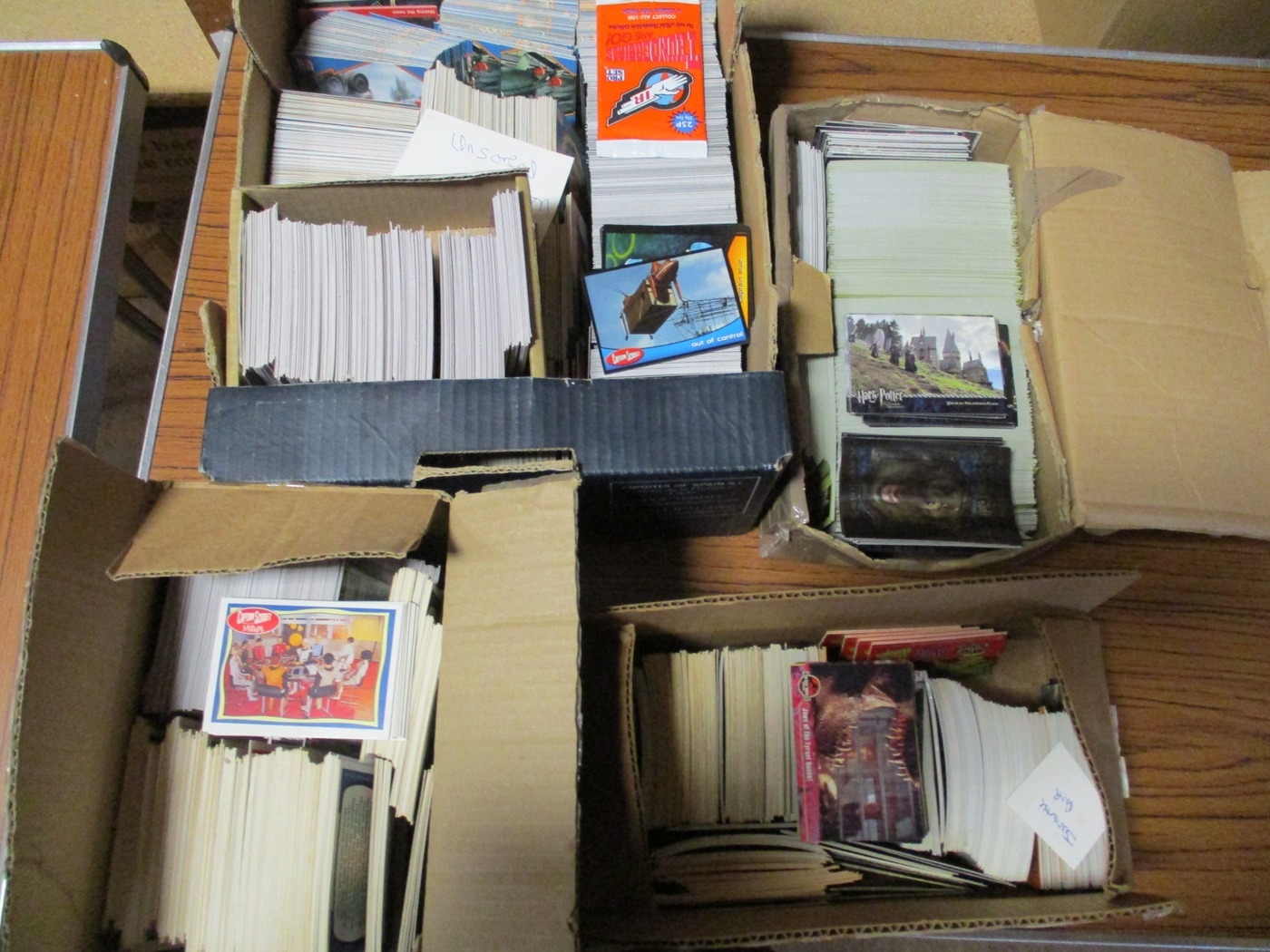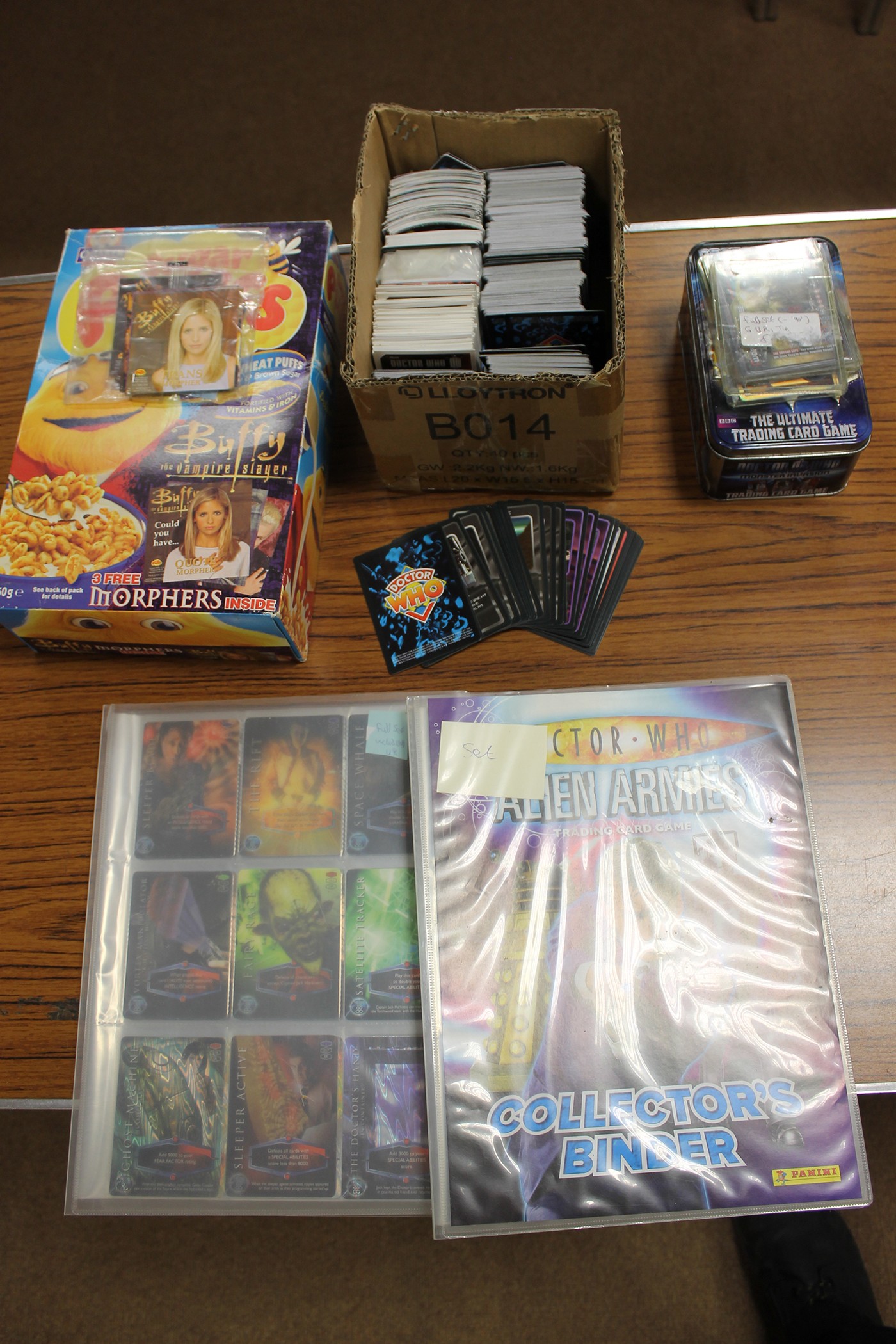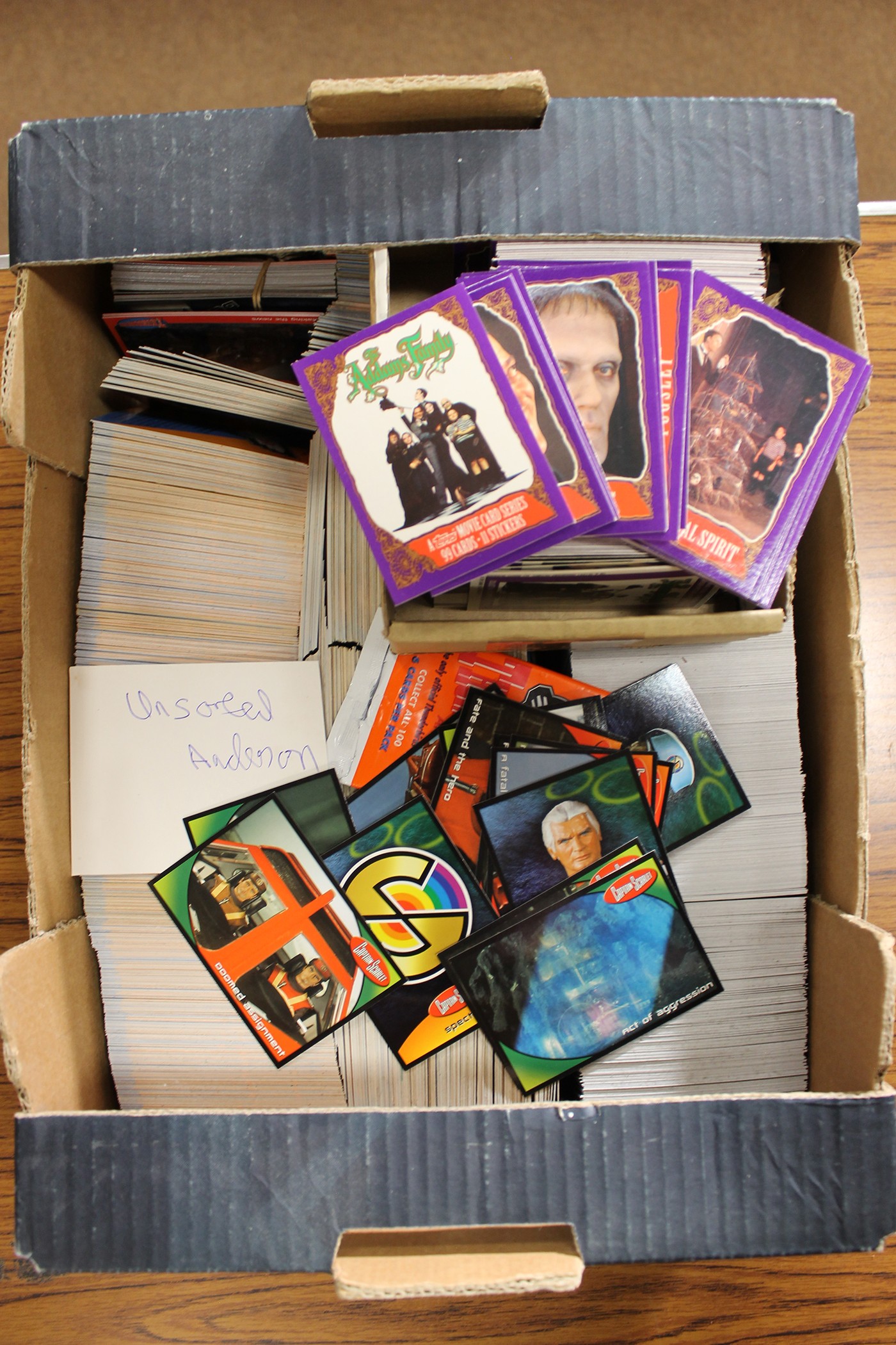 Collection of modern TV/Film themed cards including Cards Inc Captain Scarlett, Harry Potter, Inkworks Angel, Buffy, Paramount Pictures Star Trek, Strictly Ink Doctor Who, Topps Jurassic Park, etc, generally good plus to excellent, plus accessories. Qty 5,000 approx (10B)