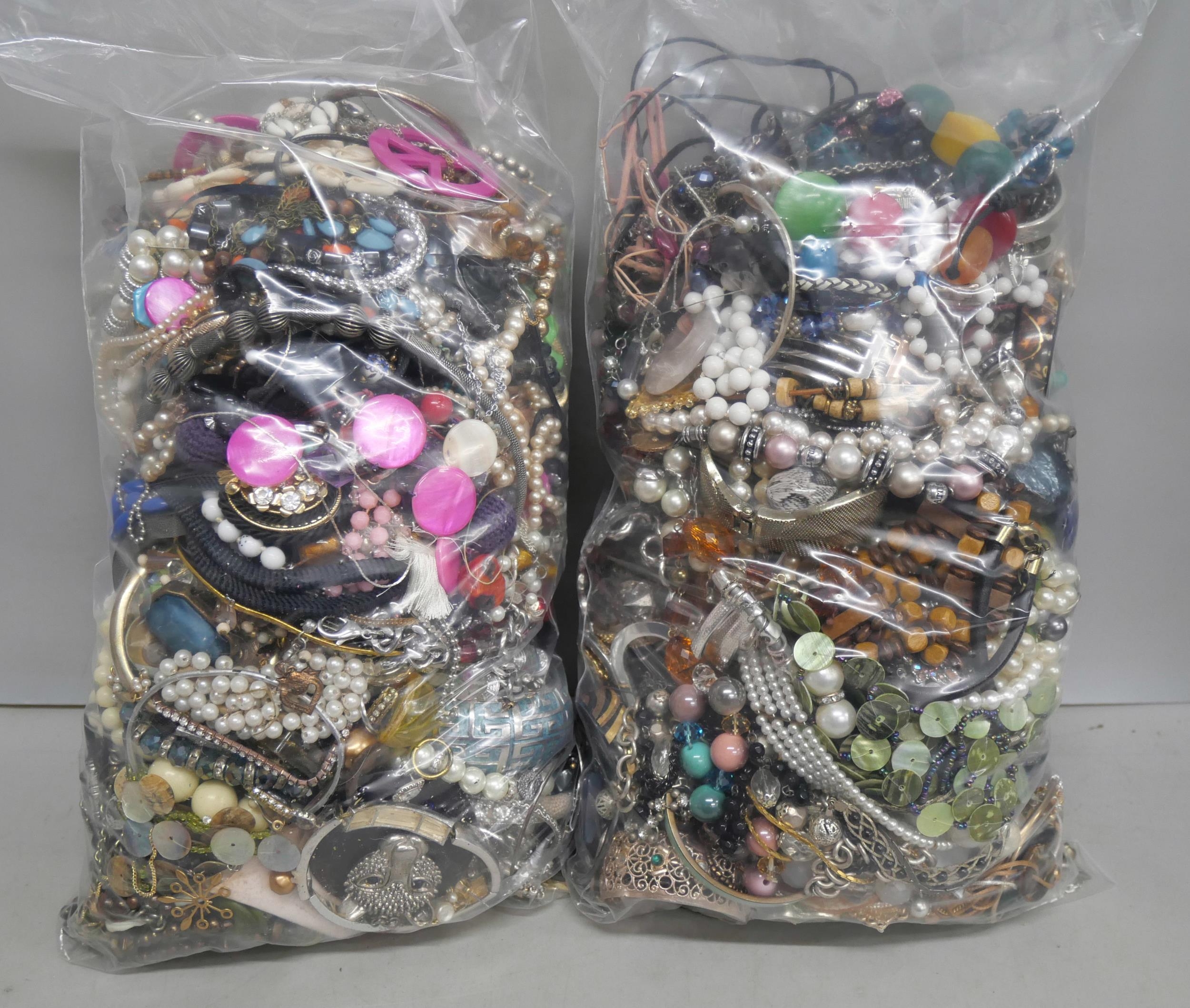 A collection of costume jewellery, (2 bags)
