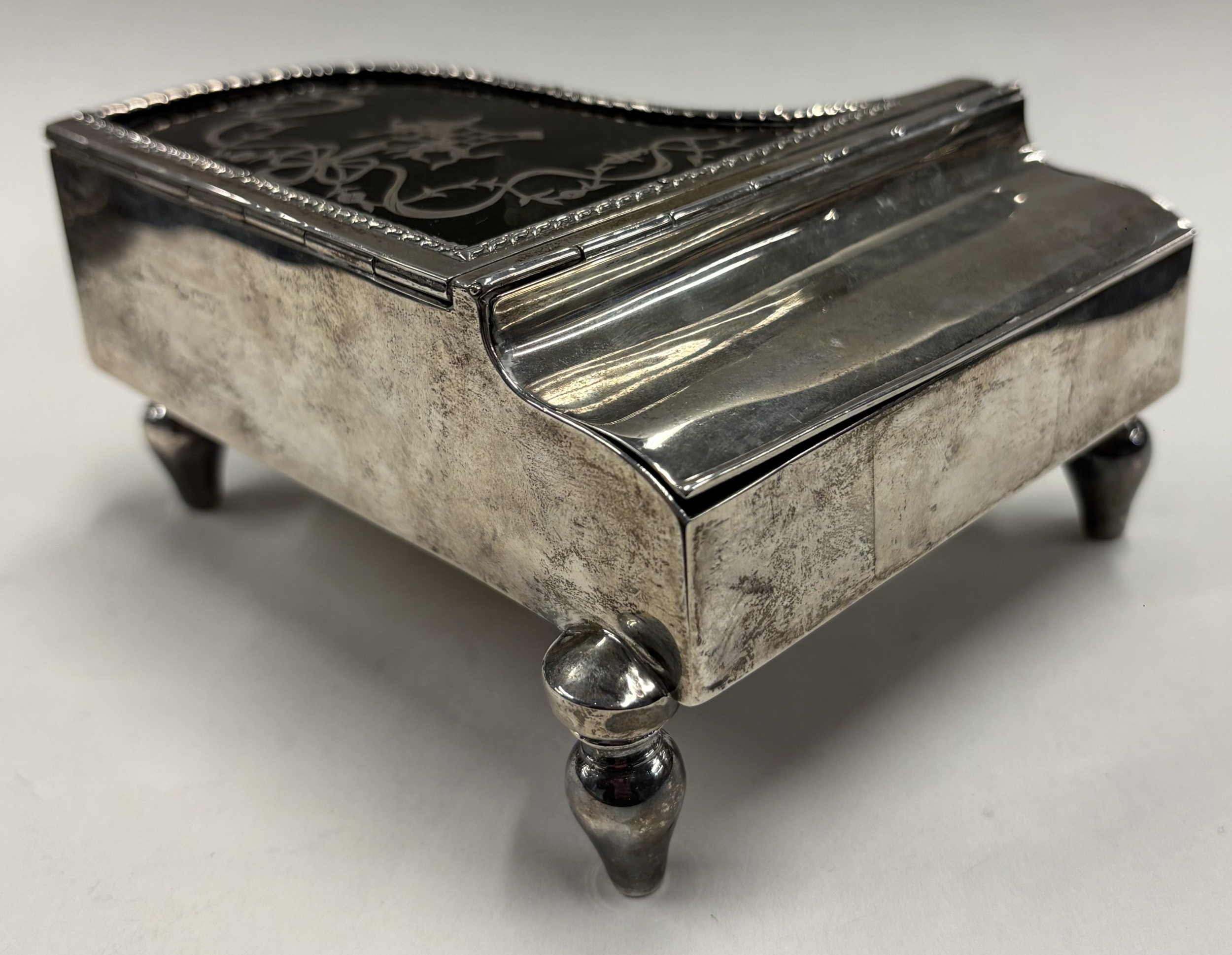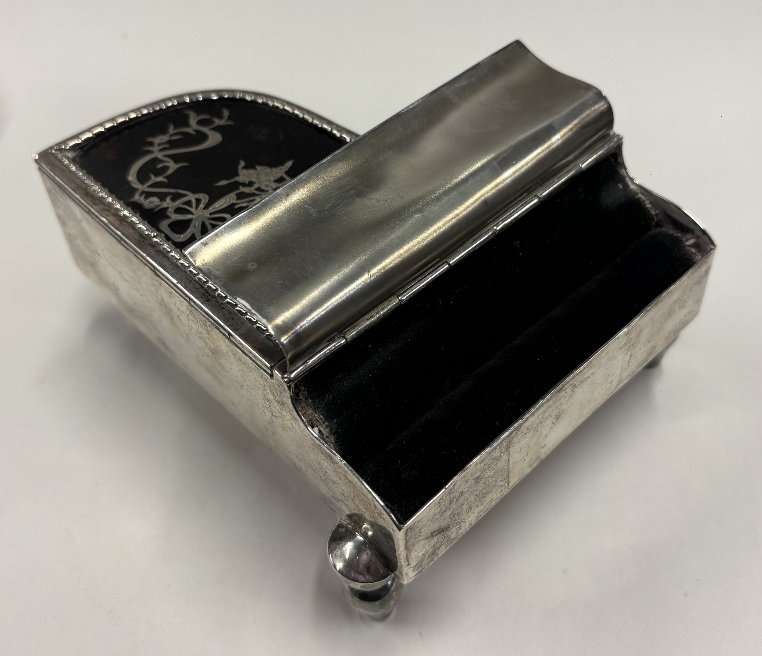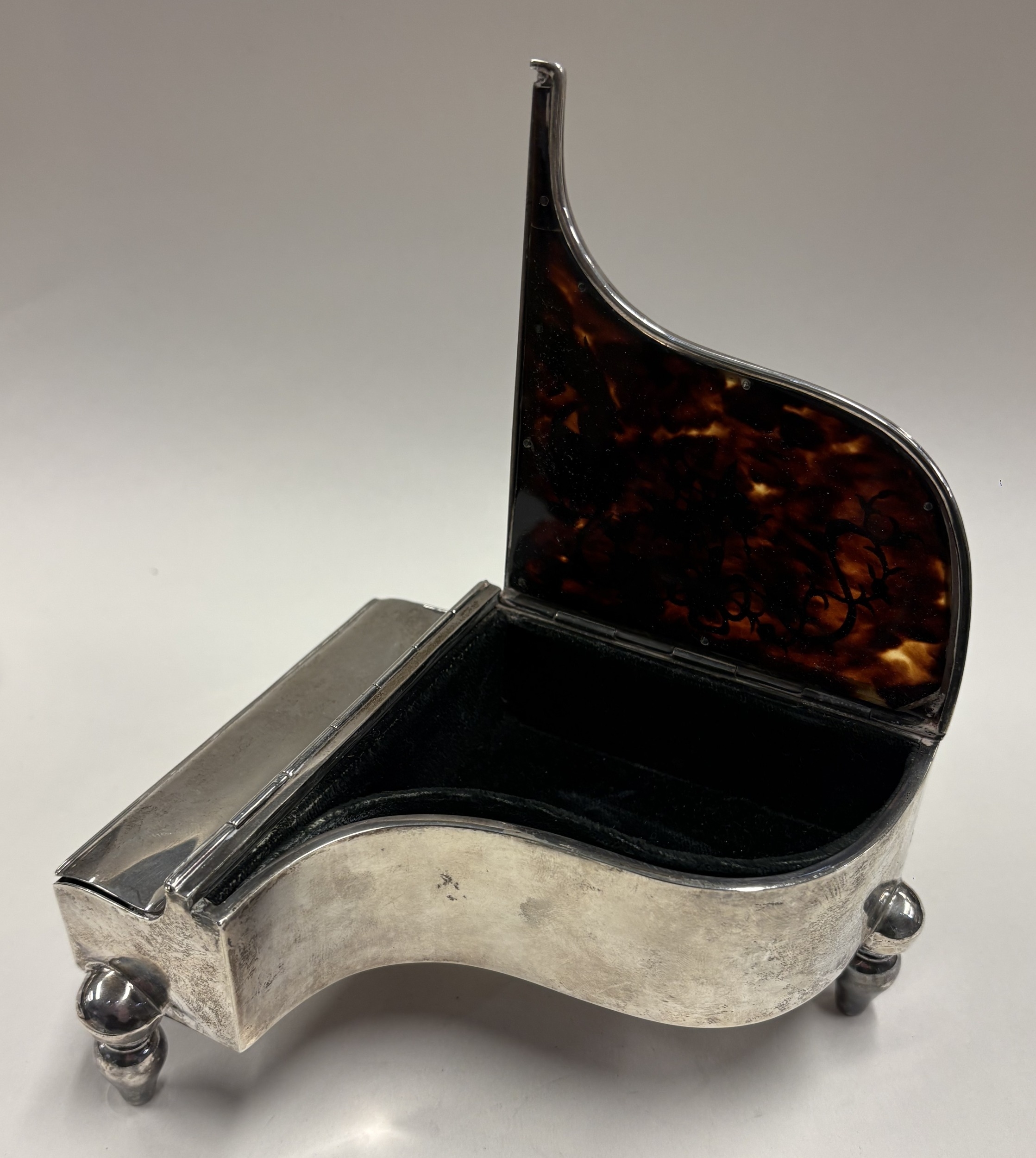 CHESTER: A rare silver and faux tortoiseshell jewellery box in the form of a piano. Circa 1910. Approx. 311 grams. Est. £600 - £800.