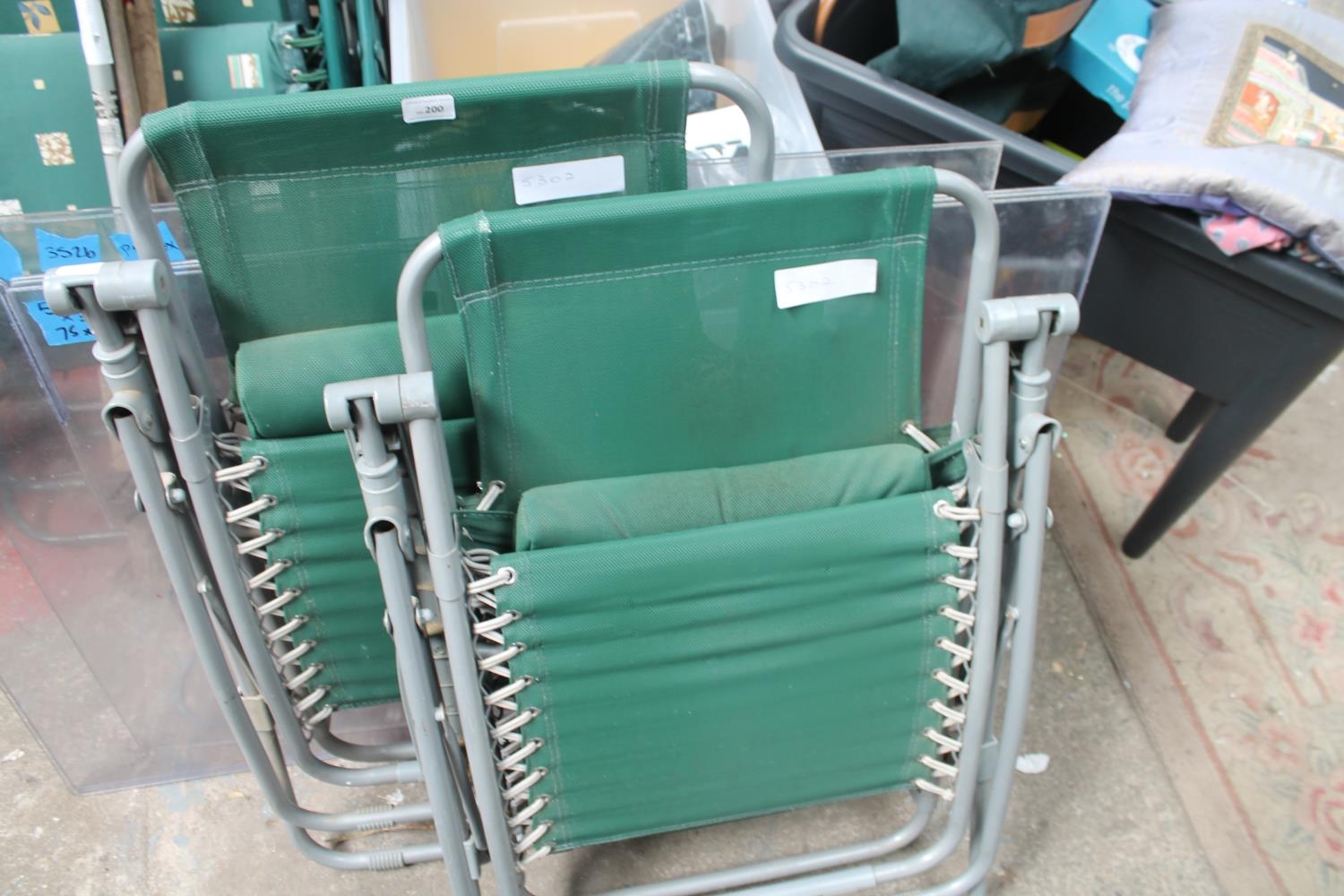PAIR OF GREEN GARDEN LOUNGERS