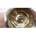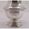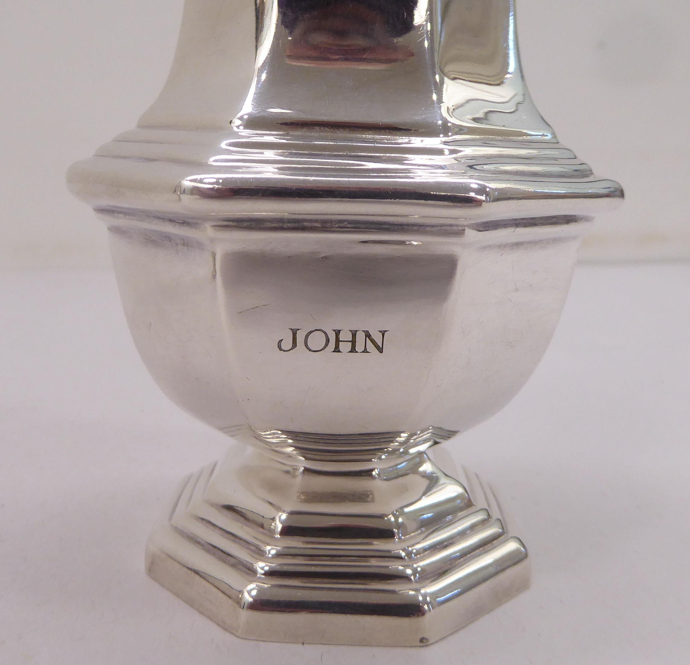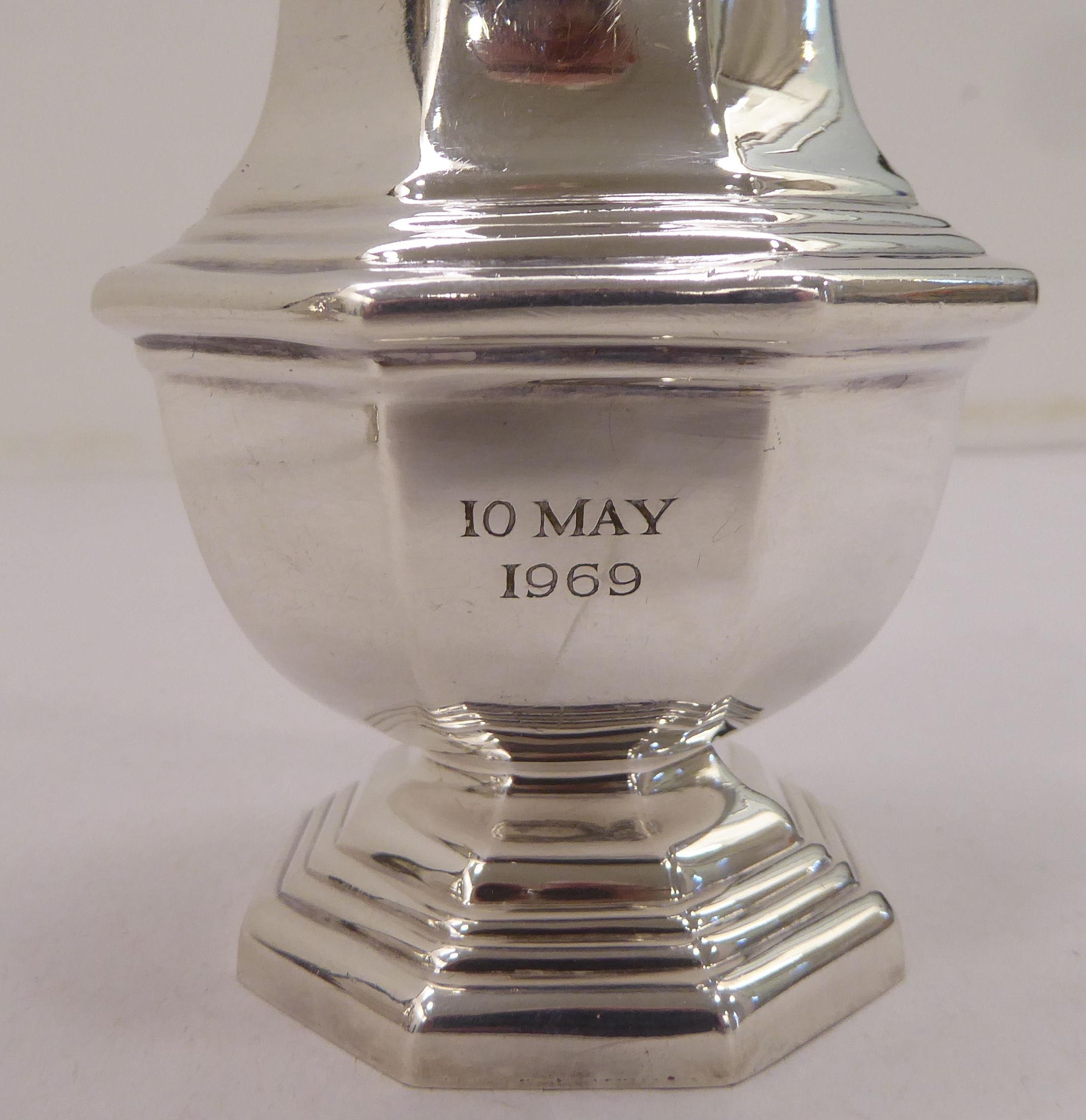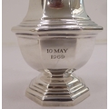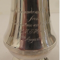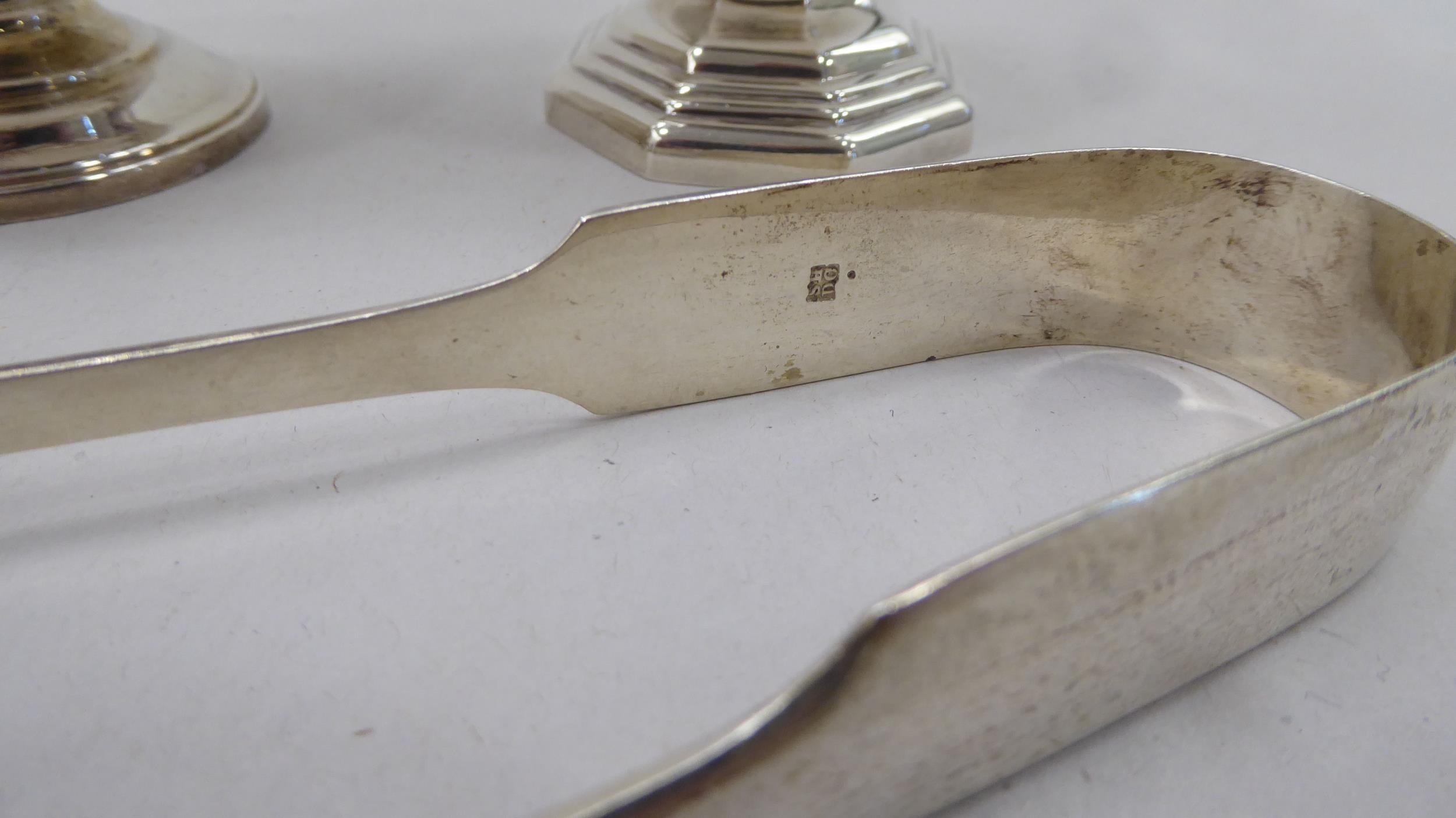 A silver plated caster; another in silver; and a pair of silver sugar tongs mixed marks