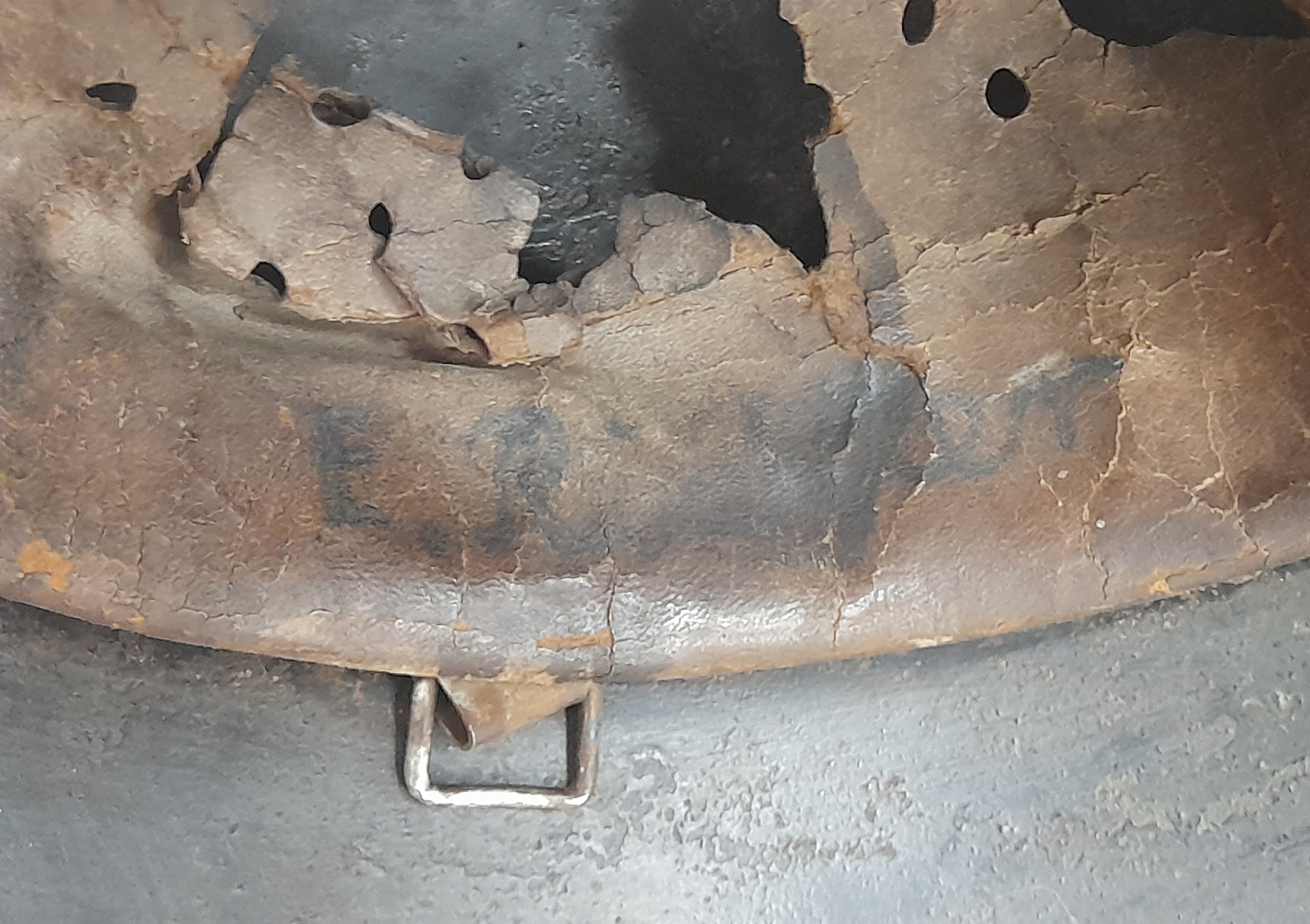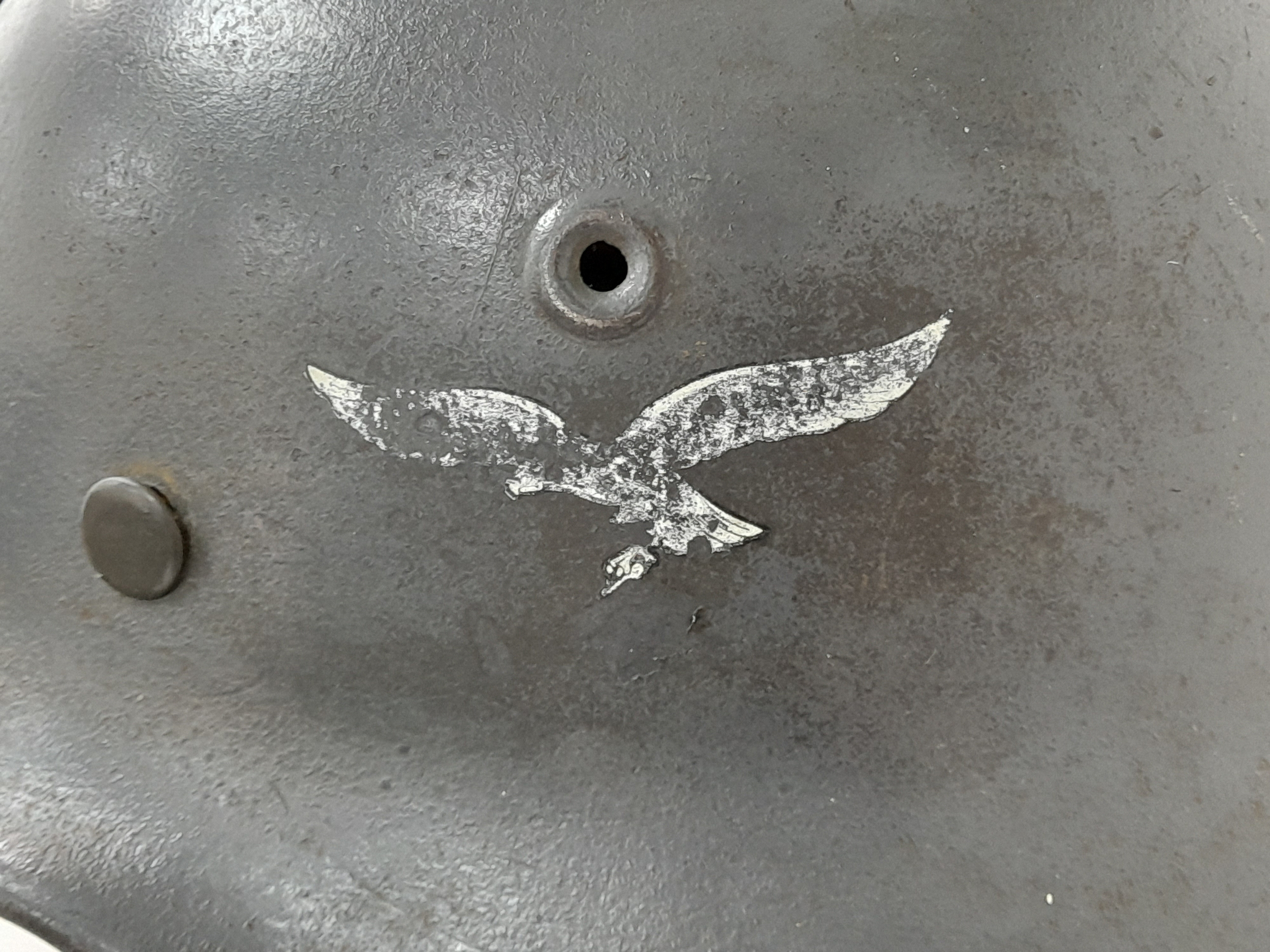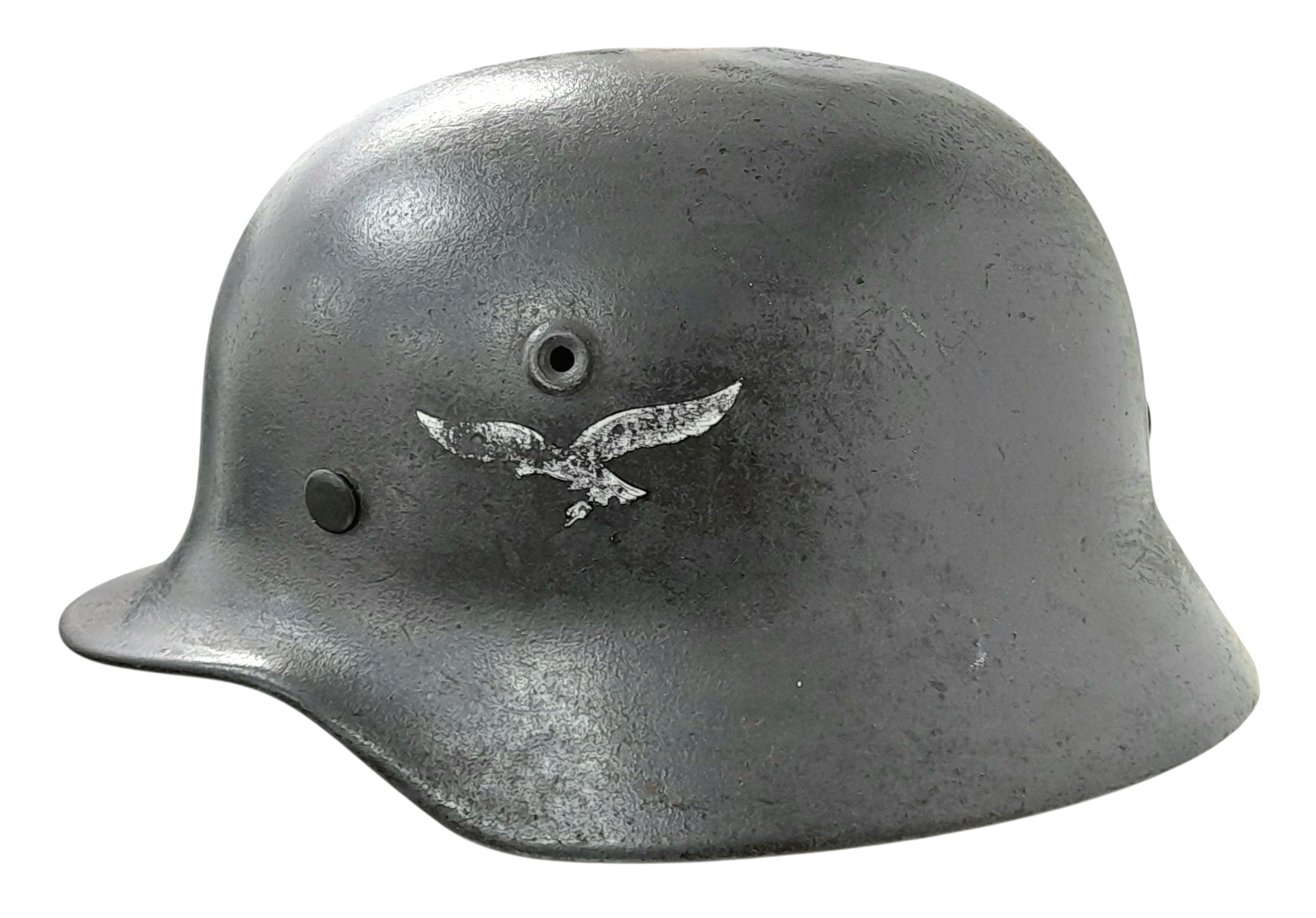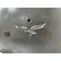 WW2 German Luftwaffe Single Decal M40 Helmet and Liner. All 100% original. The decal has had the swastika rubbed off to comply with de-nazification process after the War.