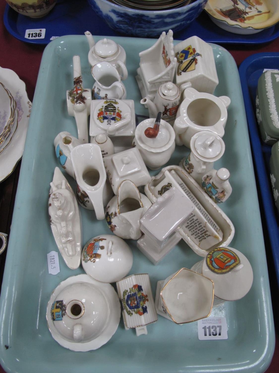 Goss Crested Ware, Arcadian crest ware, crested ware model of a Battleship:- One Tray.