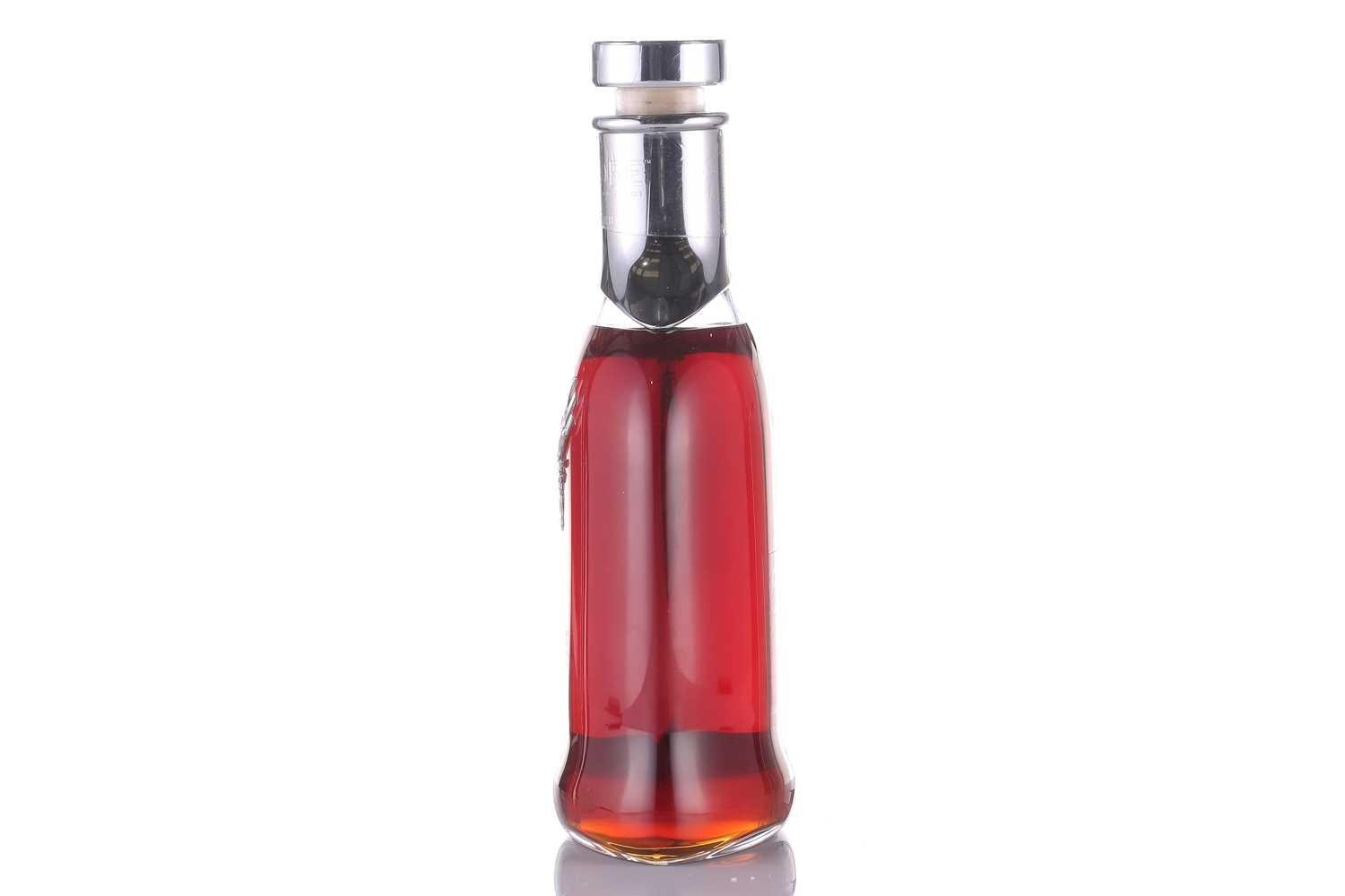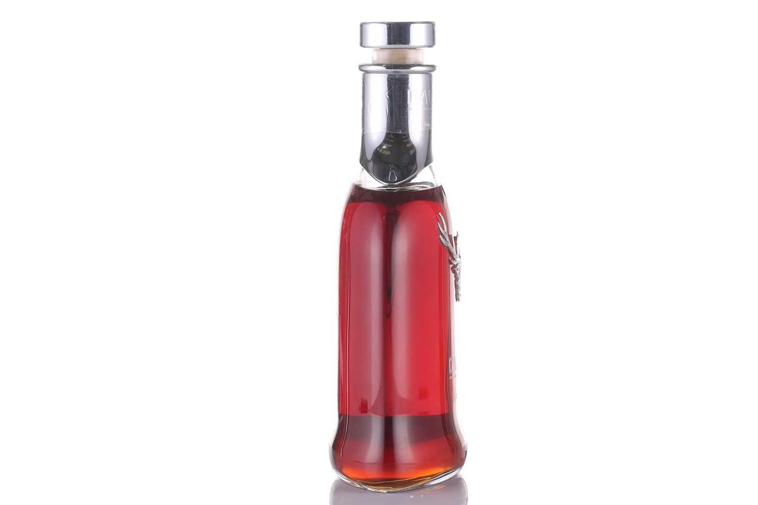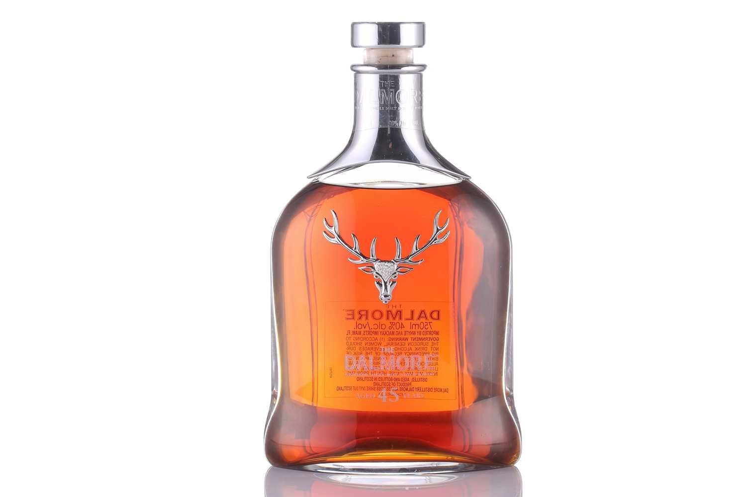 A bottle of Dalmore 45 Year Old Highland Single Malt Scotch Whisky, distilled and bottled at Dalmore Distillery, Alness, 750 ml, 40 % Vol, in a Baccarat crystal glass decanter, serial number 4157161 to label verso. Original presentation box is not present, having suffered water damage. Bottle in good, clean order. US import.