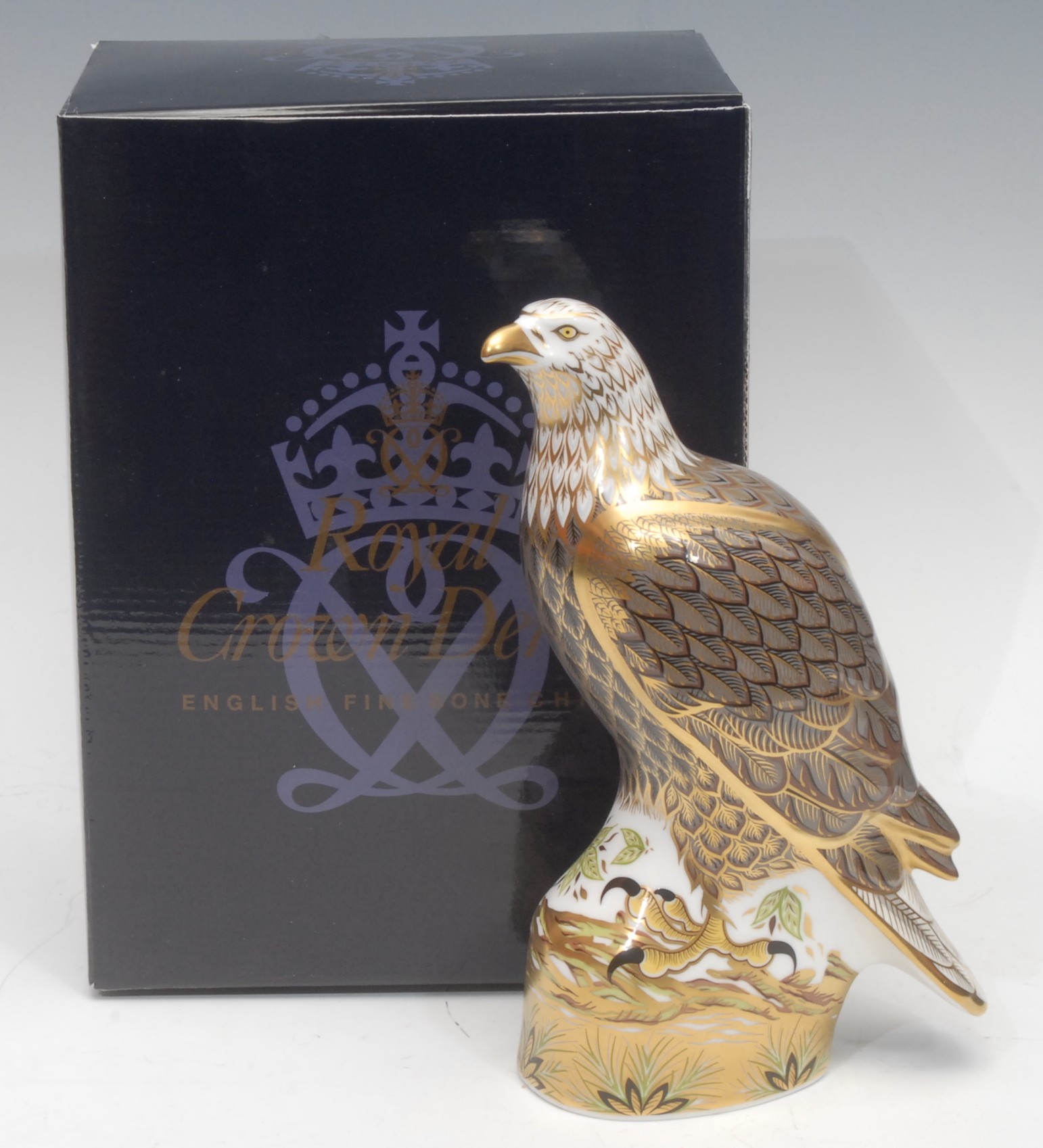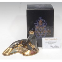 A Royal Crown Derby paperweight, Sea Eagle, gold stopper, 21cm high, printed mark in red, boxed