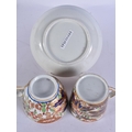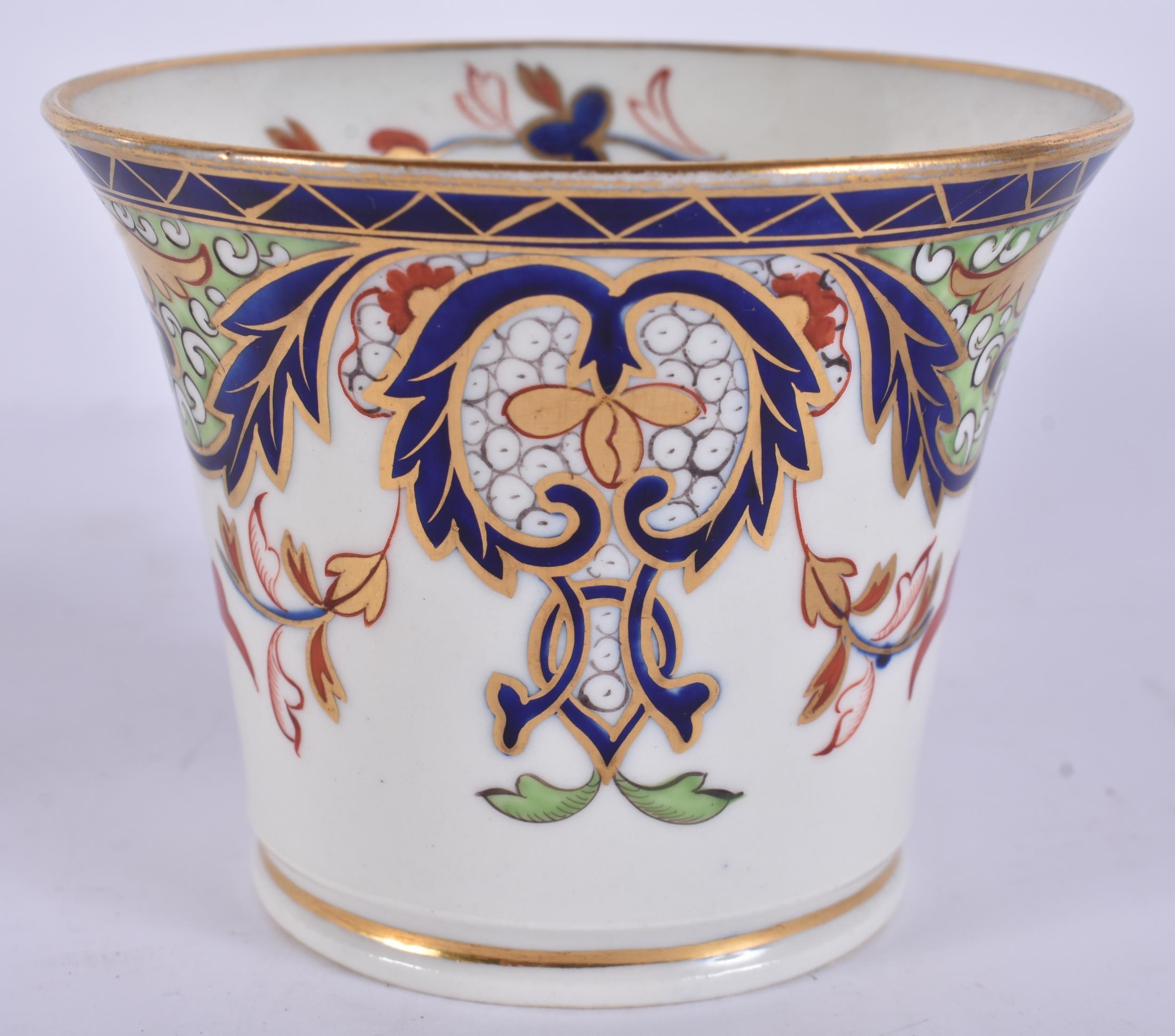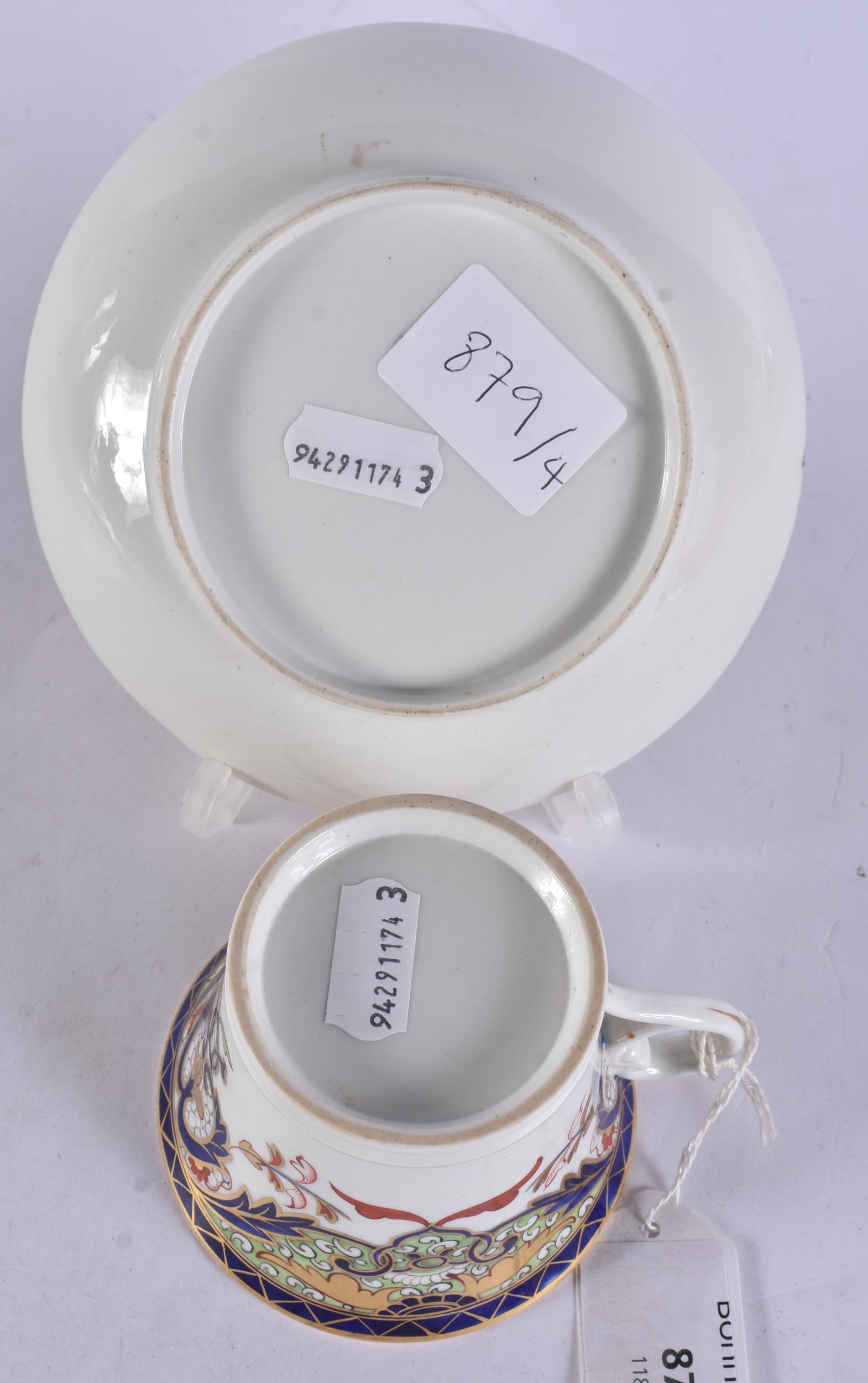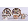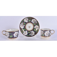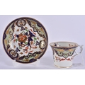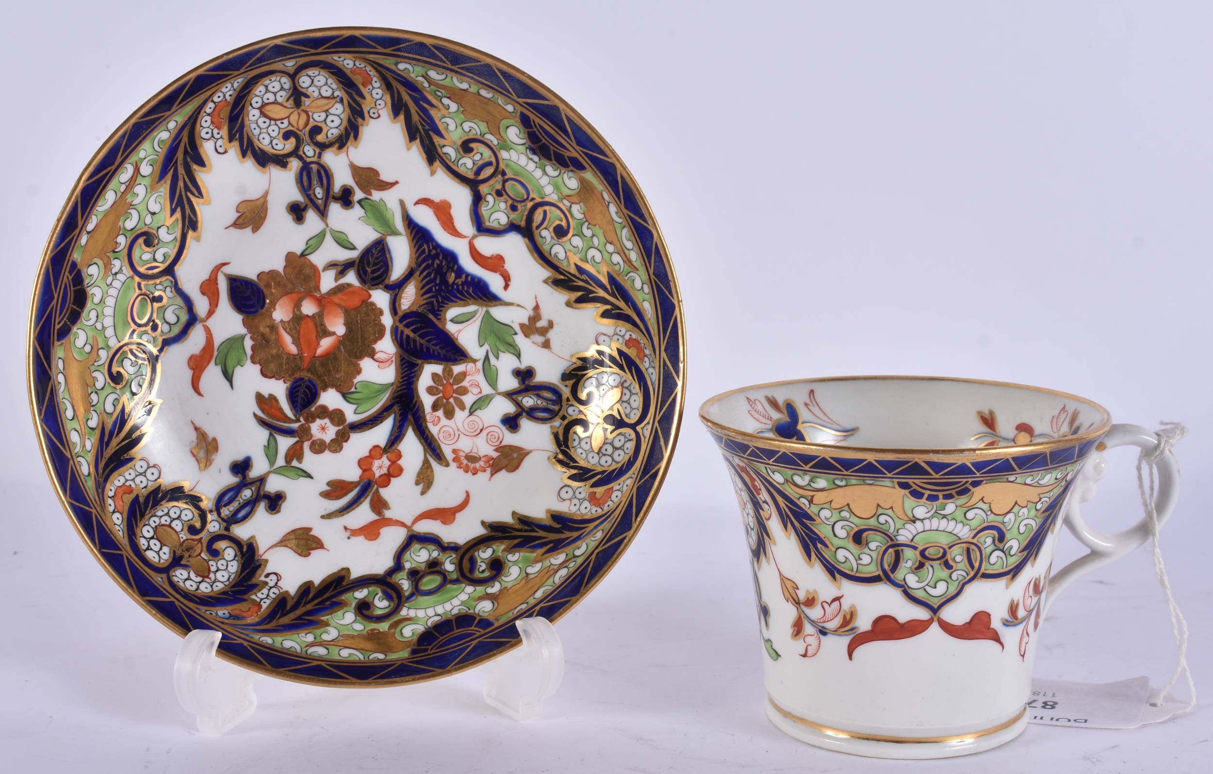 TWO EARLY 19TH CENTURY CHAMBERLAINS WORCESTER CUPS AND SAUCERS painted with imari tones. (5)