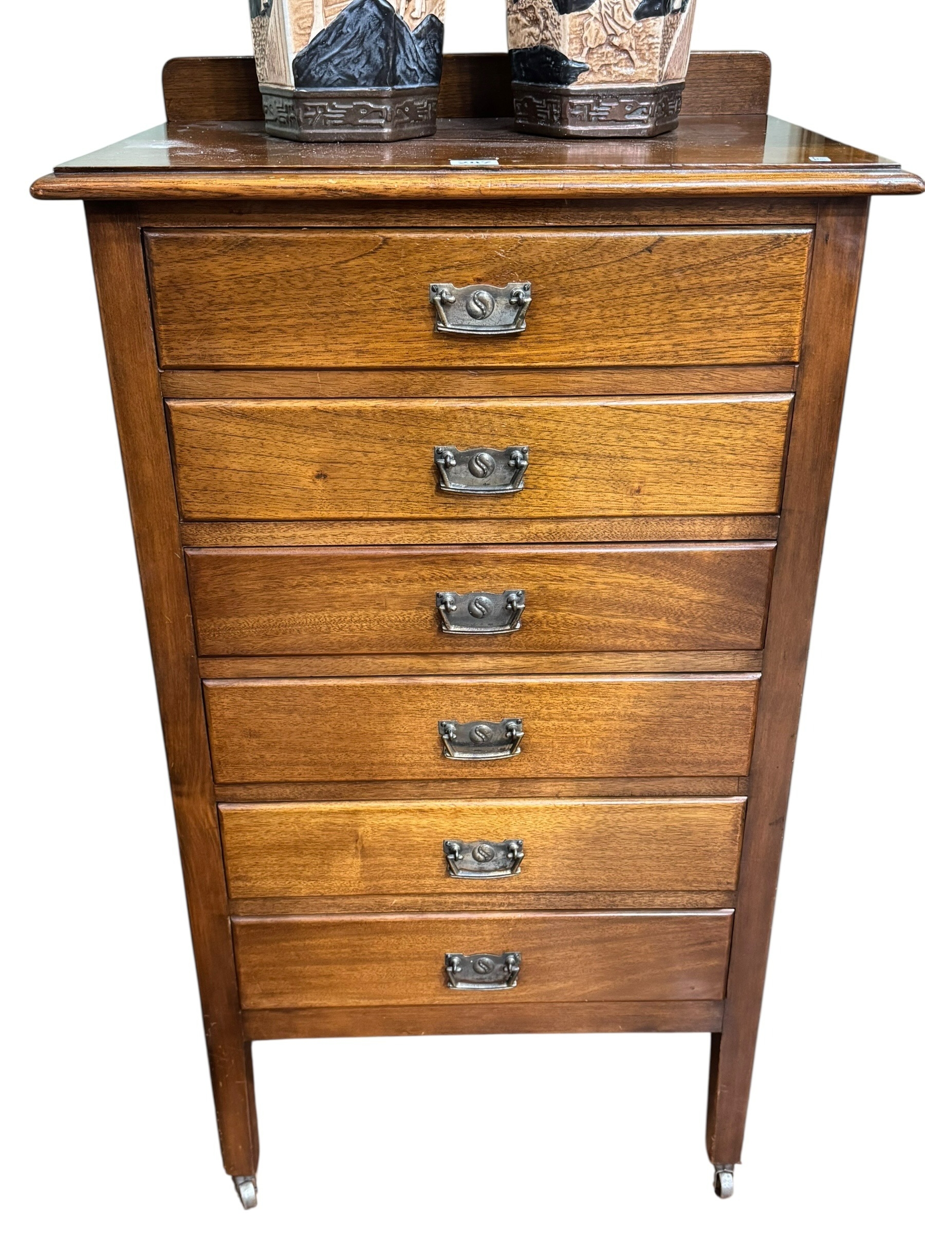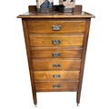 Edwardian mahogany six drawer music cabinet and music, 107cm by 59cm by 39cm.