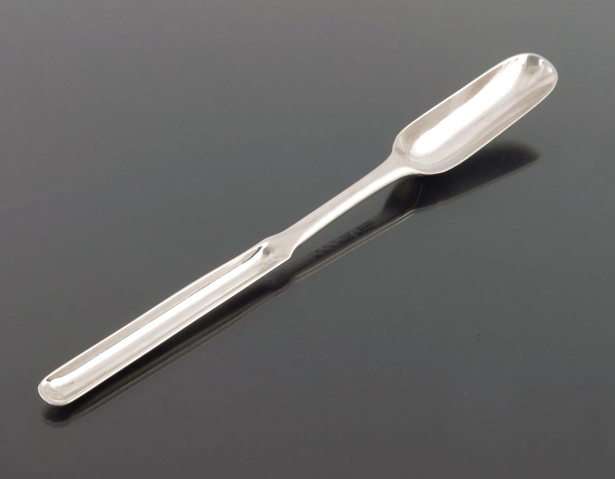A George III silver marrow scoop, Hester Bateman, London 1779, plain form, 22cm long, 1.36ozt