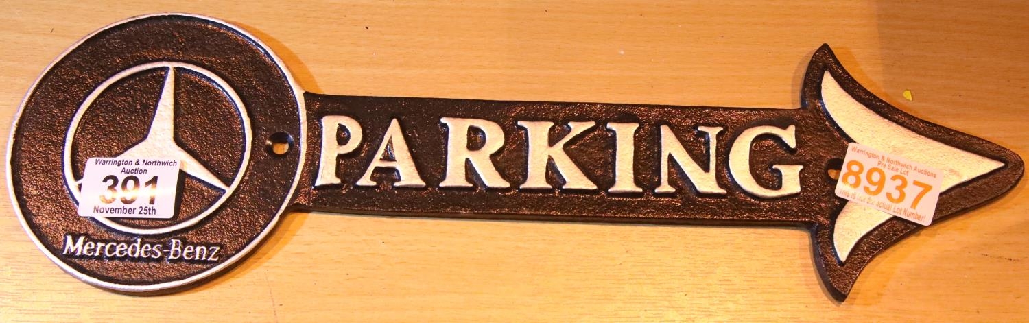 Cast iron Mercedes Benz parking arrow, 40 x 12 cm. P&P Group 1 (£14+VAT for the first lot and £1+VAT for subsequent lots)