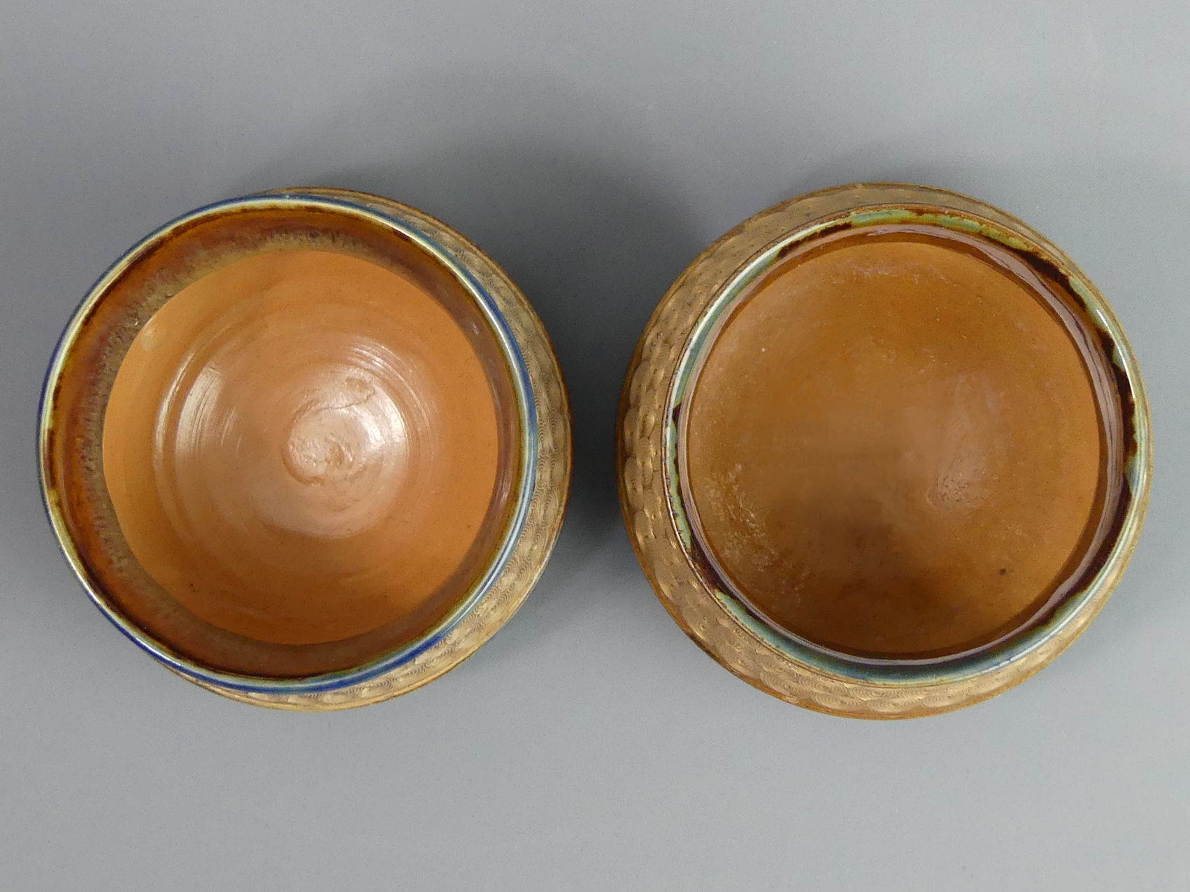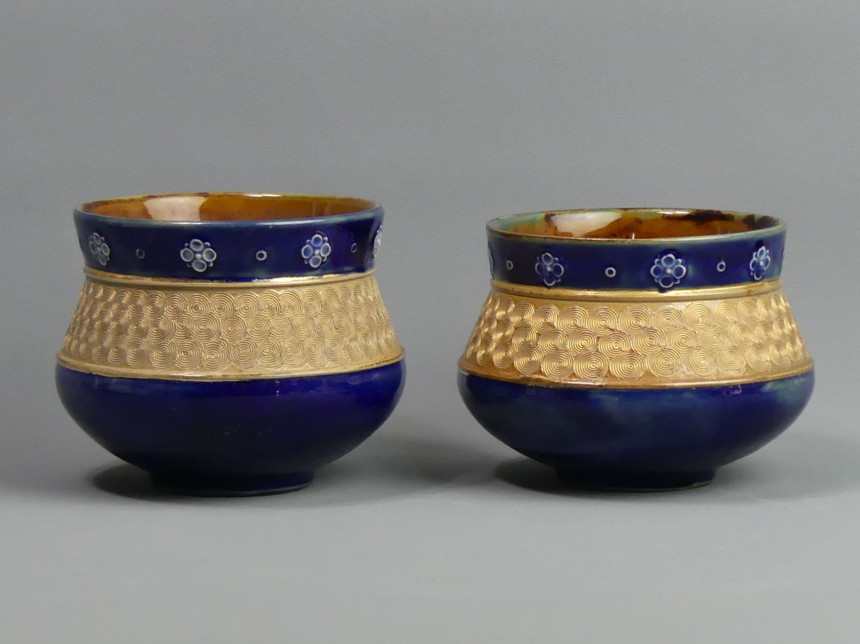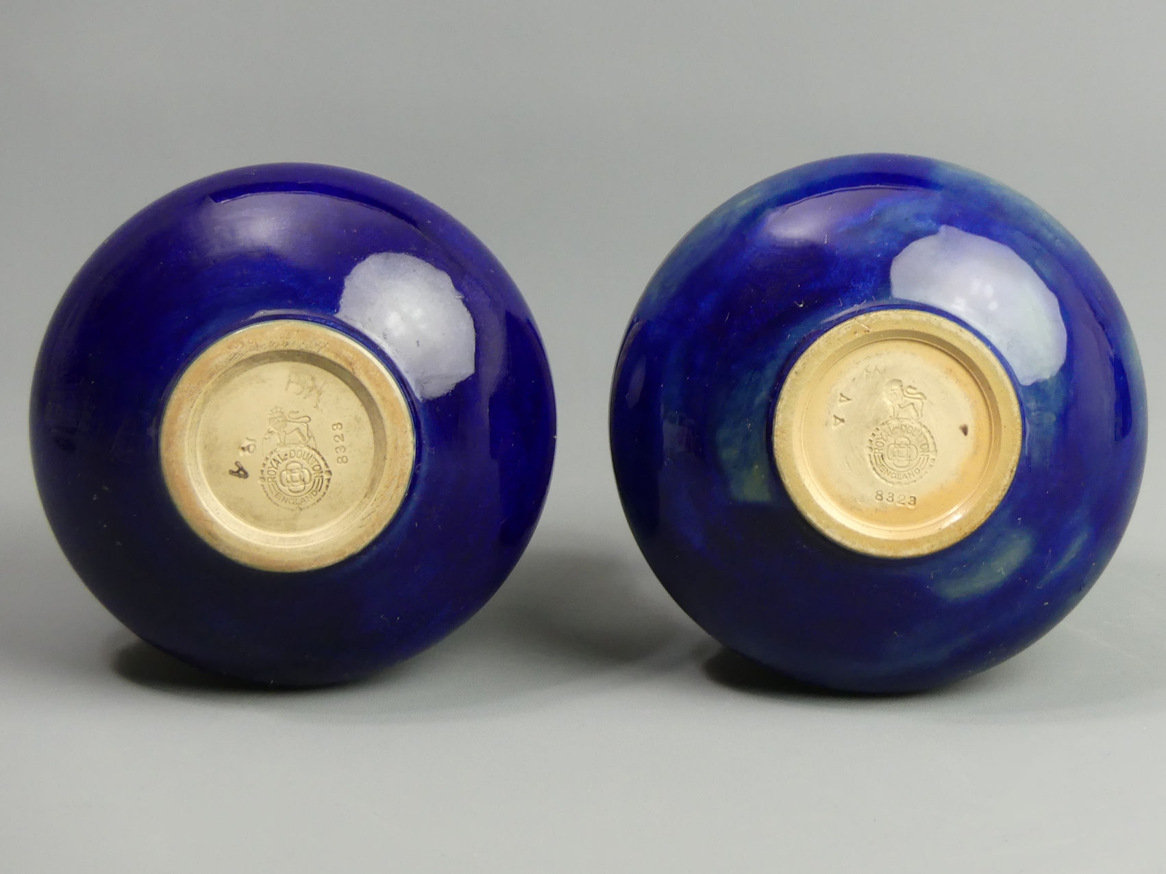 Two Royal Doulton art pottery squat vases, circa 1910. 9 & 9.5 cm high. UK Postage £15.
