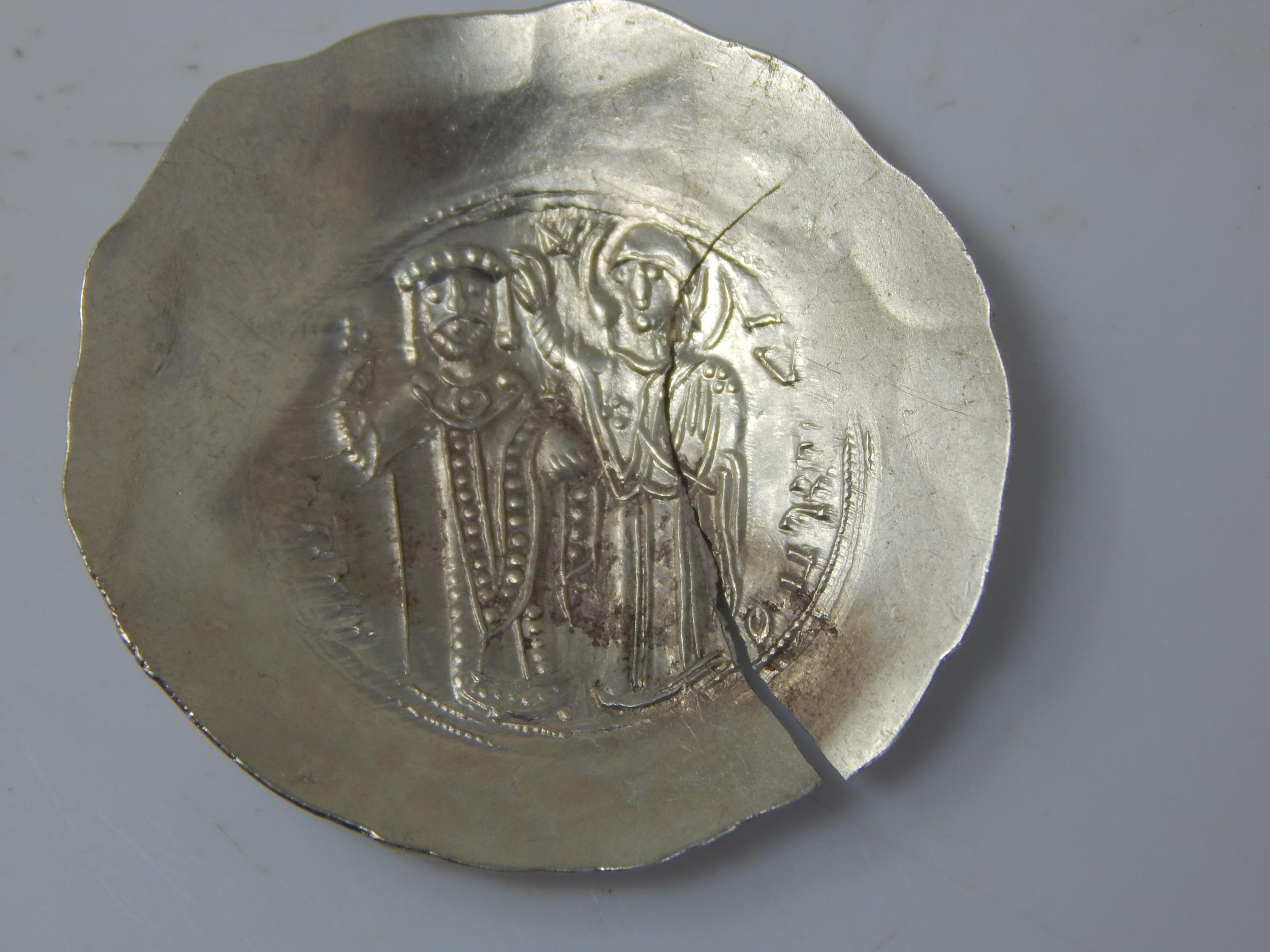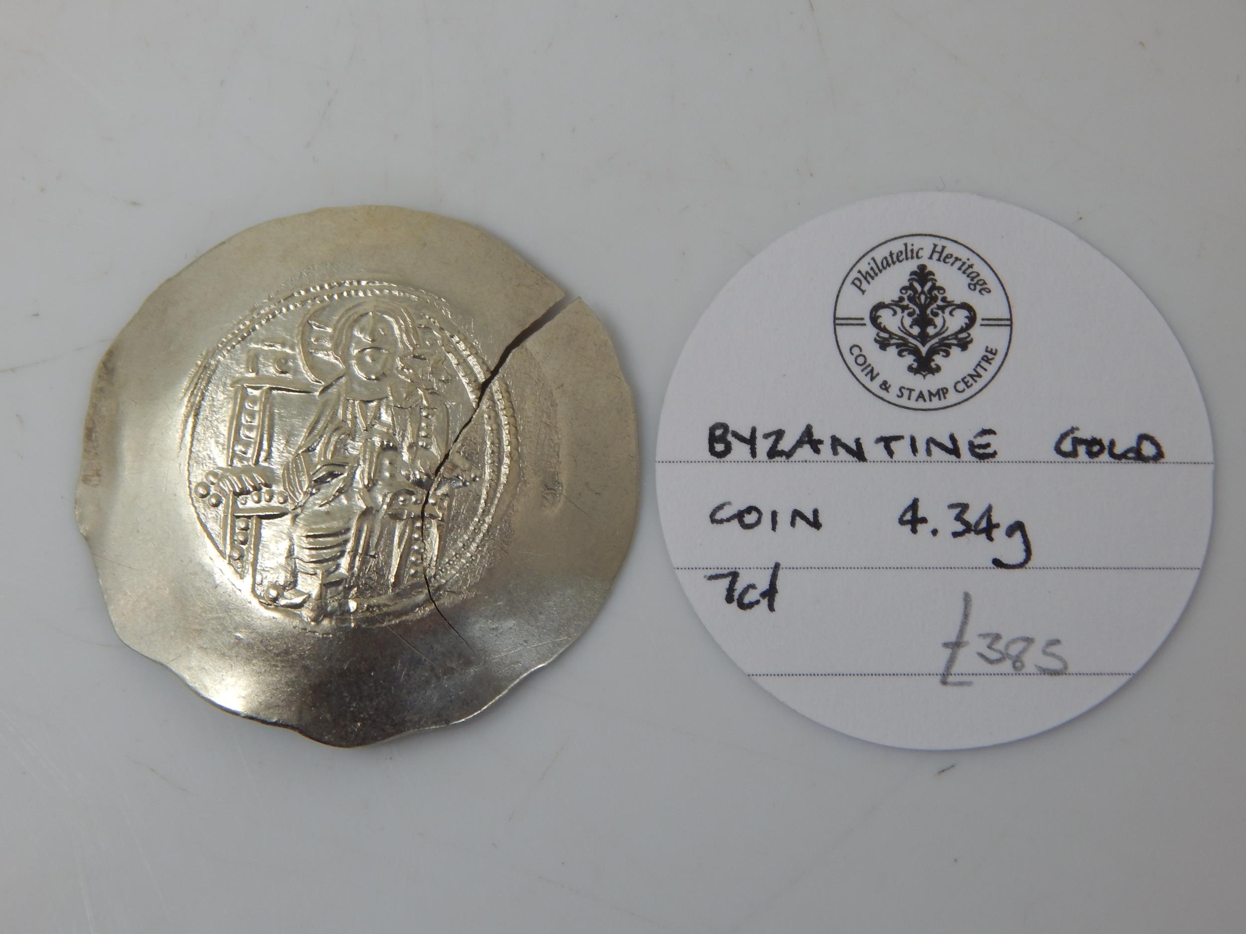 Byzantine Gold Coin tests 7ct Gold great detail but cracked planchet, scarce