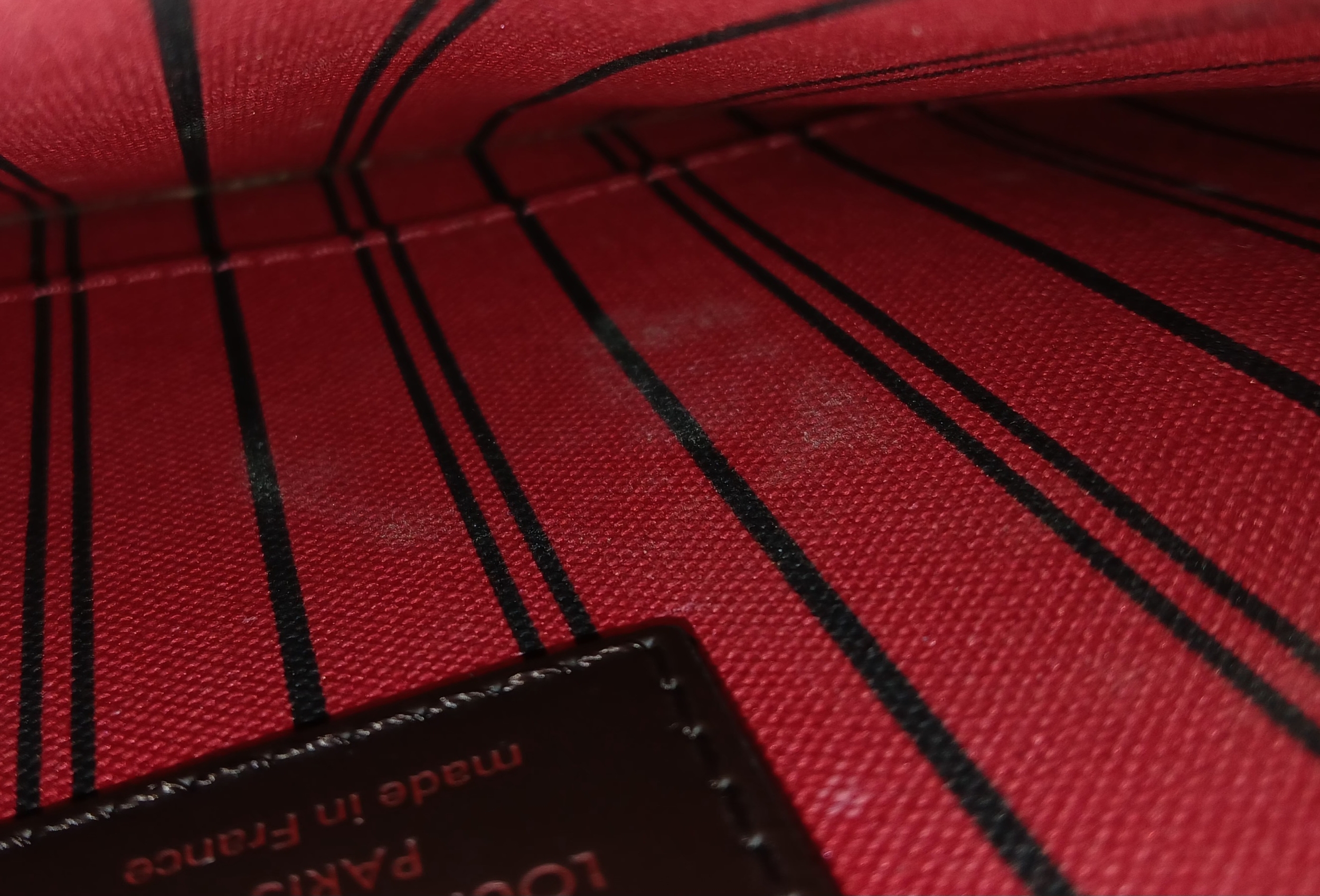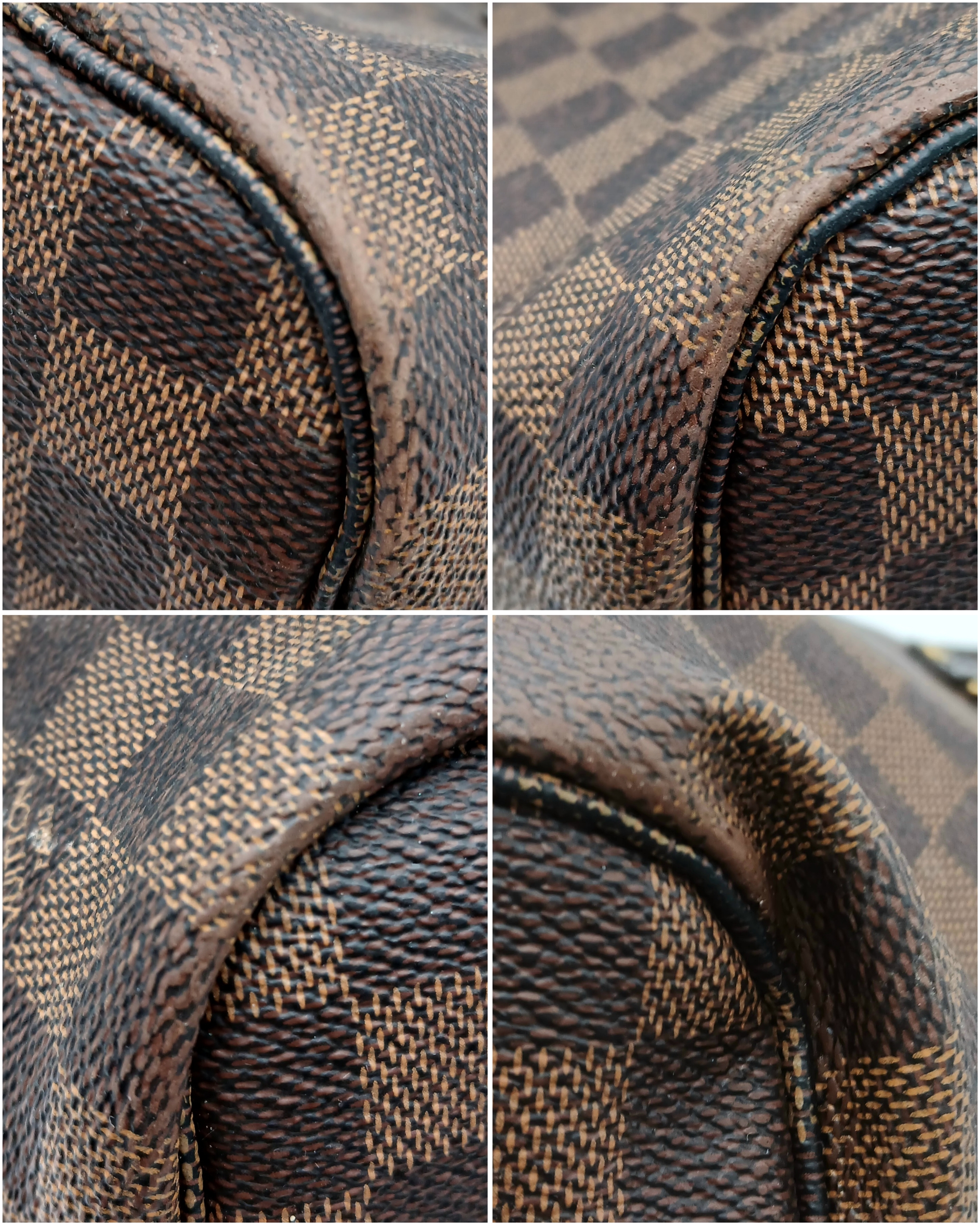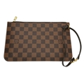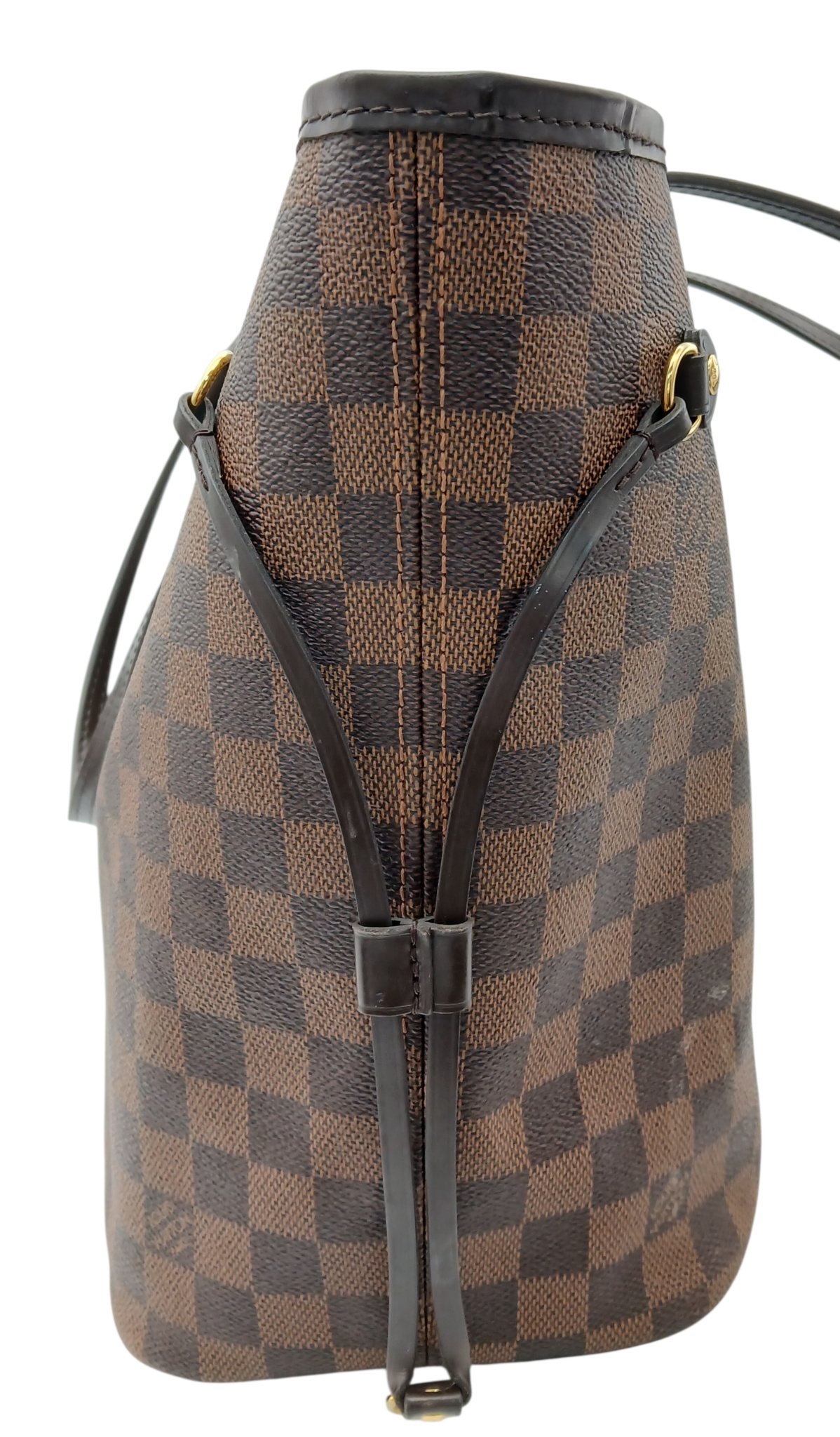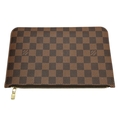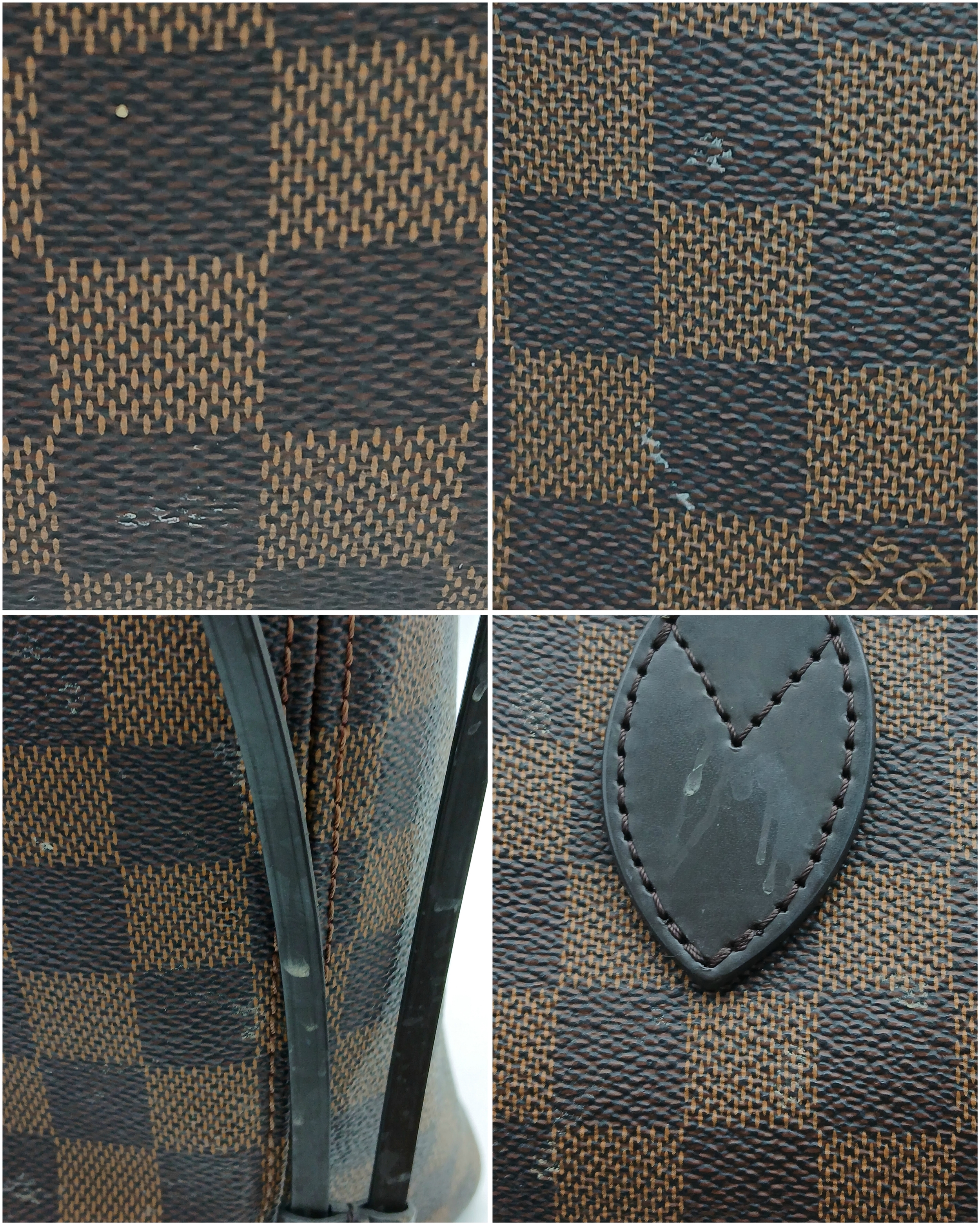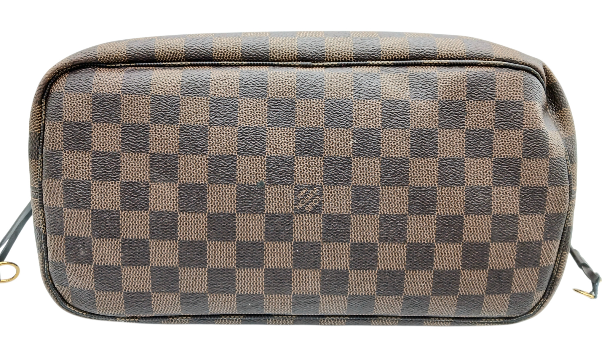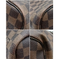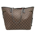 A Louis Vuitton Neverfull Damier Ebene Bag. Coated canvas exterior with leather trim, gold-toned hardware, two thin leather handles and a clasp closure. Red textile interior with a large zipped inner flap compartment. Comes with matching Louis Vuitton damier ebene pouch and certificate of authenticity. Approximately 46.5cm length x 29cm height bag, 25cm length x 15.5cm height pouch. Stains to the interior and minor white marks to the exterior - please see photos or request a condition report. Ref: 27427