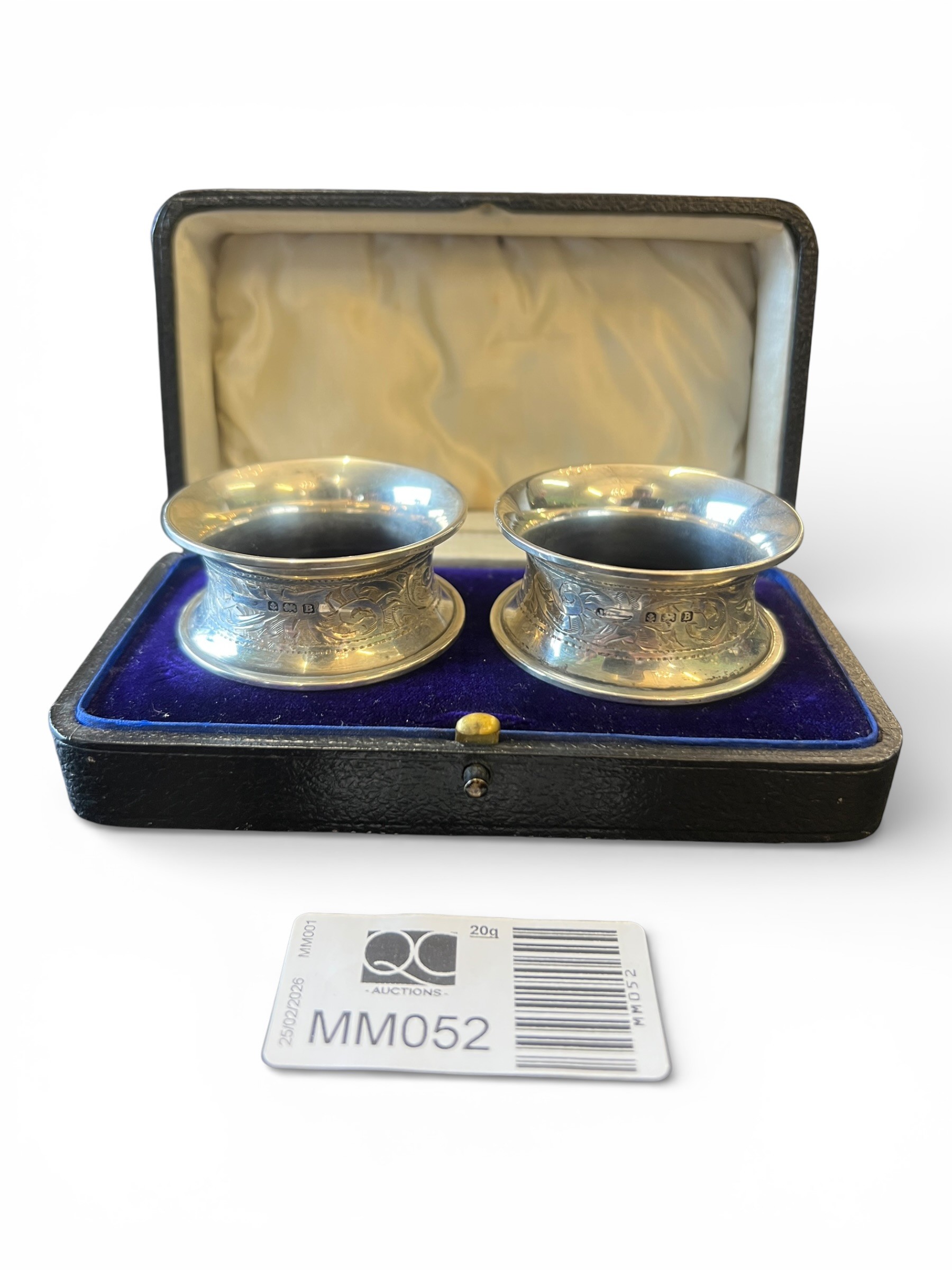 Boxed Set of Birmingham Hallmarked Silver Napkin Rings – 40g