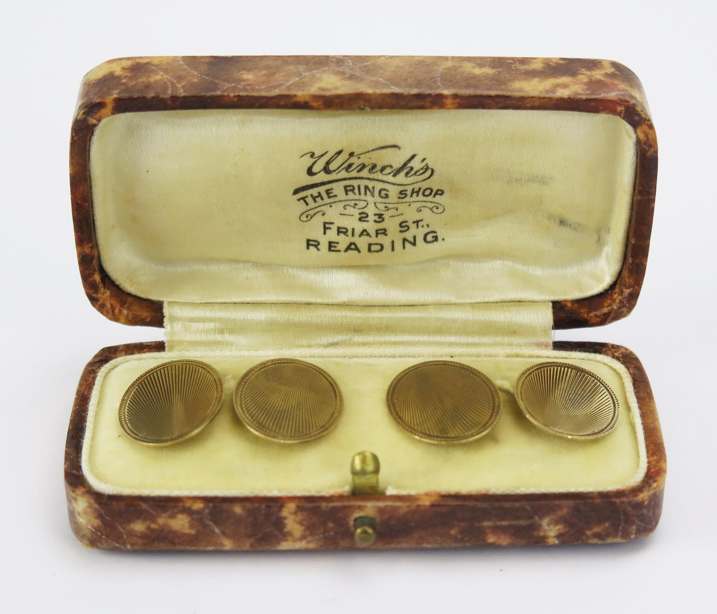 A Cased Pair of 9ct Gold Cufflinks with engine turned decoration, Chester 1929, 5.37g