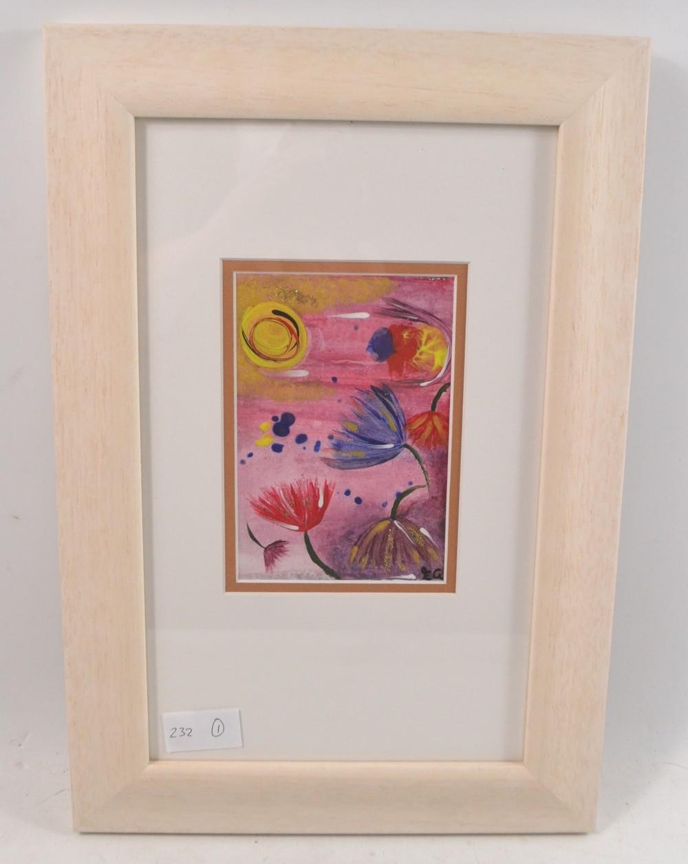 LOCAL ARTIST EMMA GOLD modern original 'Enchanting Wind' 2020 floral mixed media newly framed 16cm x 11cm(dimensions of picture not including frame and mount which is 40cm High x 27cm Width