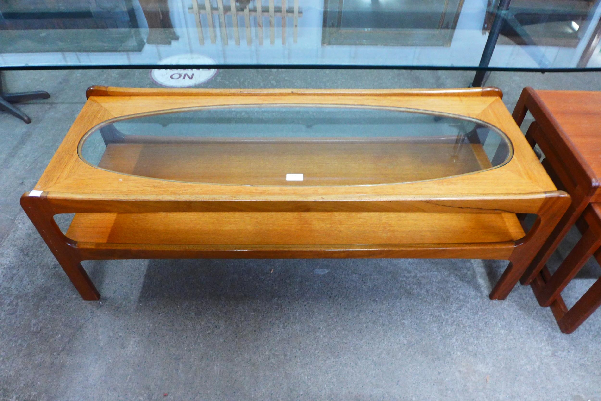 A teak and glass topped coffee table