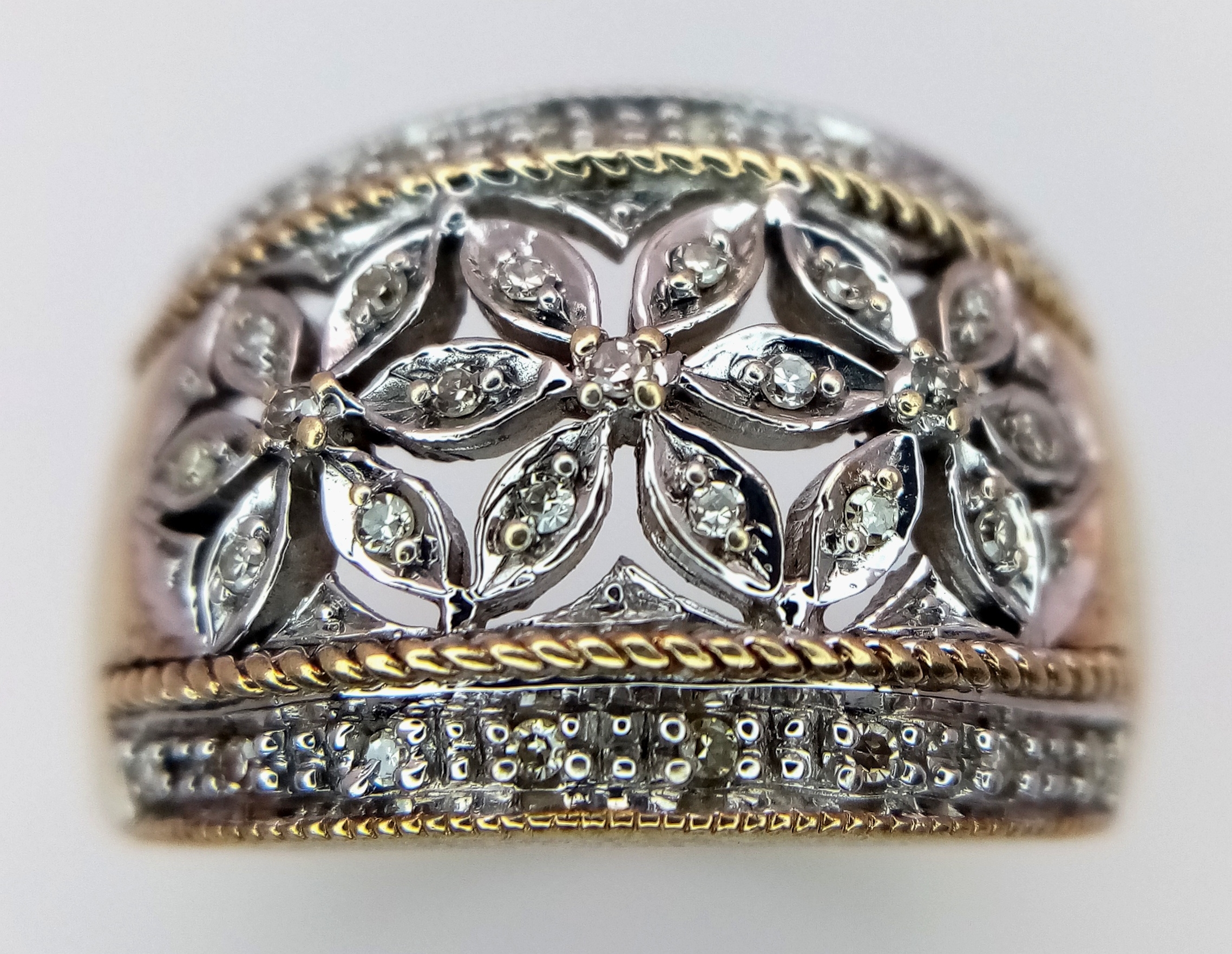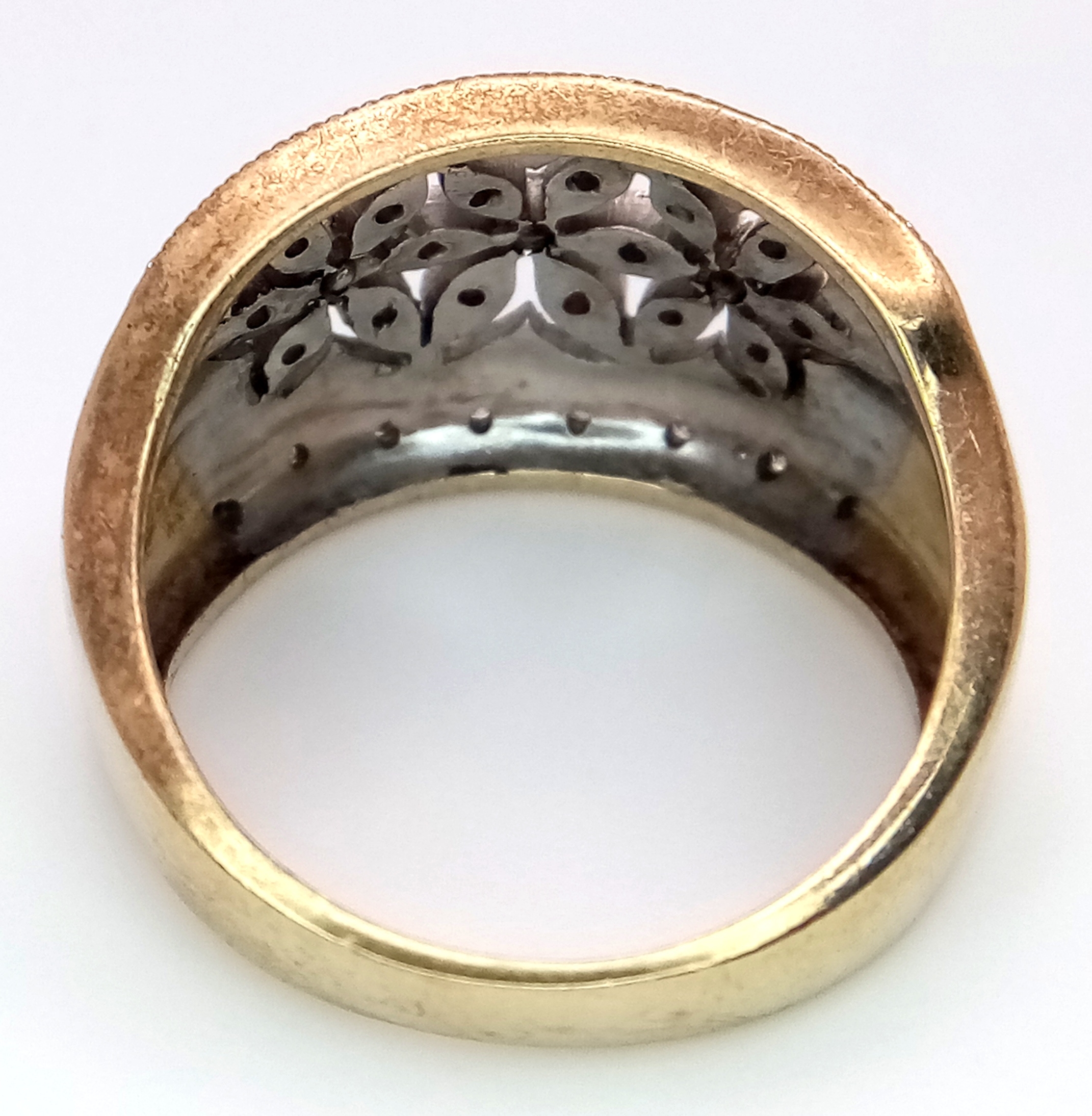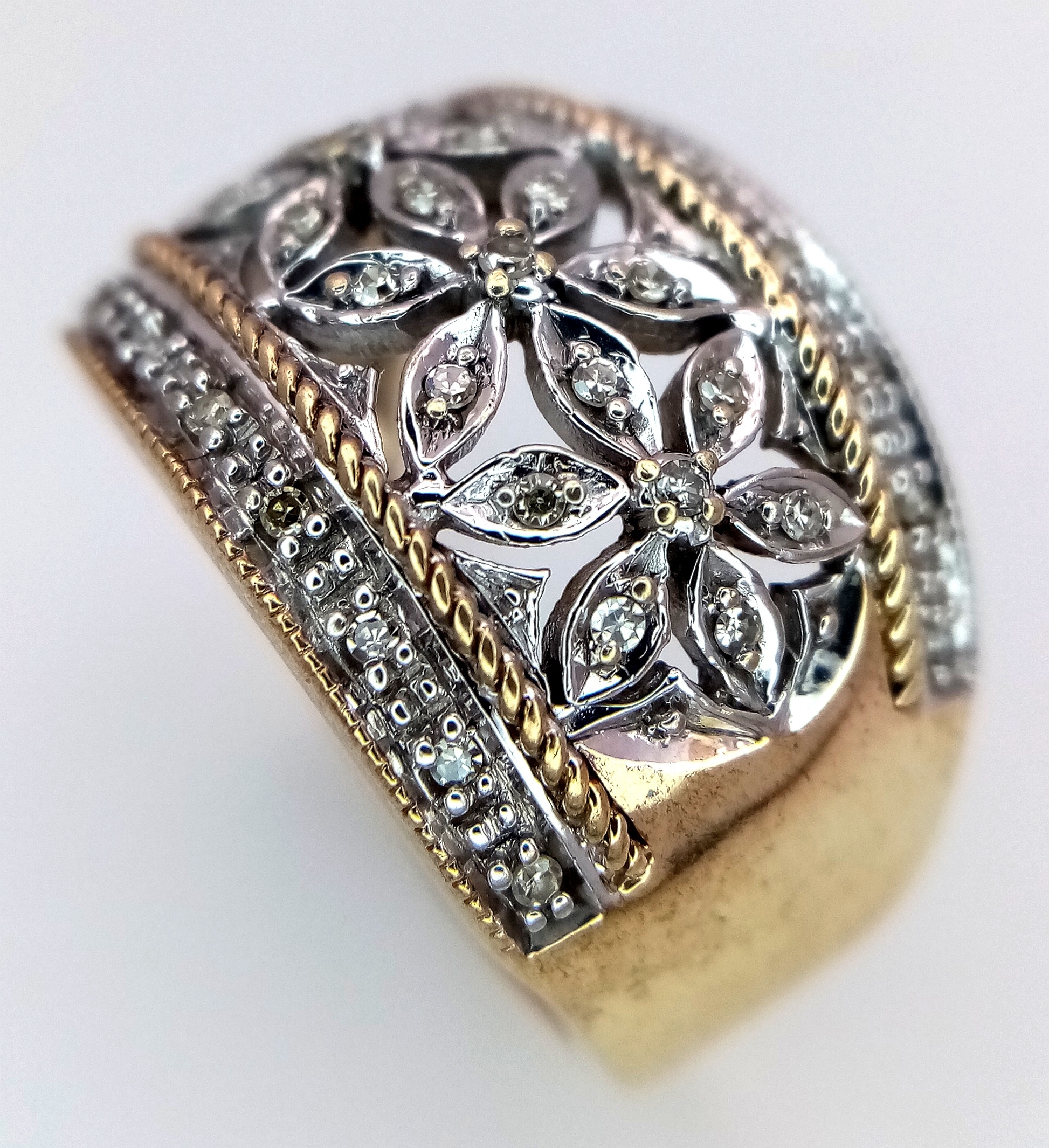 A 9K YELLOW GOLD FLOWER DESIGN DIAMOND SET RING 5.8G SIZE N. REF: SC 9001