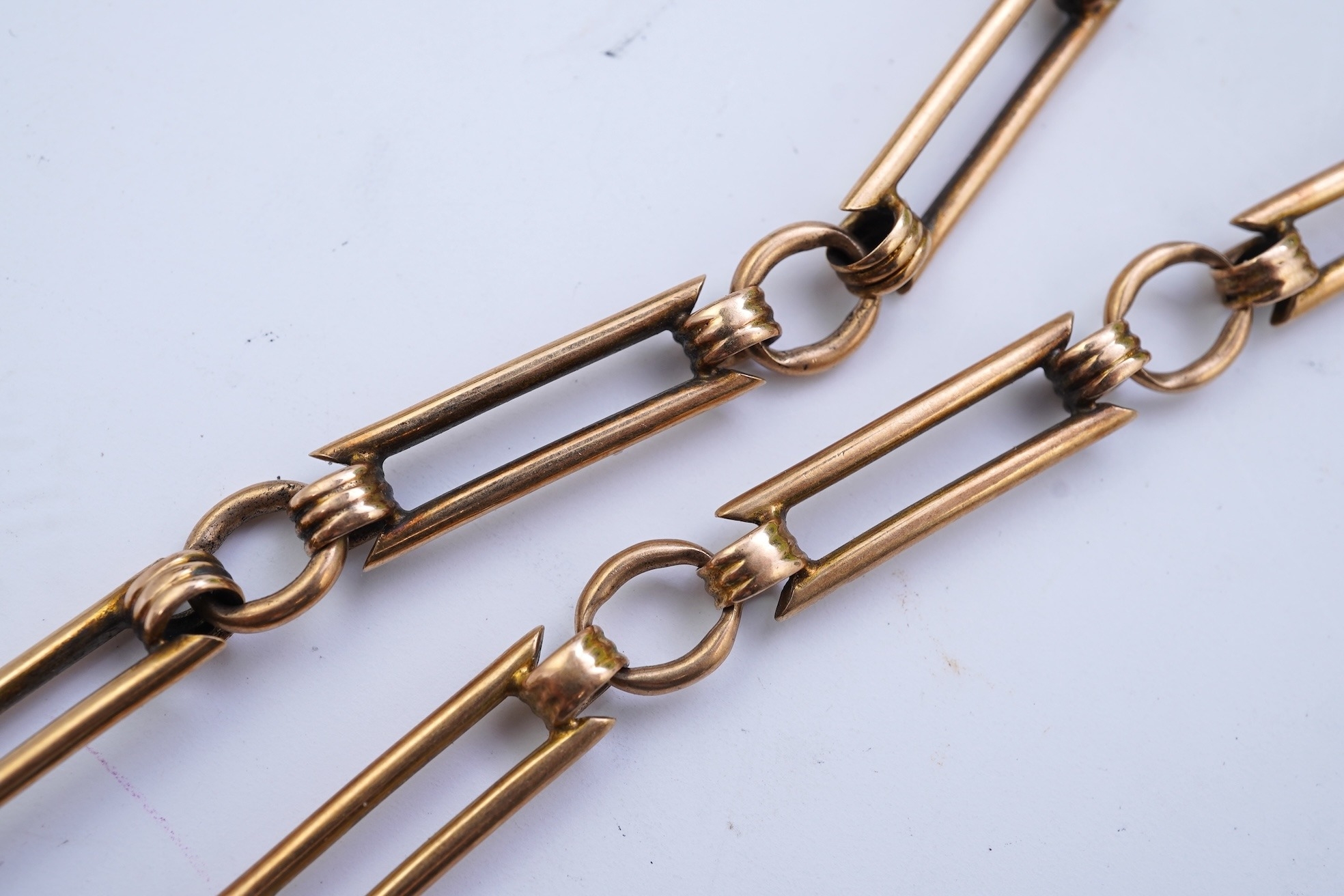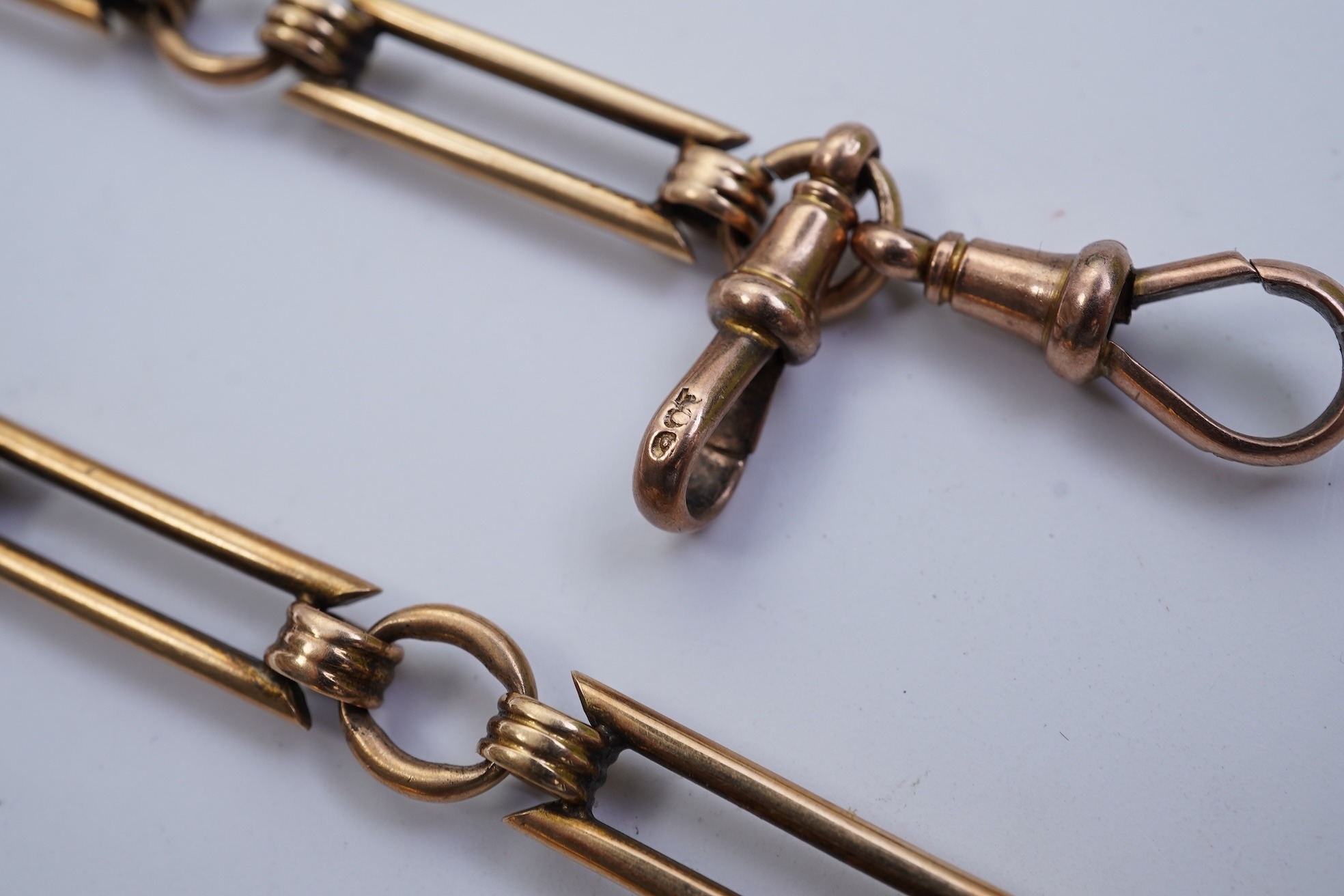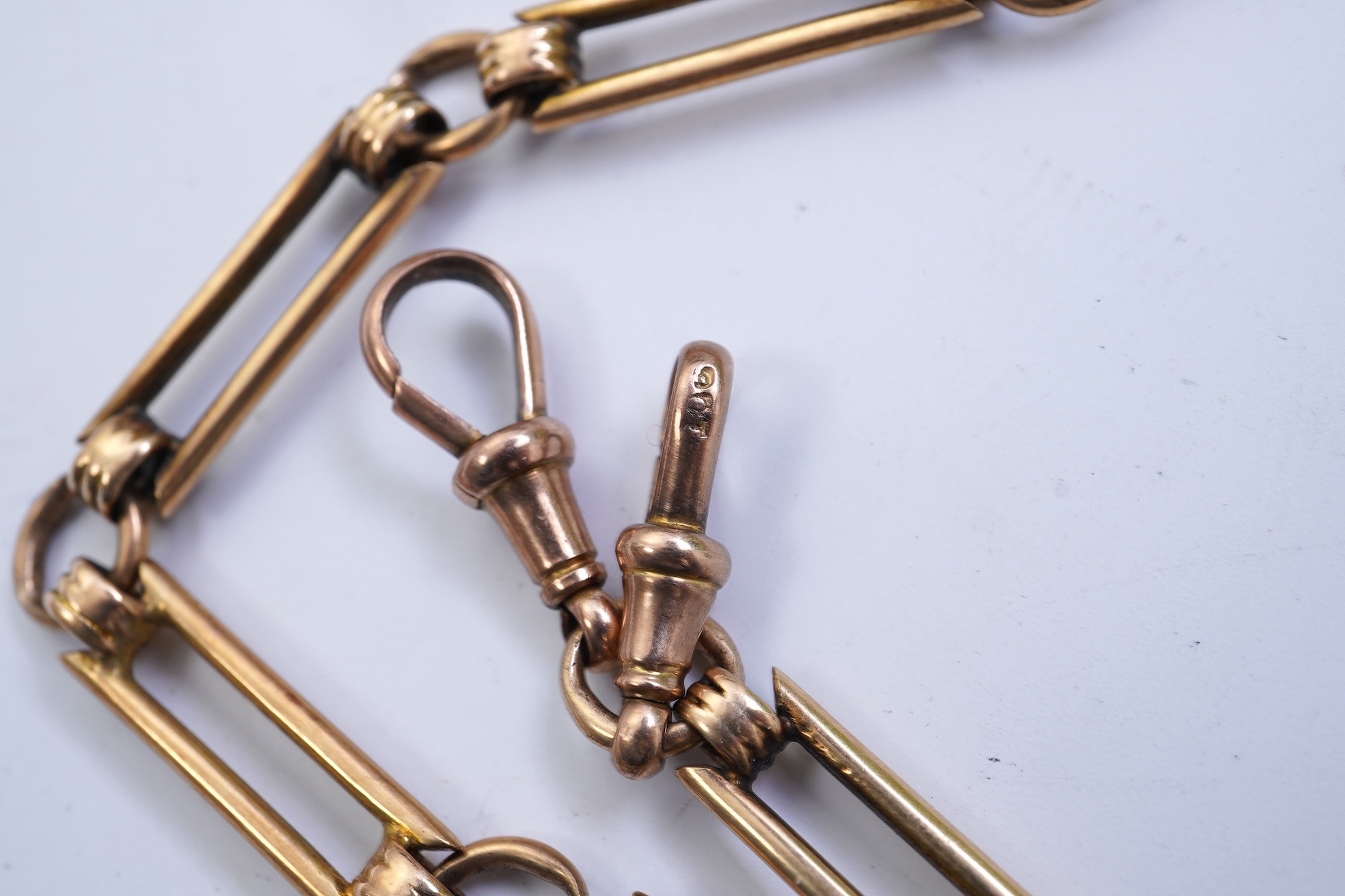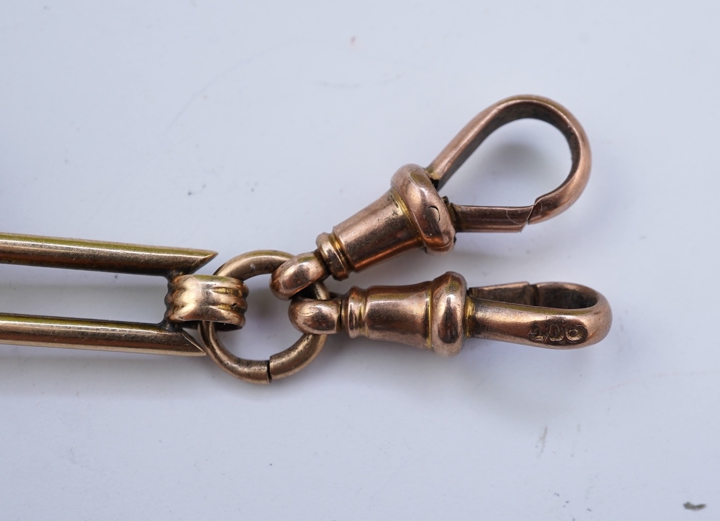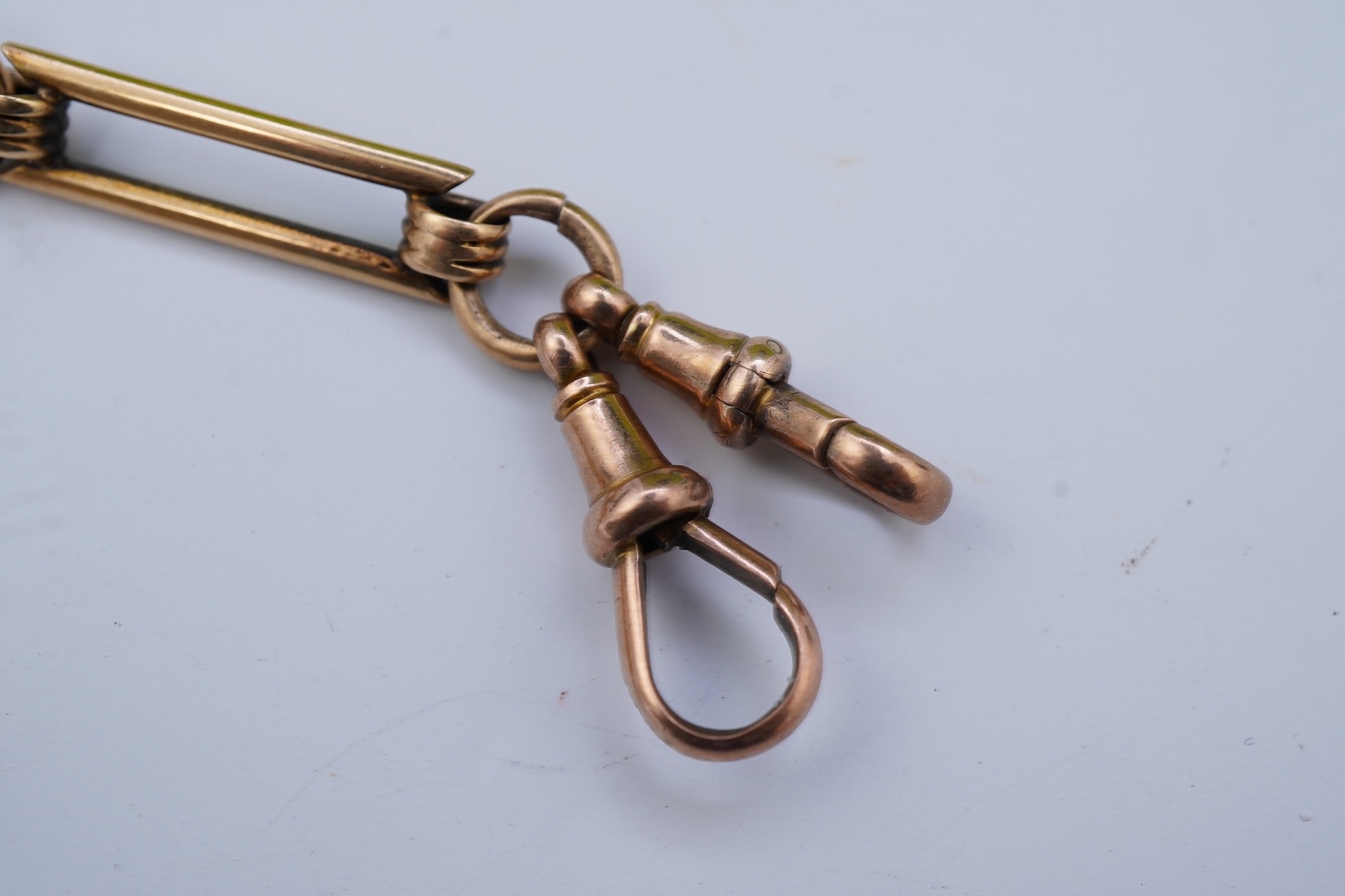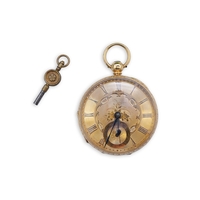 A continental 18k gold open faced keyless lever pocket watch, with a 9ct albert, the watch with Roman dial and subsidiary seconds, case diameter 48mm, gross weight 78 grams, the albert with gold plated T-bar, 37cm, gross weight 34.5 grams.