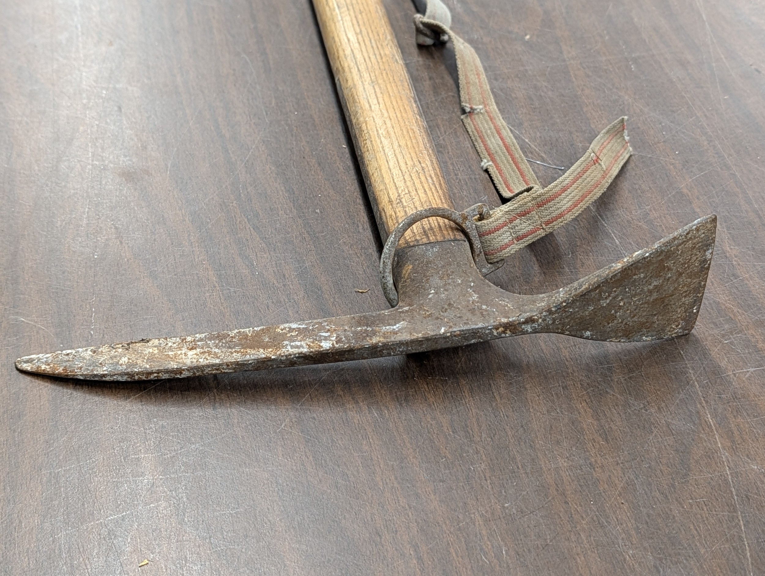 Vintage Forged Steel and Wood Mountaineering Ice Axe