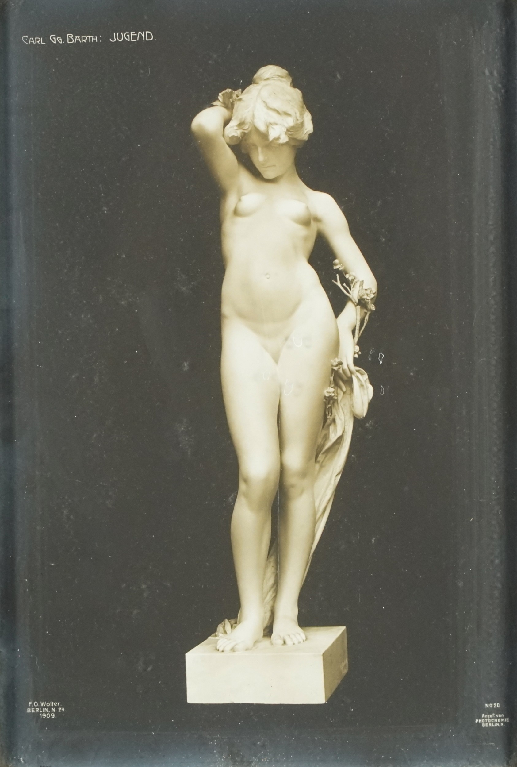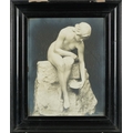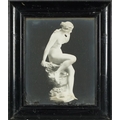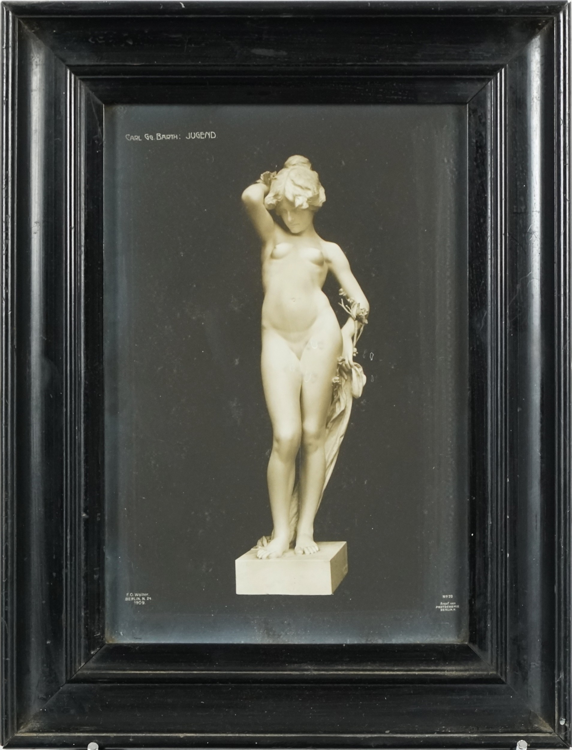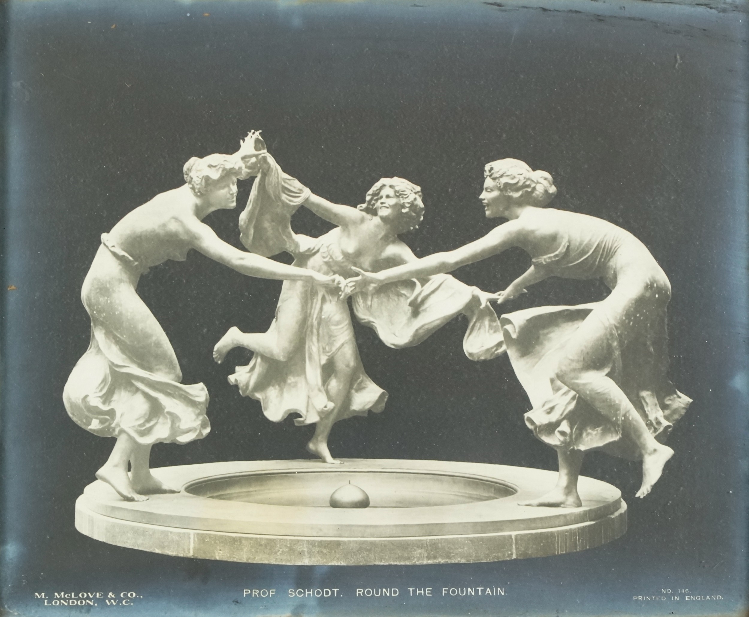 A pair of M. McLove & Co. black and white photographic prints of famous sculptures including Herzig The Echo and Valentino Casal The Source together with two similar black and white photographs of sculptures, each within an ebonised frame, the largest 29cm x 24cm.