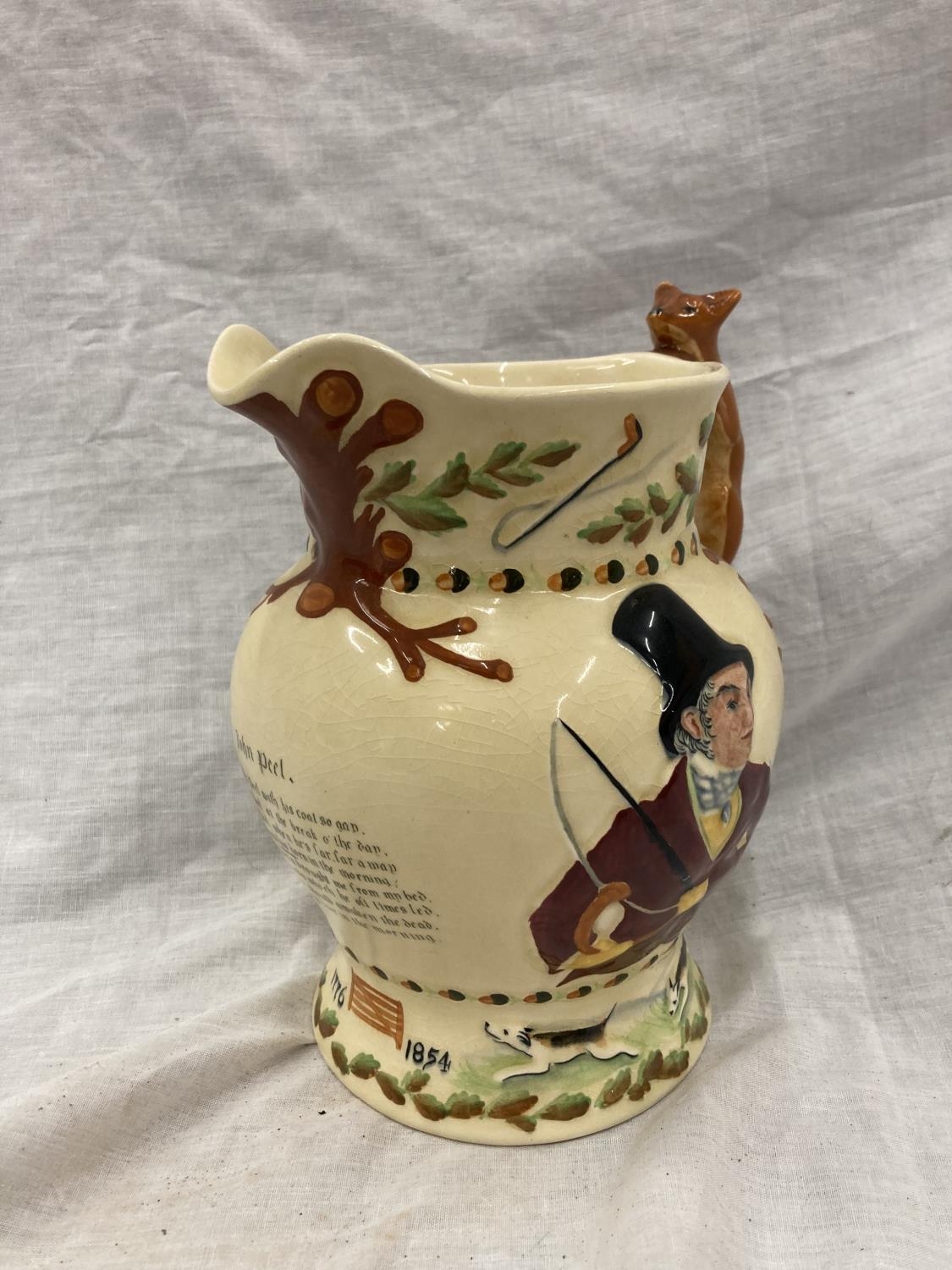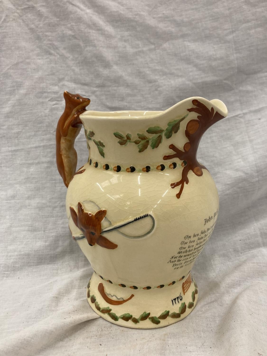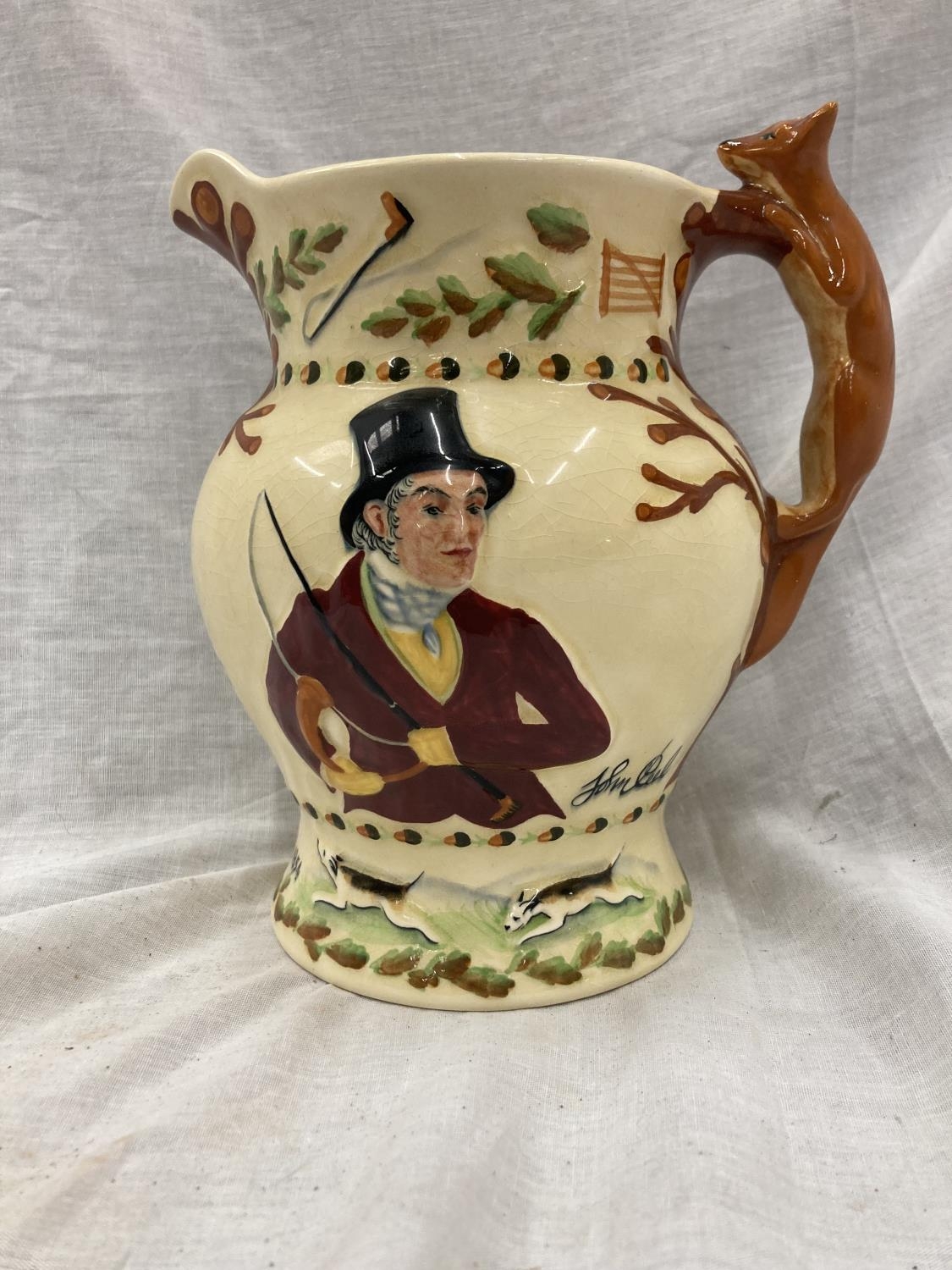 A CROWN DEVON FIELDINGS MUSICAL JOHN PEEL JUG WITH FOX HANDLE
