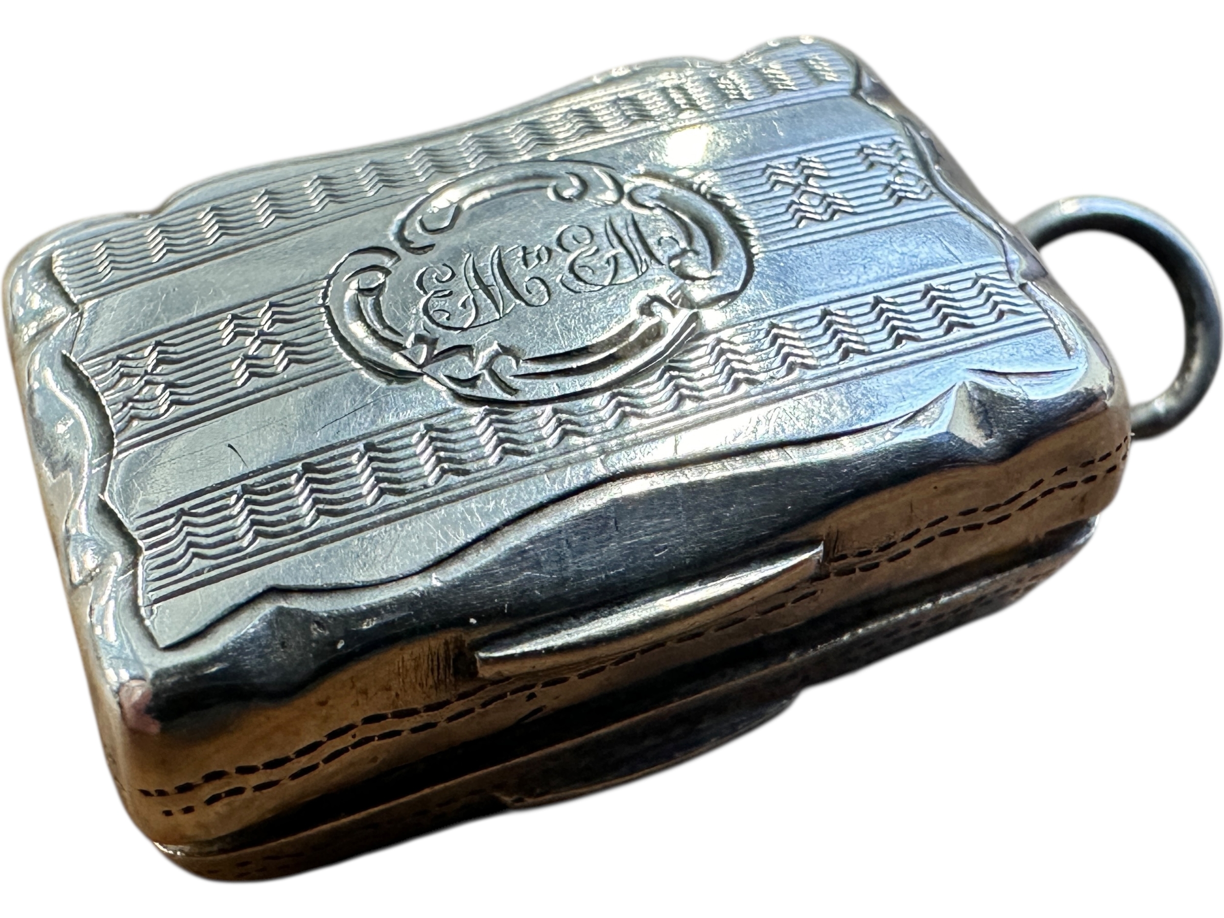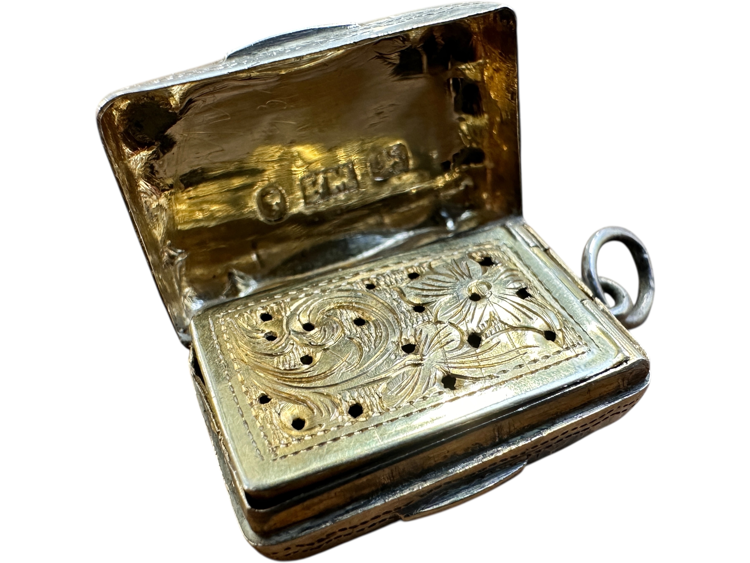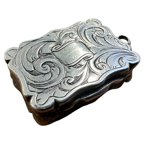 Victorian Silver Vinaigrette, Birmingham 1856 by Frederick Marson. 6.74g. Cartouche Inscription 'EM to EM'