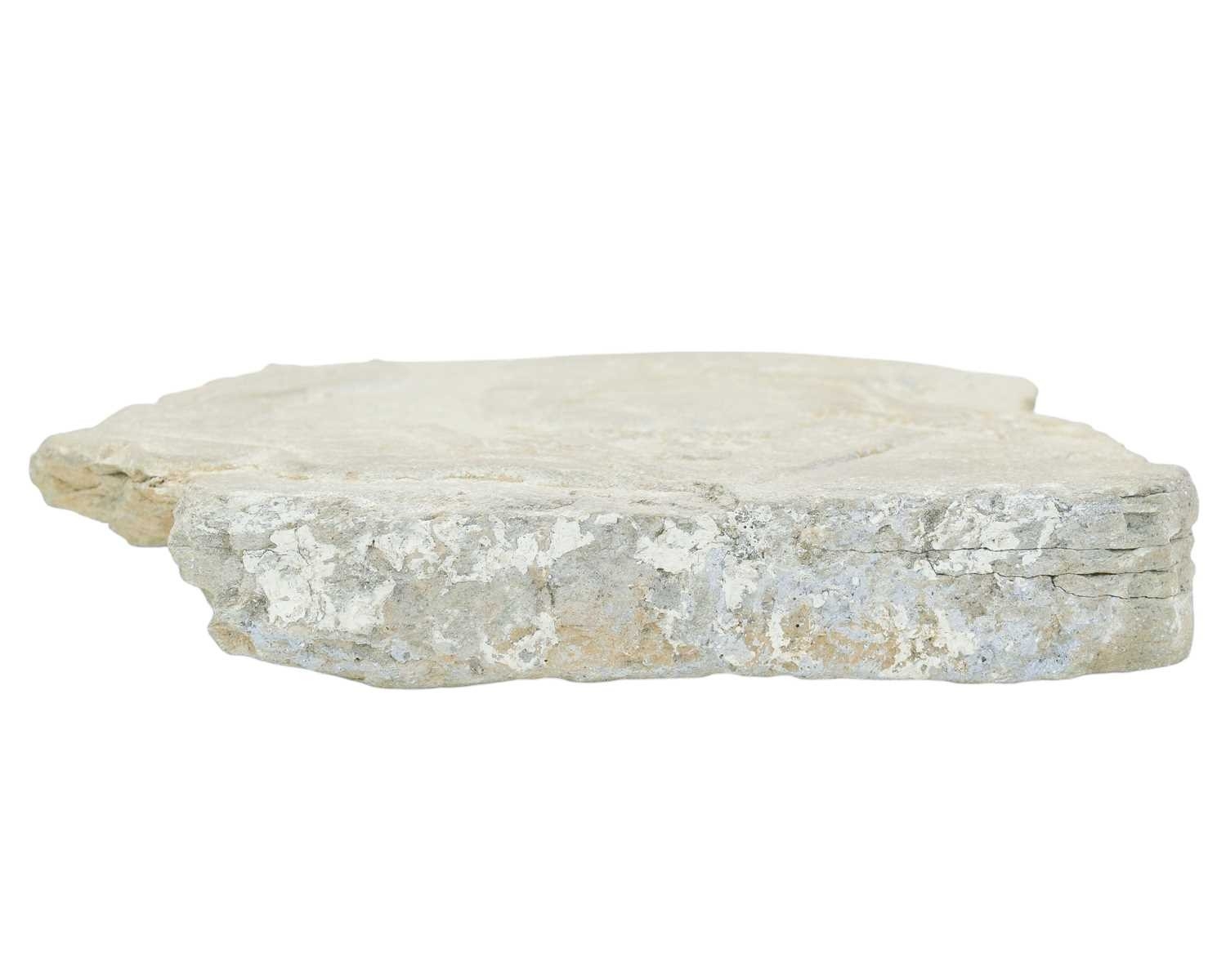 A Tang-style carved limestone fragment. Depicting Guanyin in relief, with a clear perspex stand, height 32cm, width 24cm, depth 4cm (irregular).