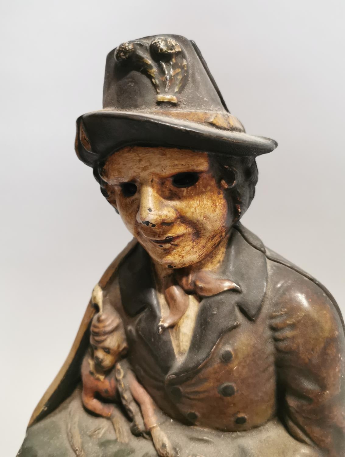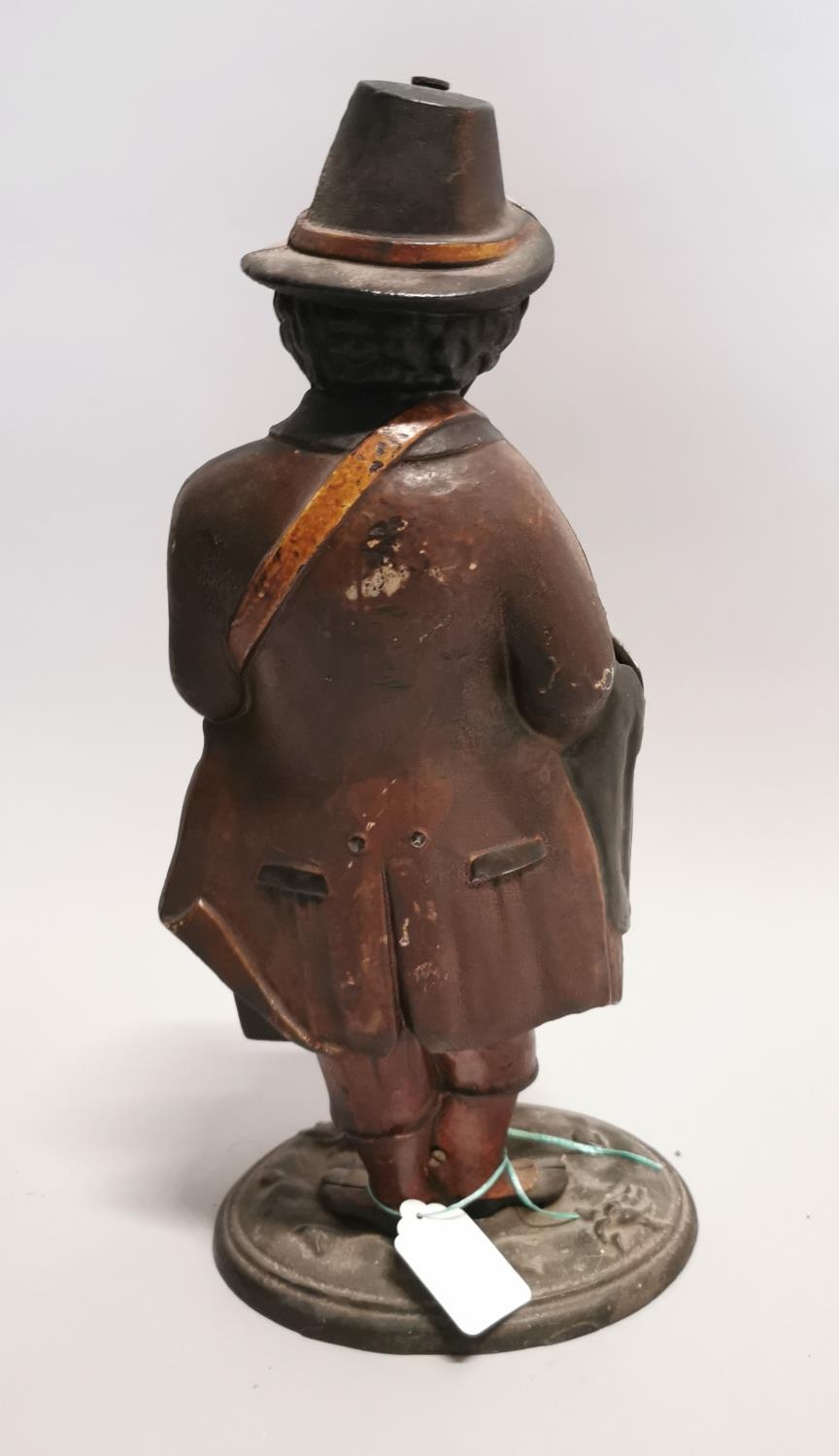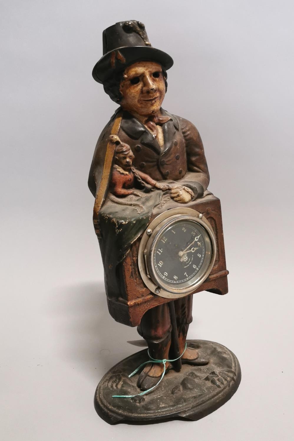 19th C. hand painted cast iron mystery clock {47 cm H x 21 cm W x 15 cm D}.
