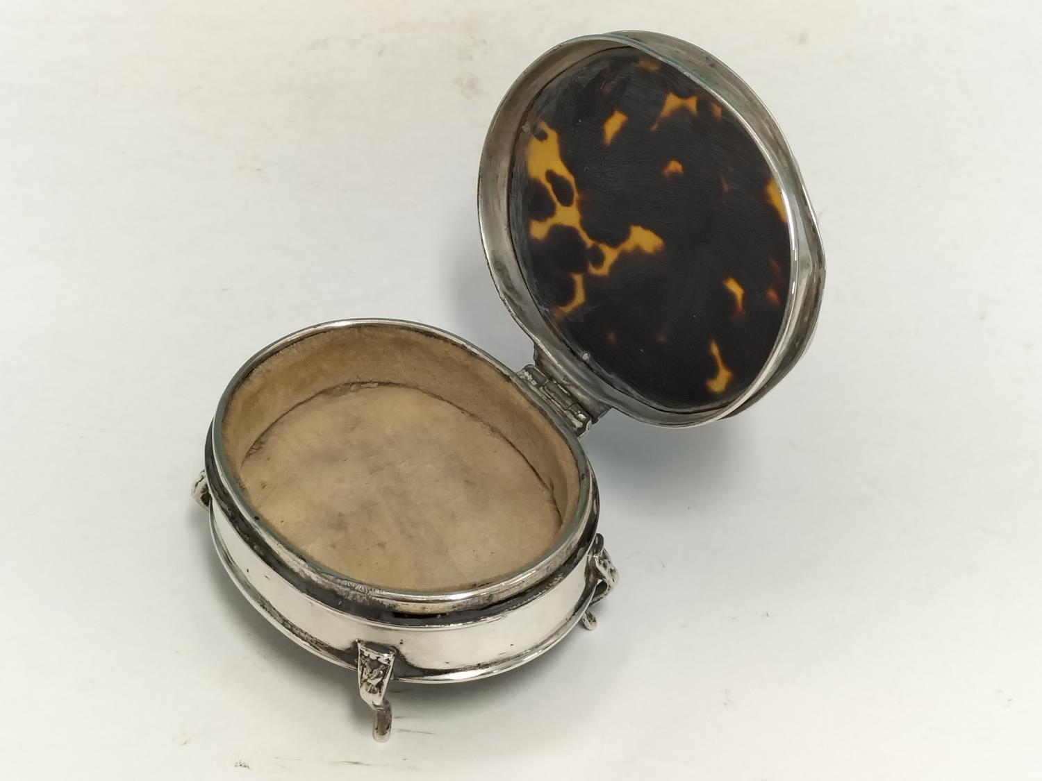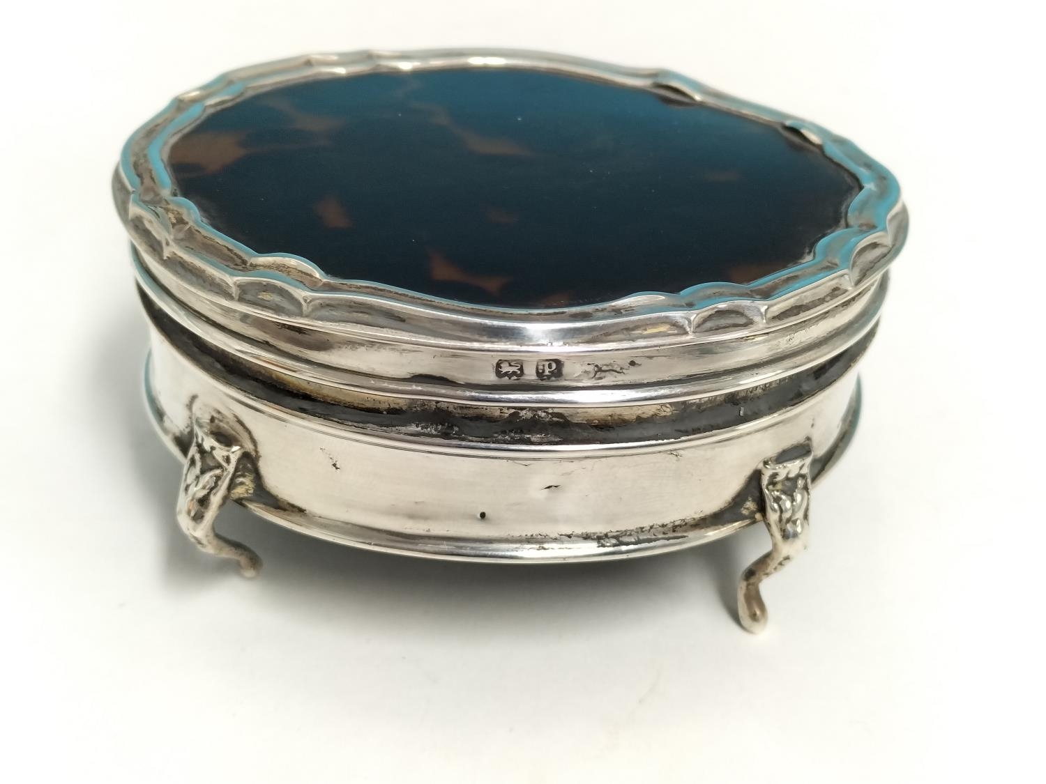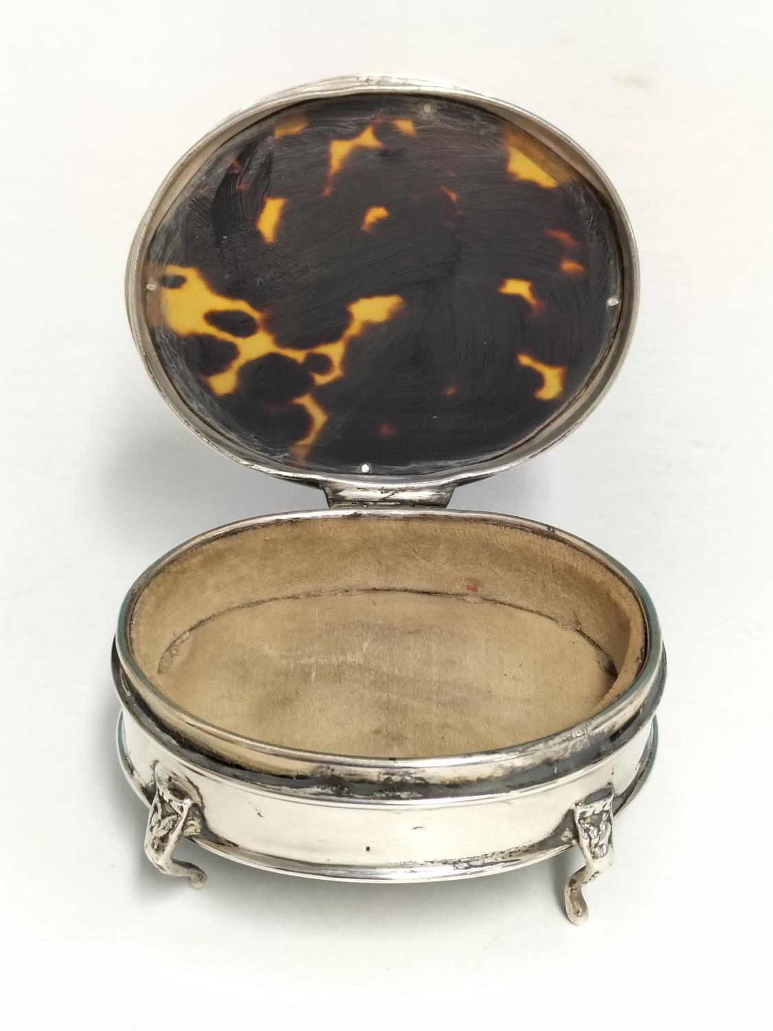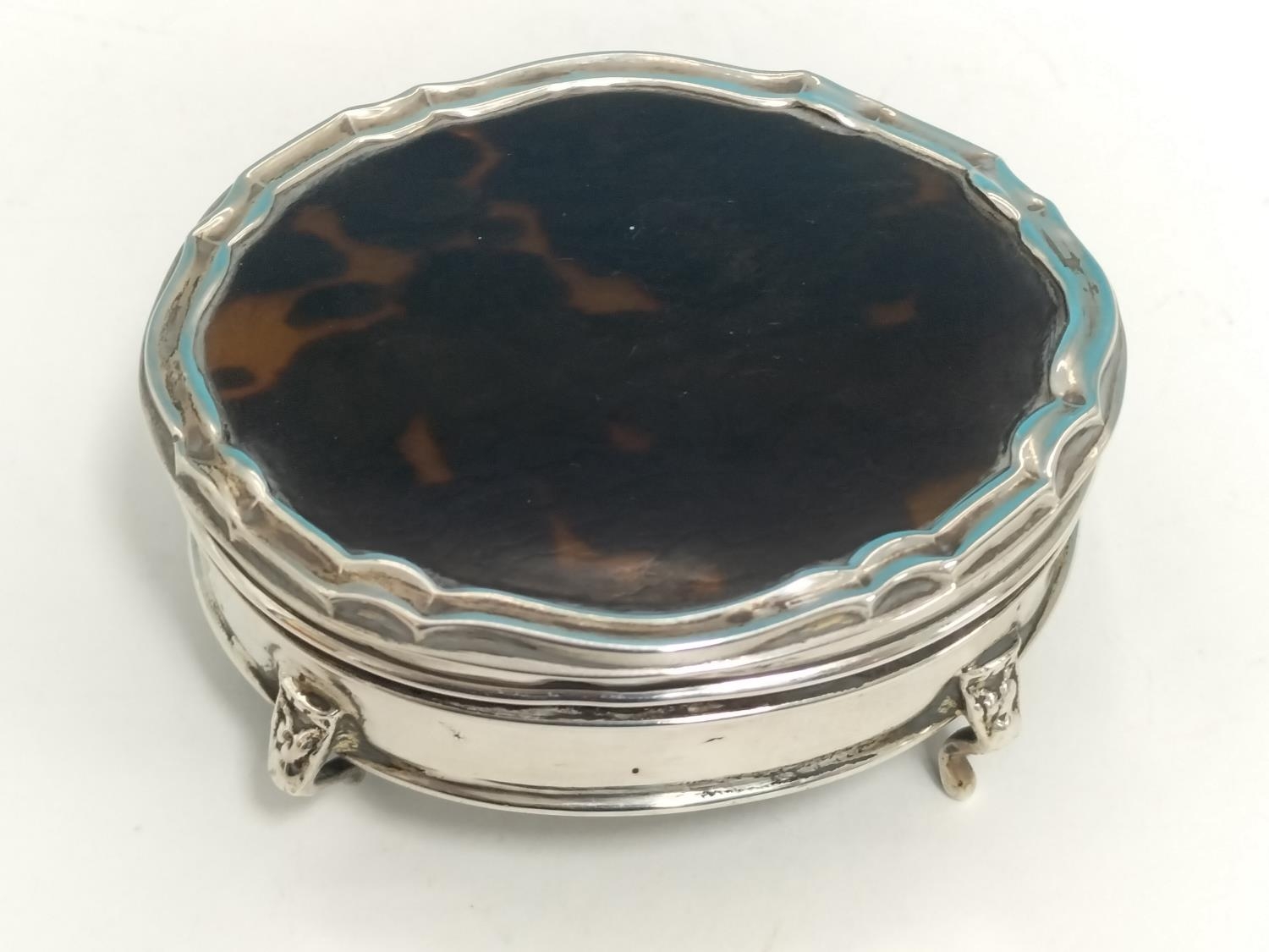 Mappin & Webb Silver Hallmarked (Birmingham 1914) Trinket Box with Tortoiseshell Lid. Total Weight 96.4 Grams. 4cm High, 7.5cm x 6.5cm.