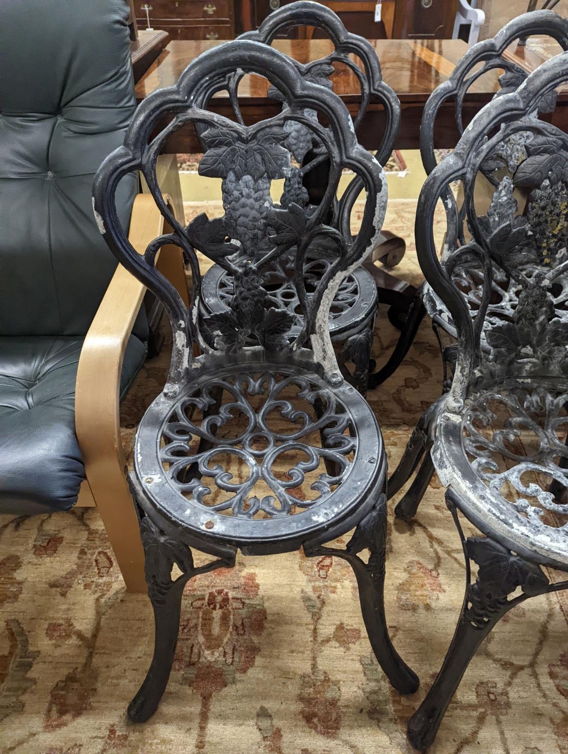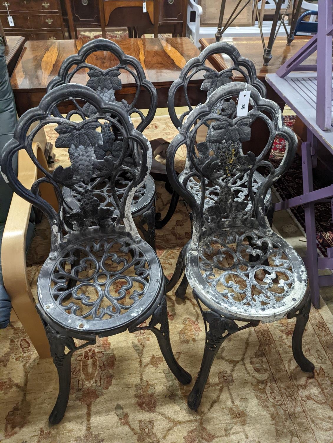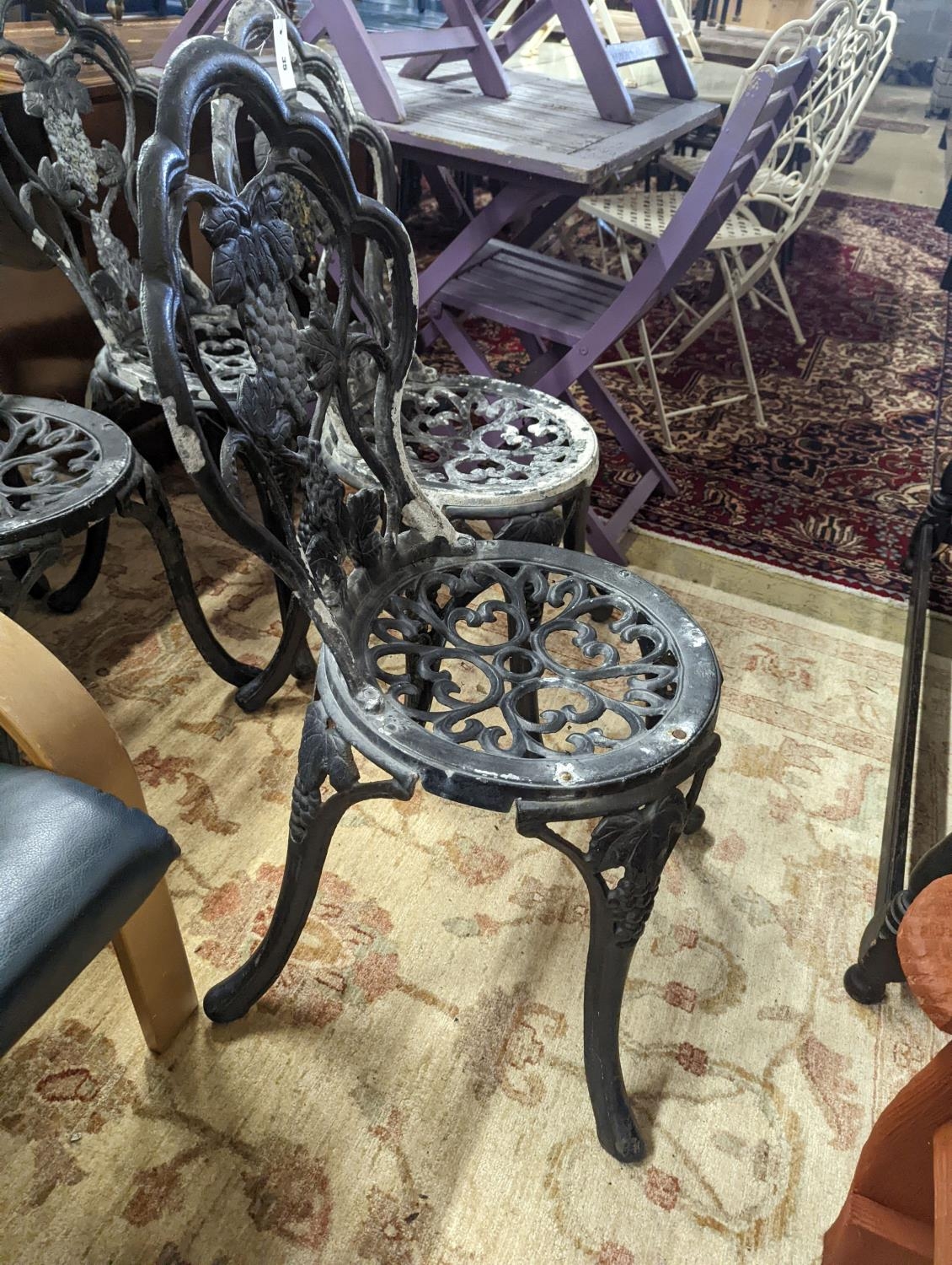 A set of four aluminium garden chairs