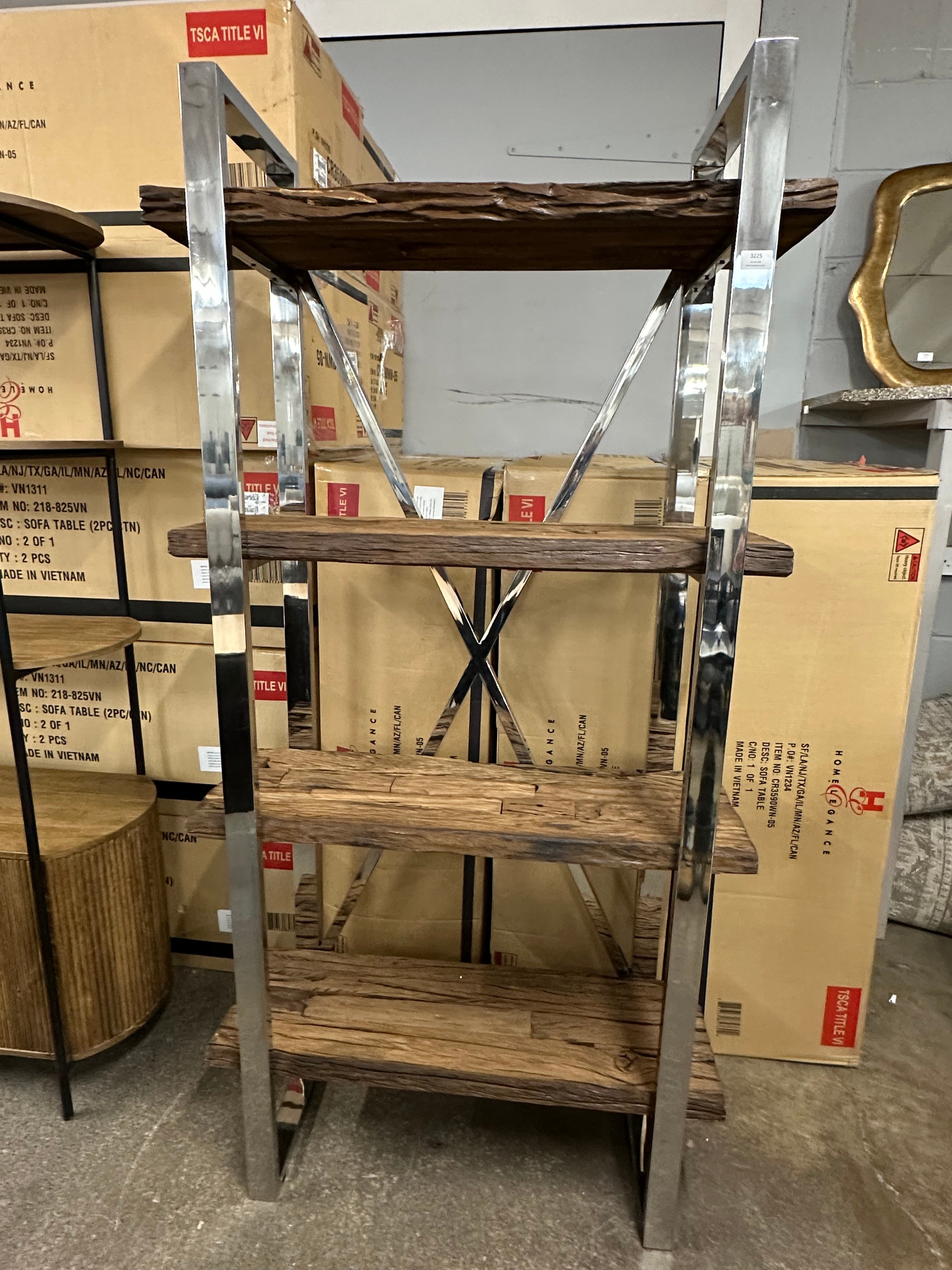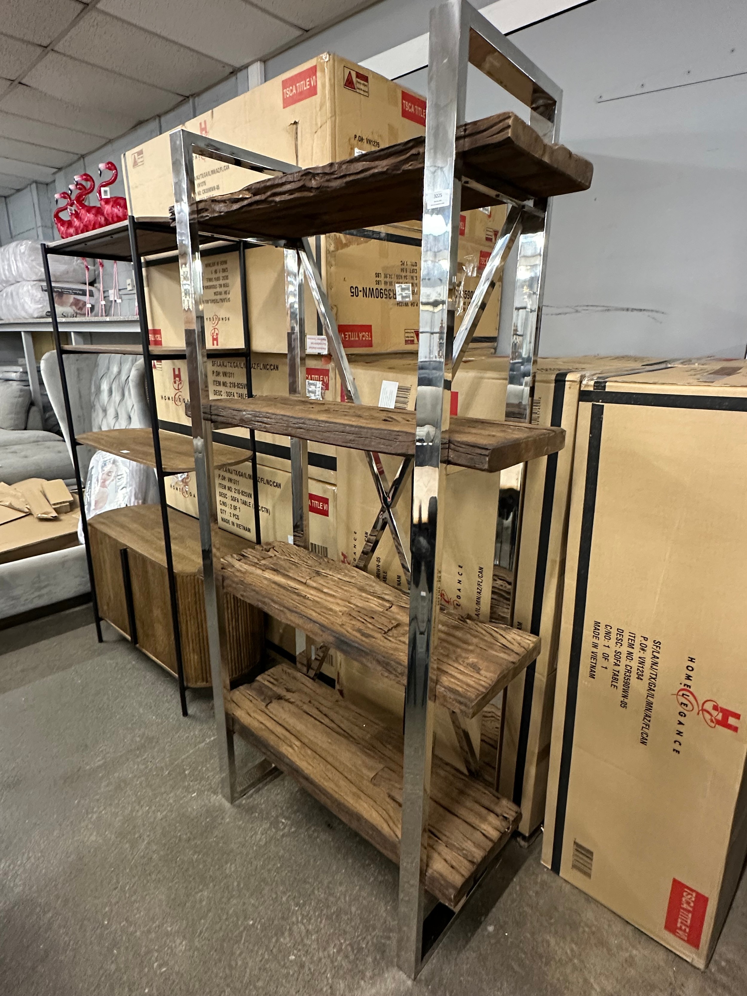 A Chennai driftwood/chrome display unit *This lot is subject to VAT