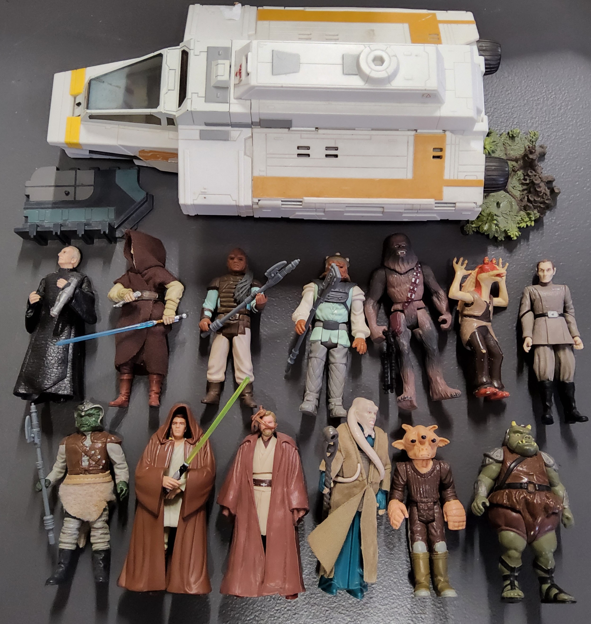 Star Wars - various vintage LFL Hong Kong figures including Bib Fortuna, Gamorrean Guard, Klatuu, Nikto, Ree Yees & Weequay; other later figures including Senator Palpatine, Obi Wan Kenobi, Chewbacca etc.; The Phantom Attack Shuttle Vehicle
