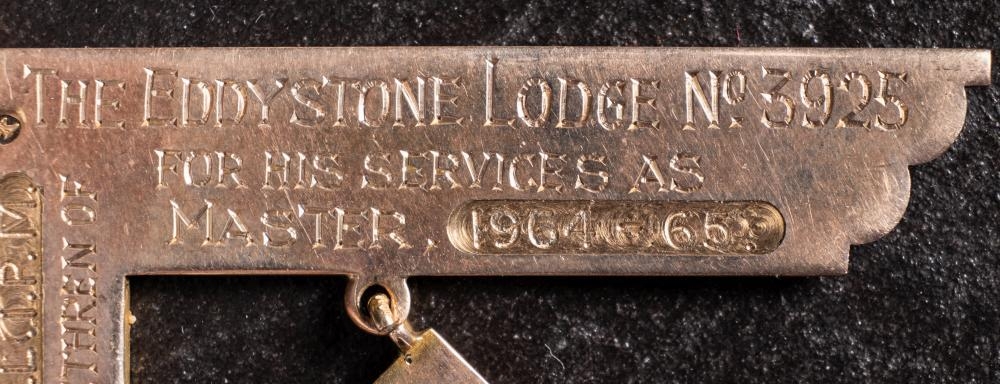A yellow metal Masonic suspension for 'The Eddystone Lodge, No 3925' inscribed and dated to reverse 1964-65: (renamed and dated) 14.4g