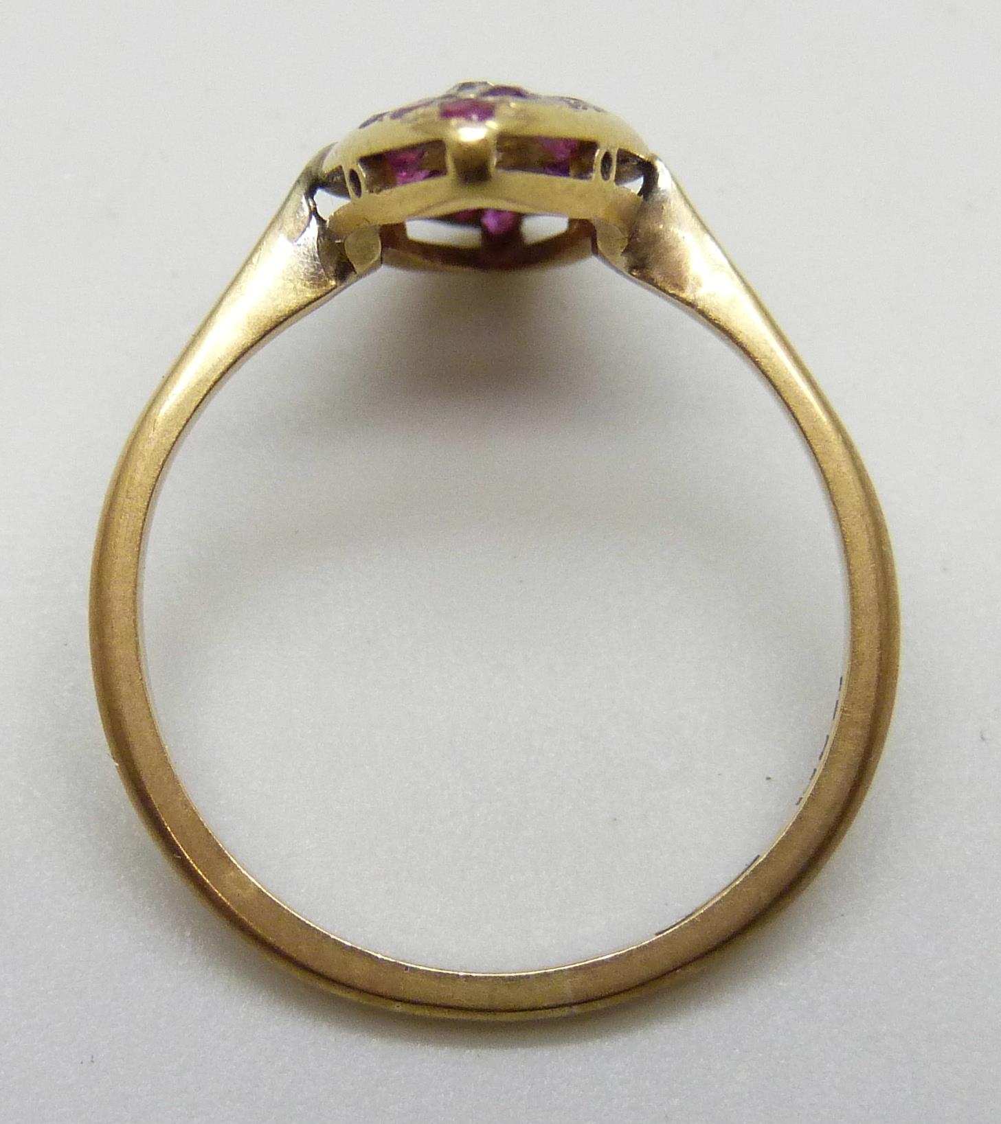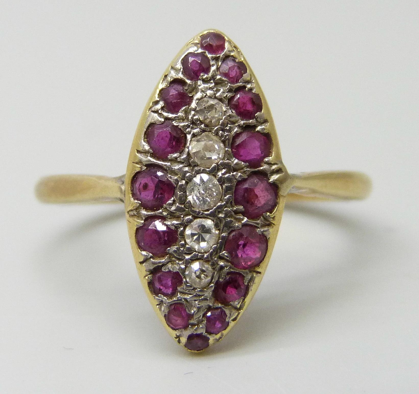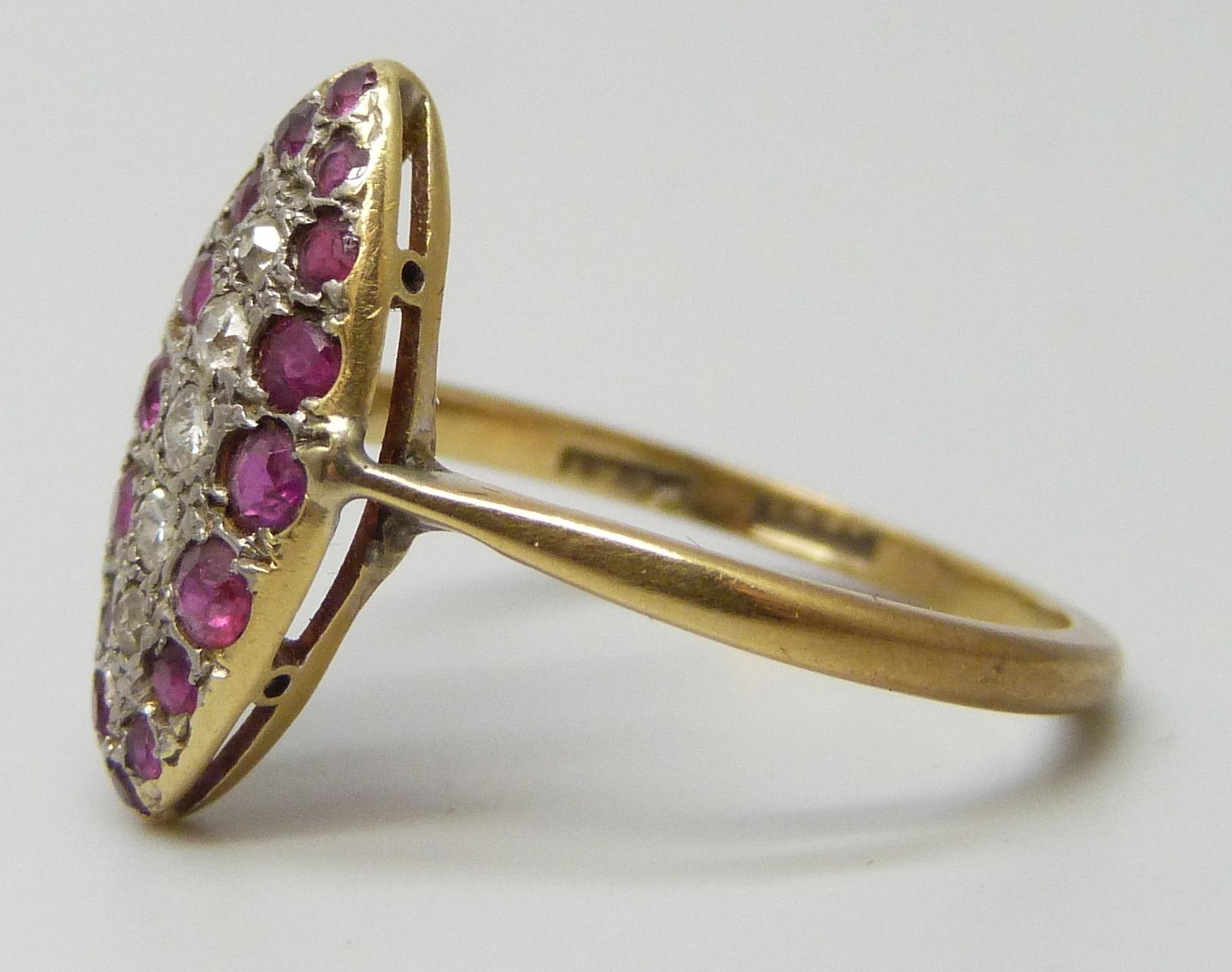 An 18ct gold and platinum ring set with diamonds and rubies, 2.8g, P