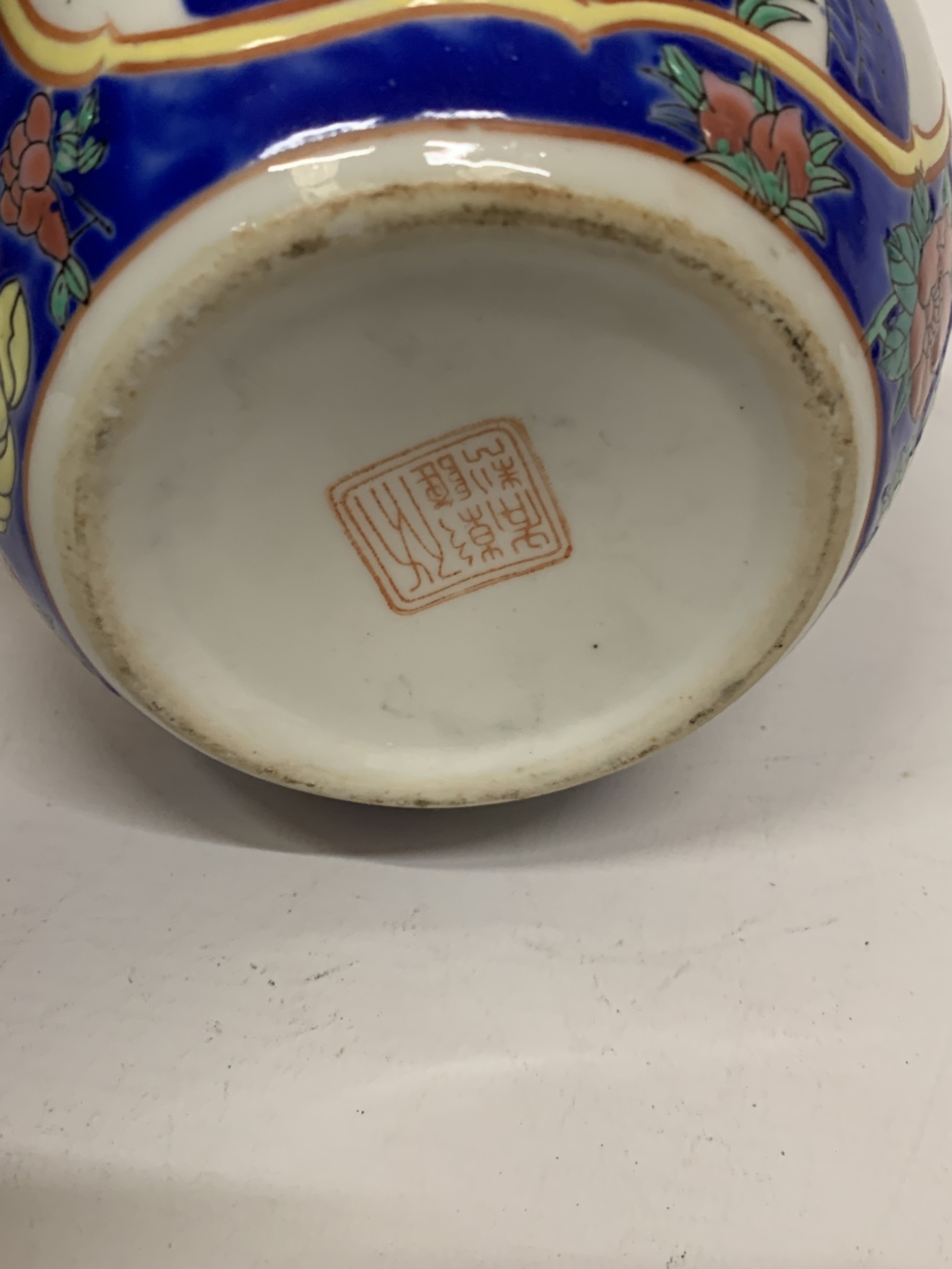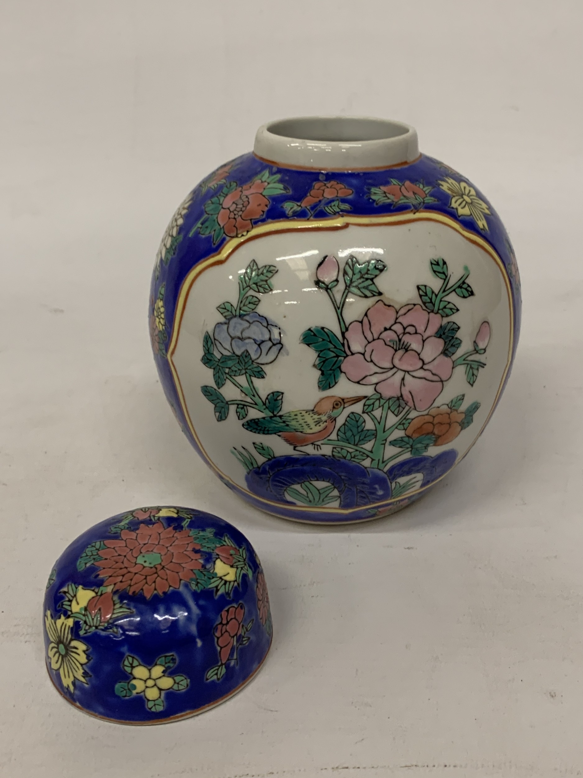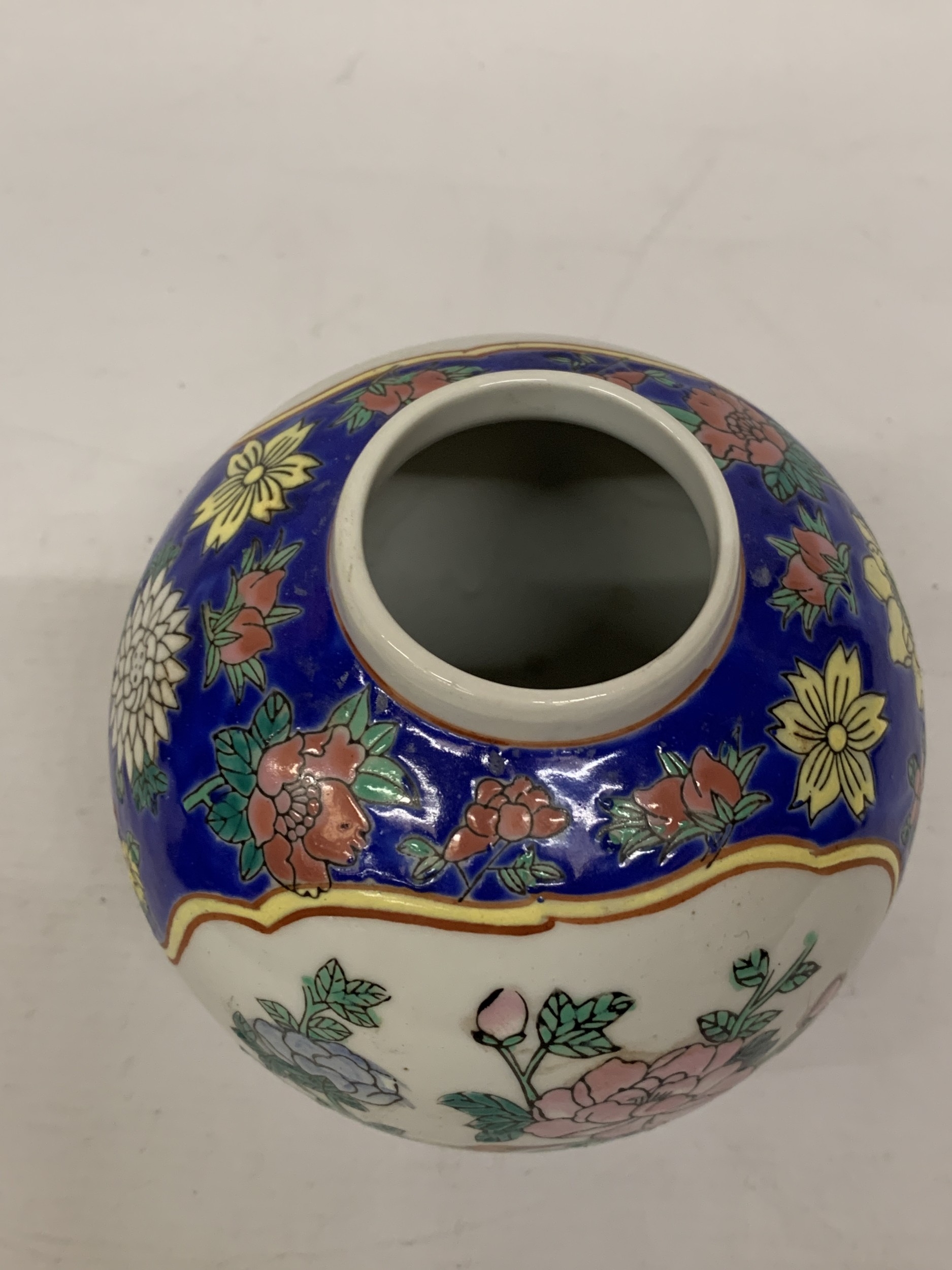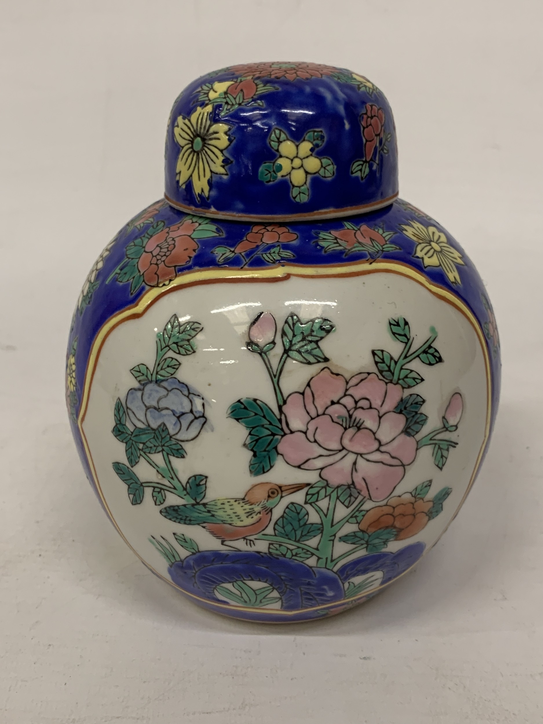 A VINTAGE HAND-PAINTED CHINOISERIE STYLE CHINESE GINGER JAR