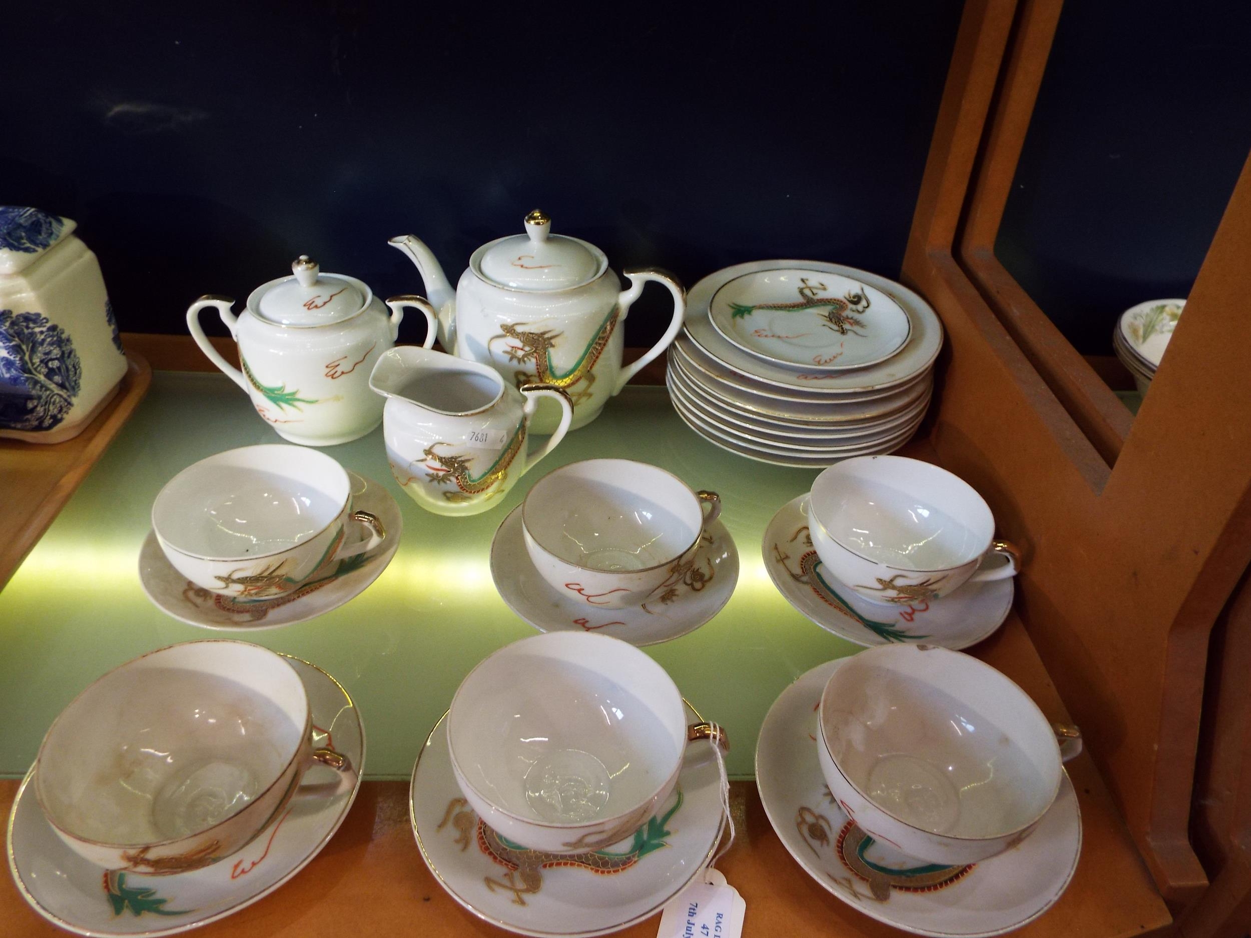 An Oriental Chinese tea-set comprising of tea-pot, plates, cups, saucers, sugar bowl and milk jug