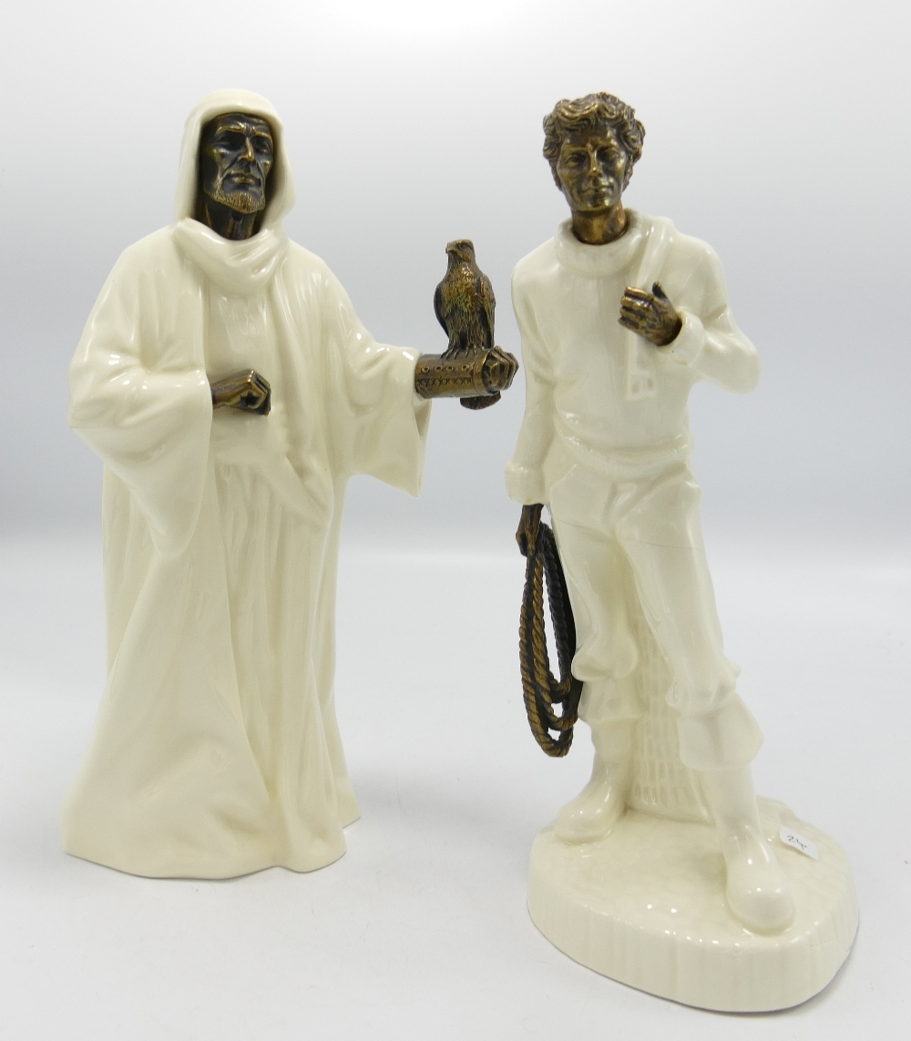 Minton Pottery & Bronze Seconds Figures: The Fisherman (stress break to body) & The Sheikh(2)