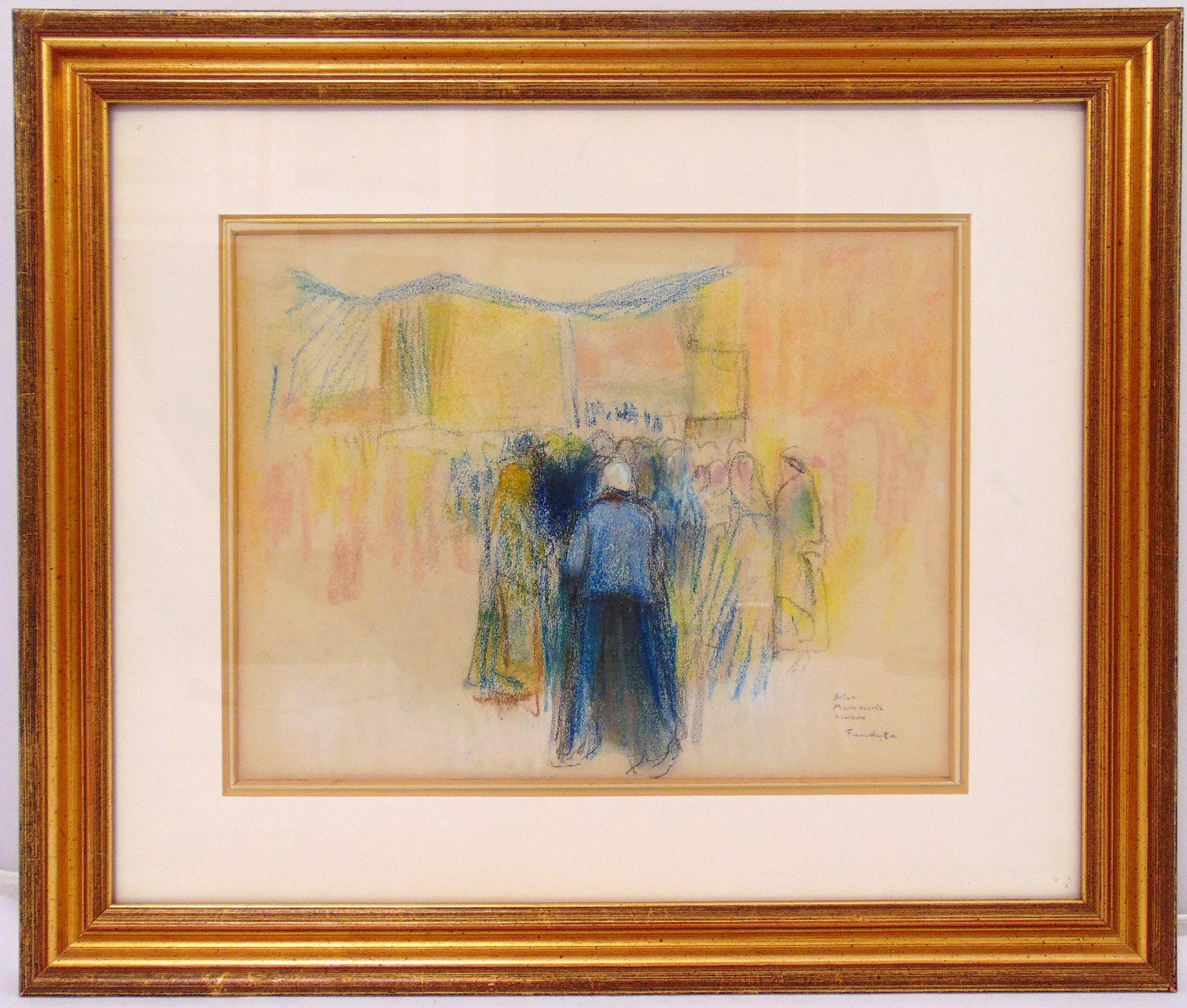 Arthur Markovicz framed and glazed pastel of figures with shawls, signed bottom right, 26 x 34cm