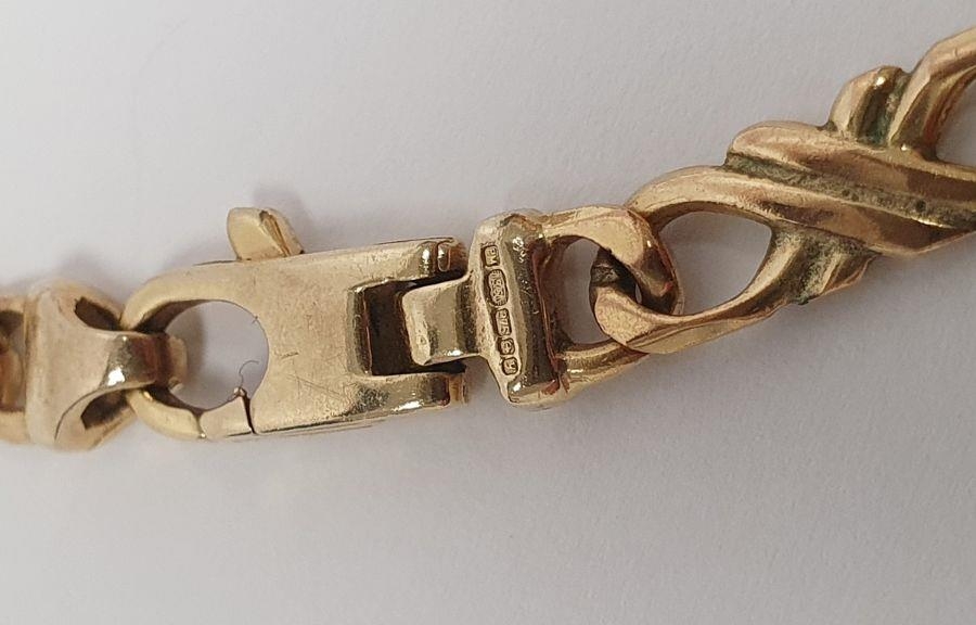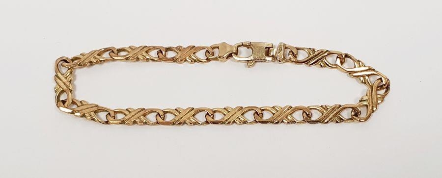 9ct gold chain-link bracelet with pierced chain link, 10g approx.